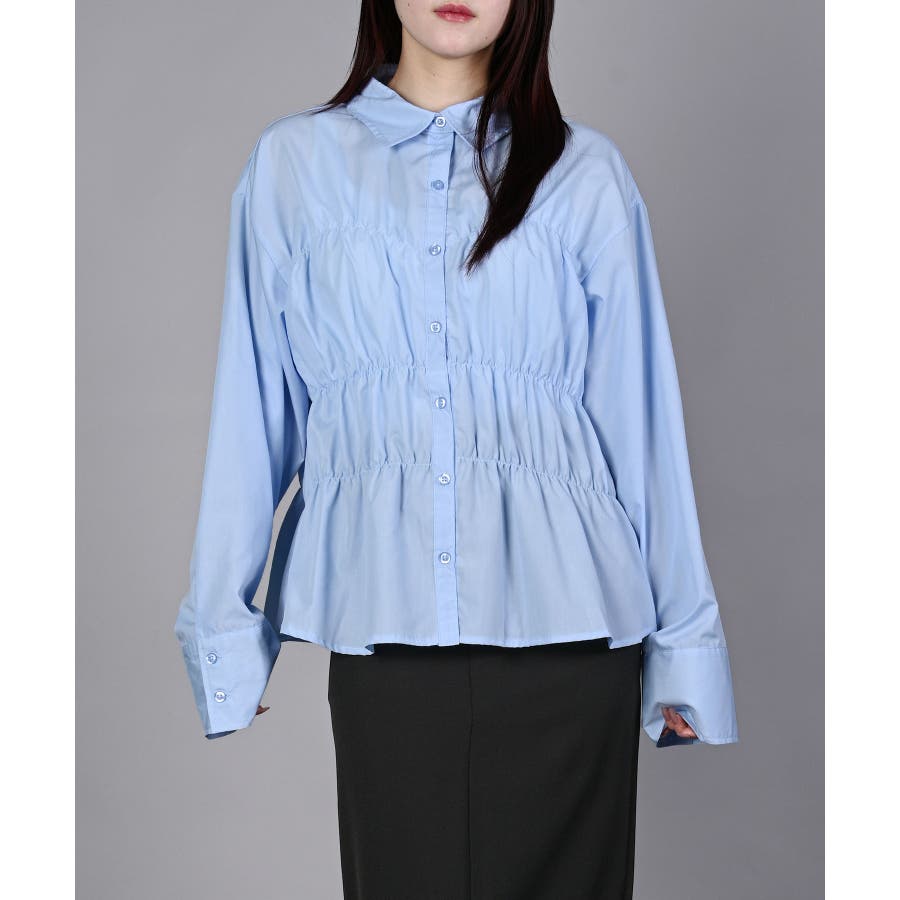 レギュラーカラーのシャツにフェミニンなシャーリングデザインをプラス。