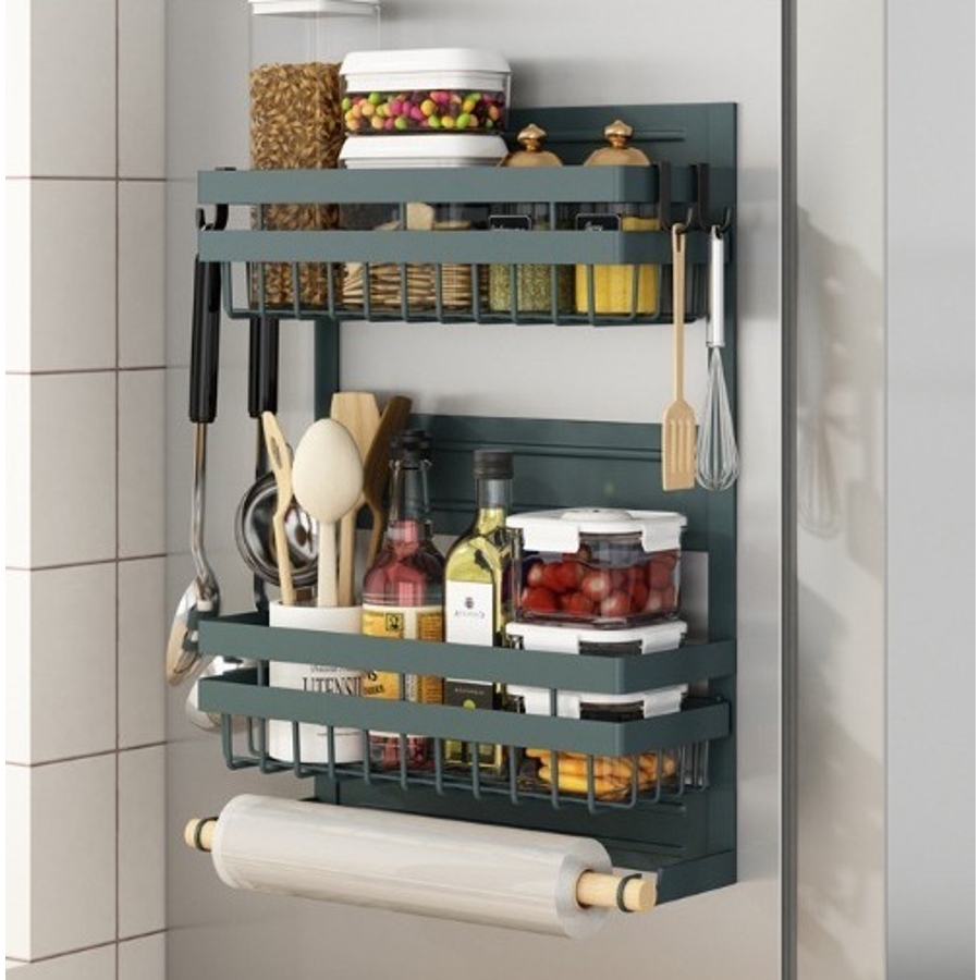 冷蔵庫の壁面をフル活用 マグネット式 キッチン収納ラック