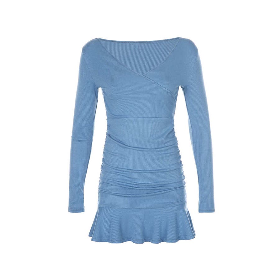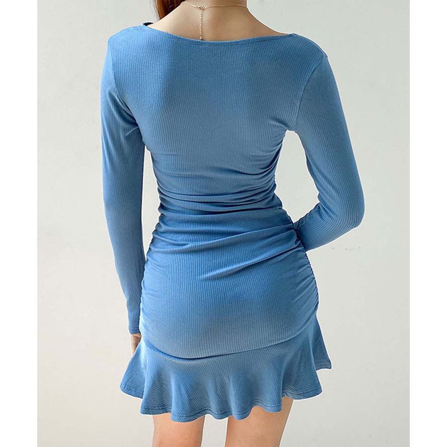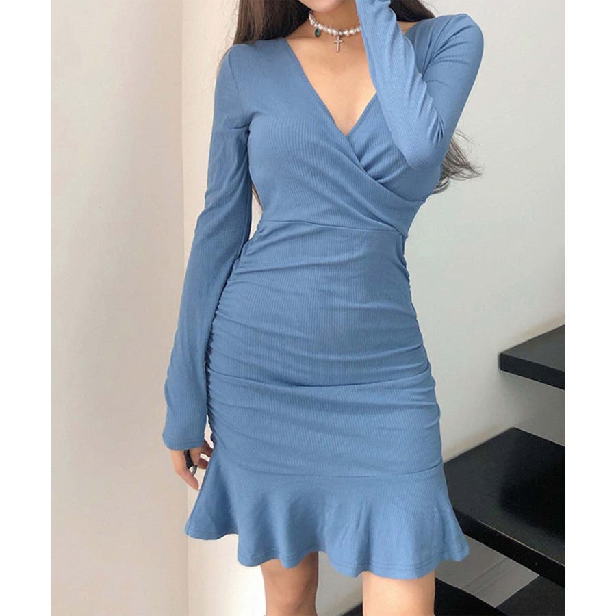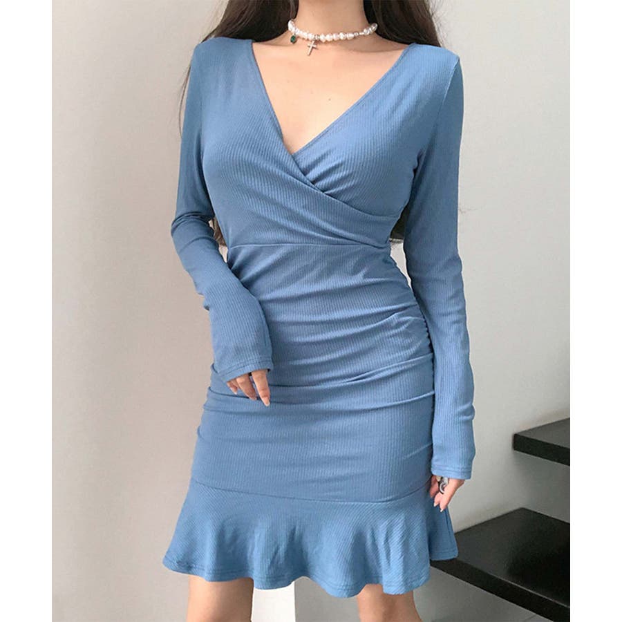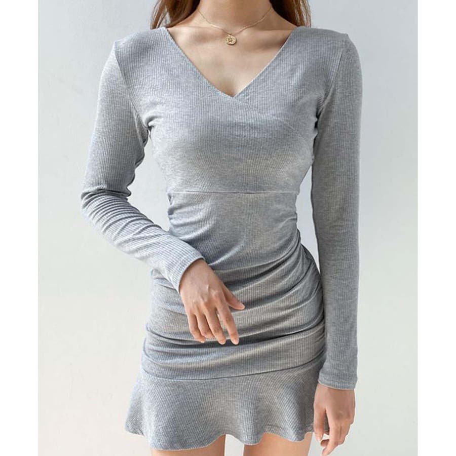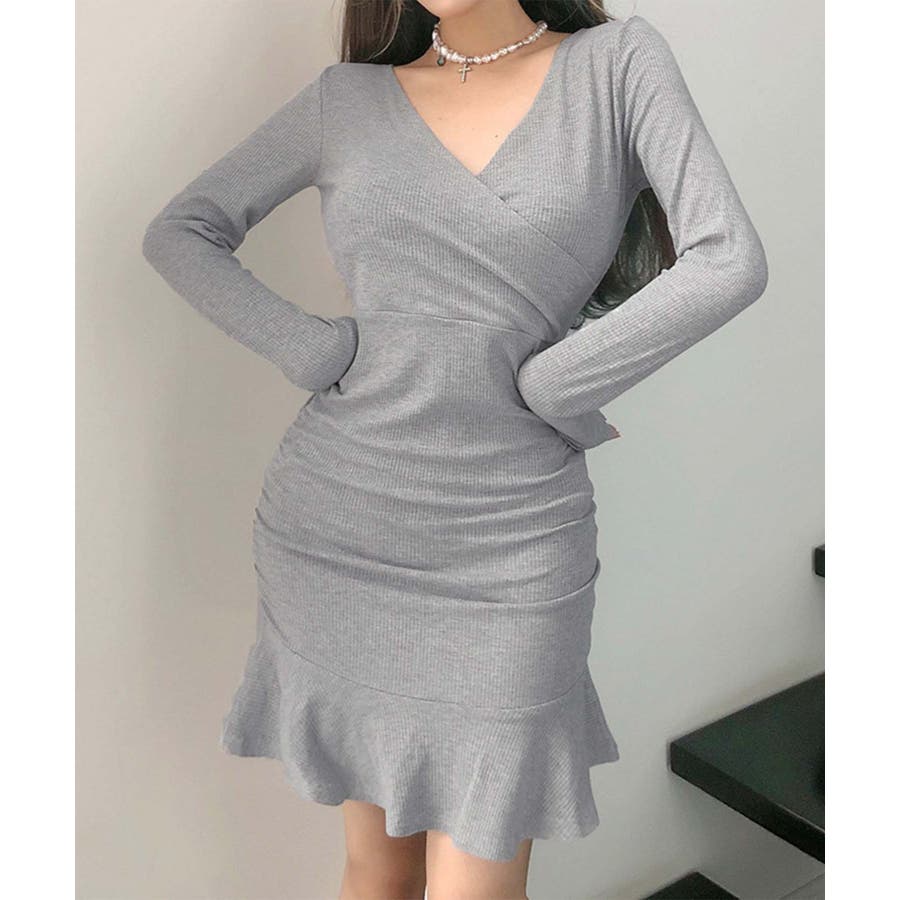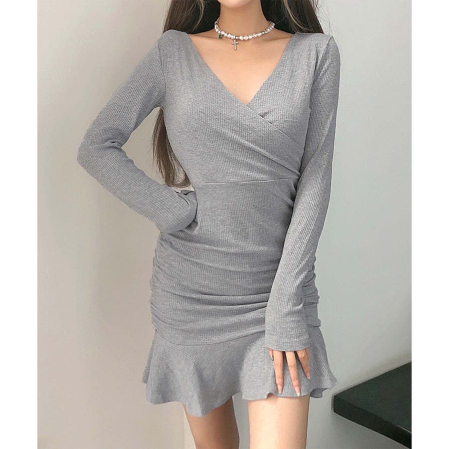 【Jasmine Grandiflorum】Vネックフリルミニワンピース 韓国フ…