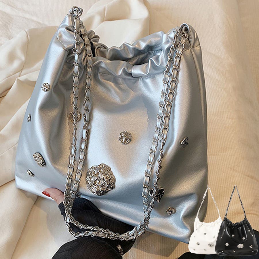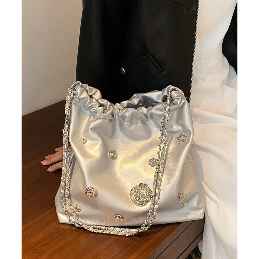 ファスナーではなく磁石のボタン+巾着のようにきゅっと口を閉じれるタイプなのでニットやフリフリの服にも引っかからず、デザインも合わせやすくて最高です。さん (20代 / 女性 )購入アイテム:サイズ Fカラー シルバー - あー