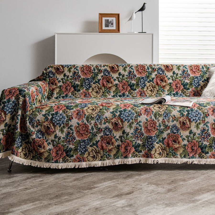 レトロアンティークフリンジ花柄ソファーカバー ソファーカバー マルチカバー