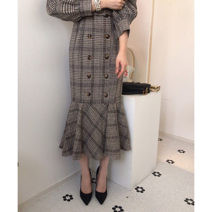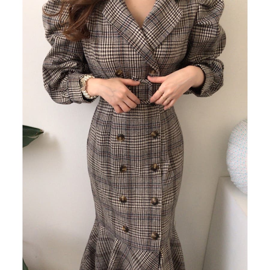 【Jasmine】チェック柄パワショルマーメイドワンピース Jasmine Gr…