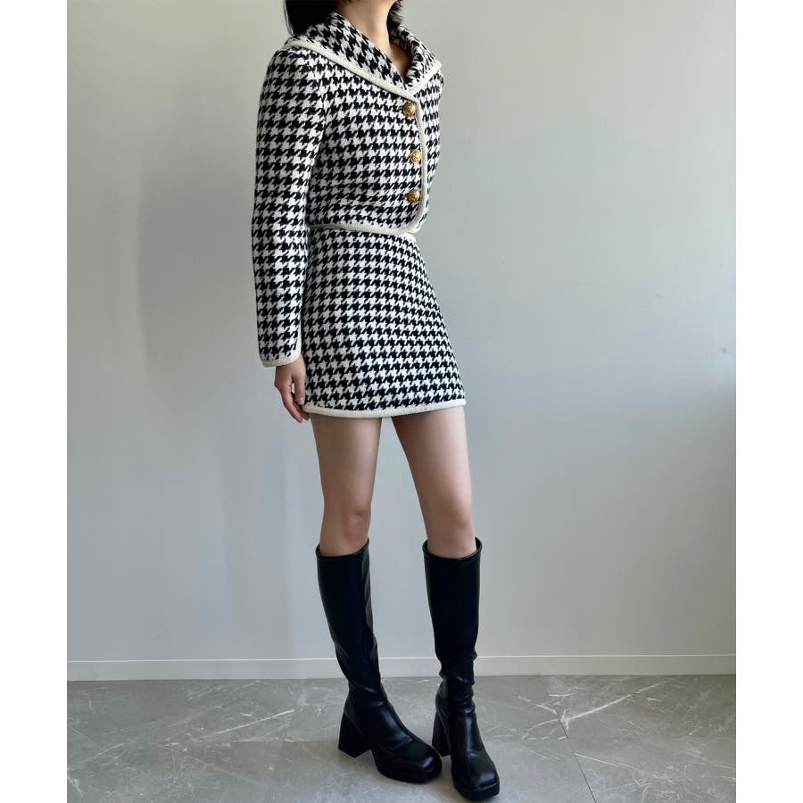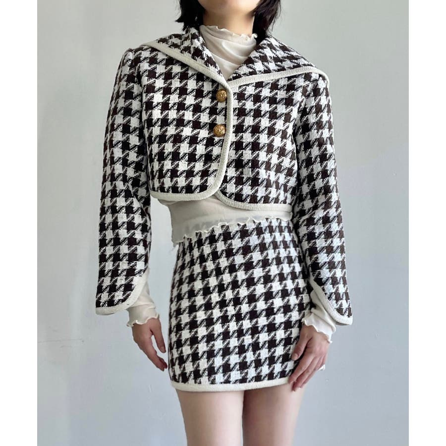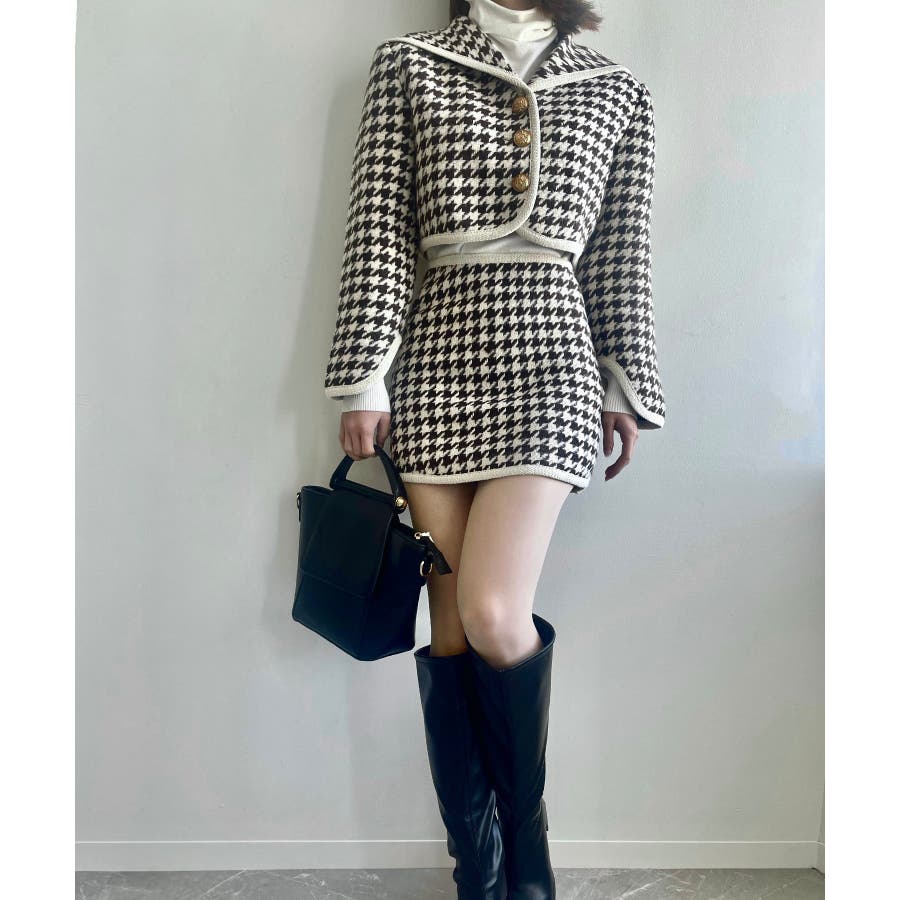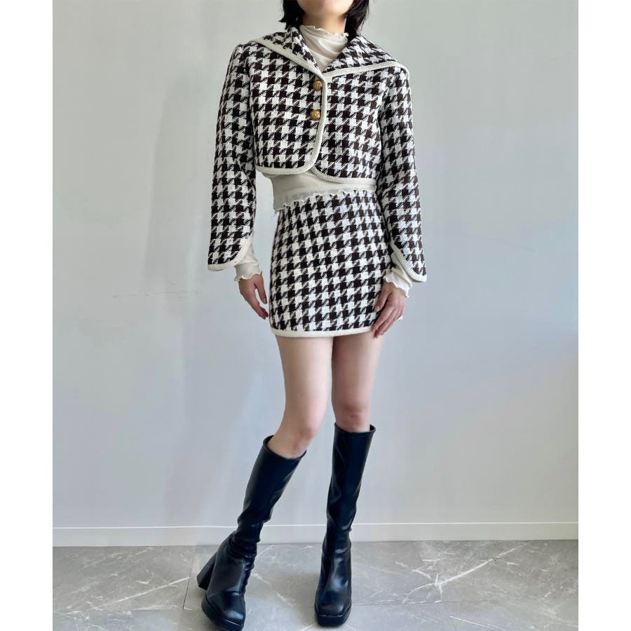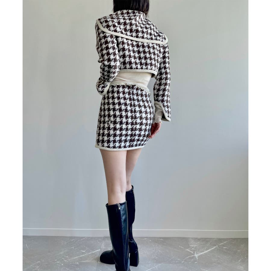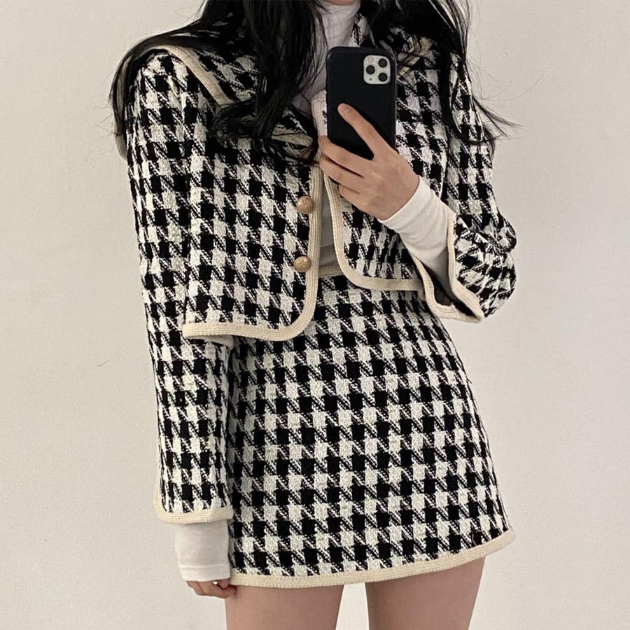 新色追加 フレンチガーリー千鳥柄ジャケット&スカートセットアップ 韓国ファッション
