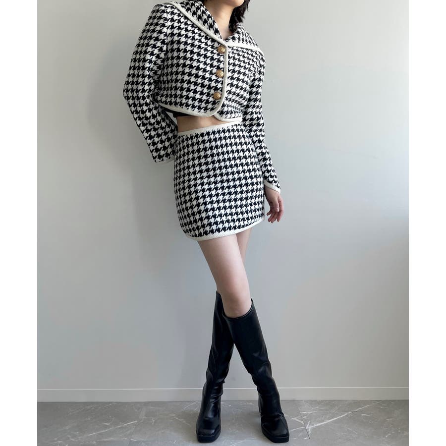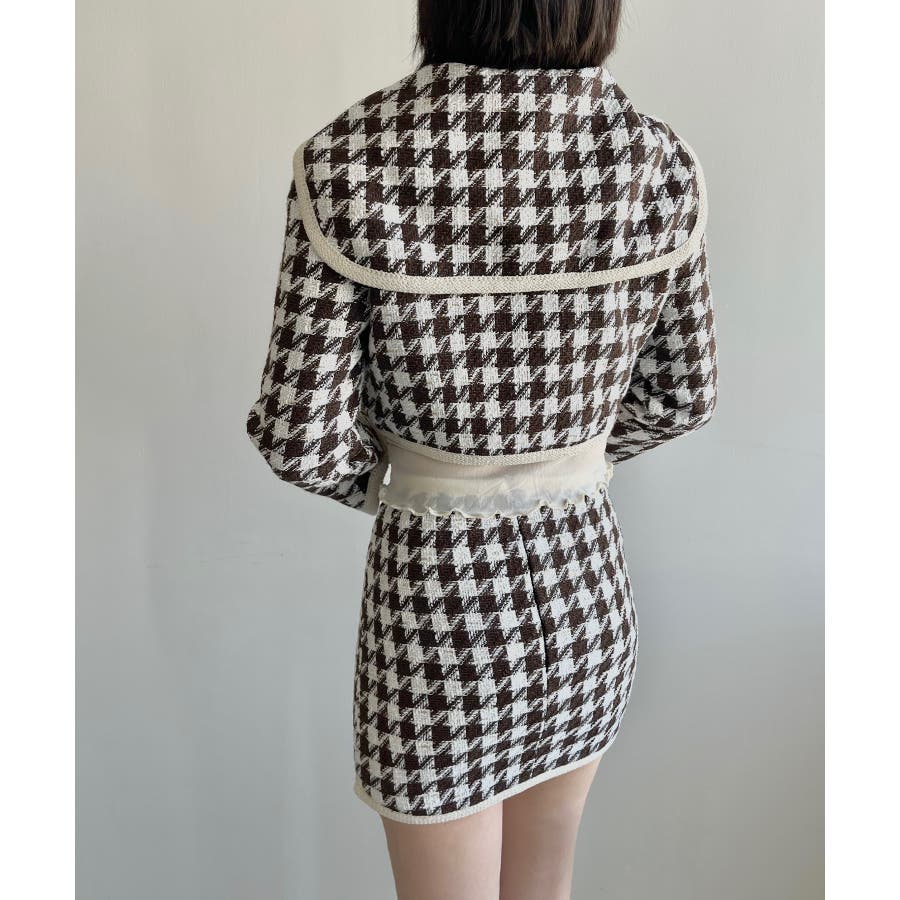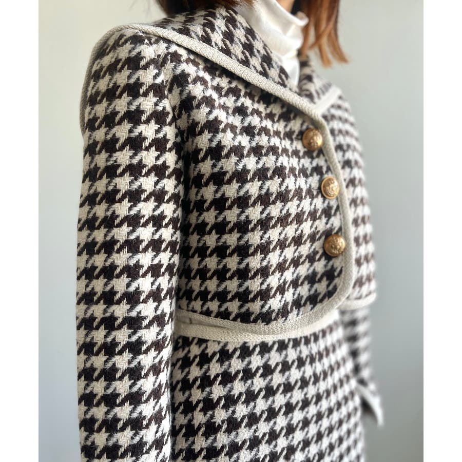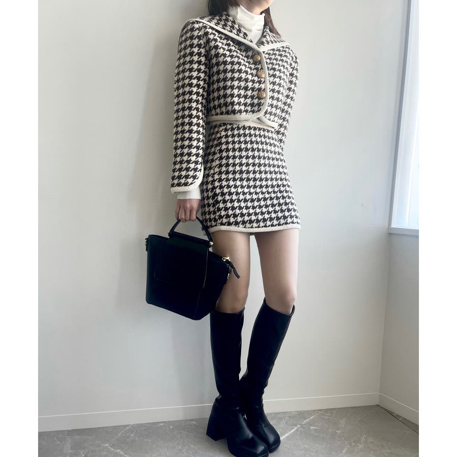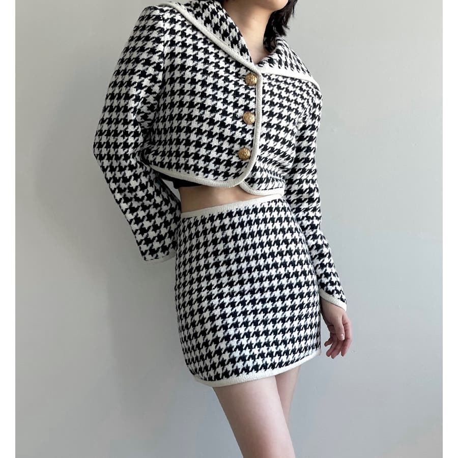 新色追加 フレンチガーリー千鳥柄ジャケット&スカートセットアップ 韓国ファッション