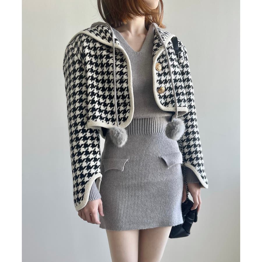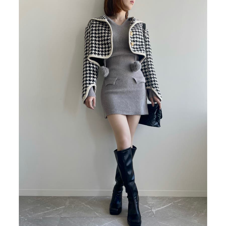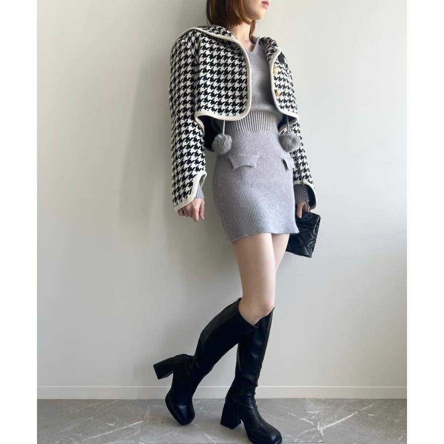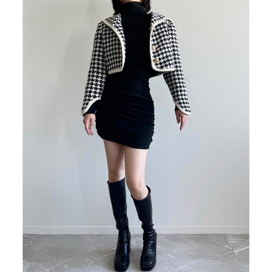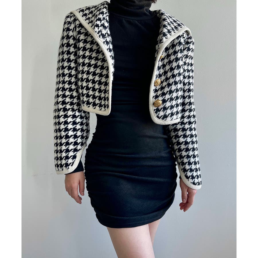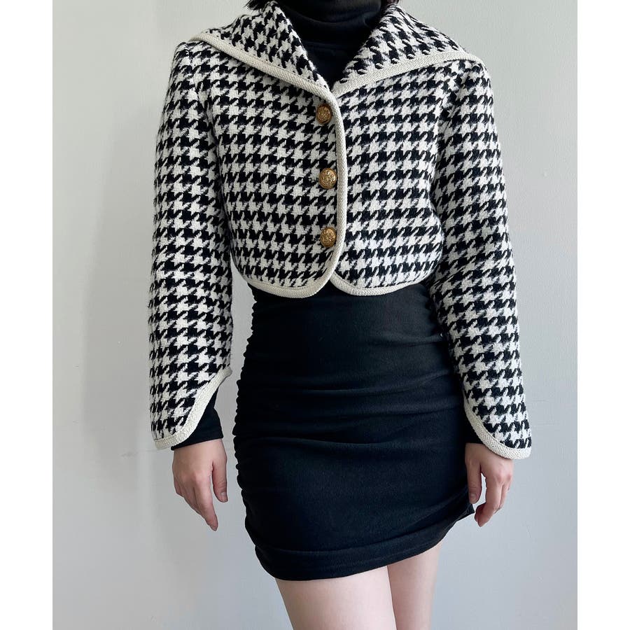 新色追加 フレンチガーリー千鳥柄ジャケット&スカートセットアップ 韓国ファッション