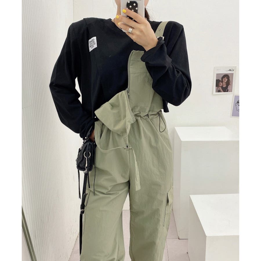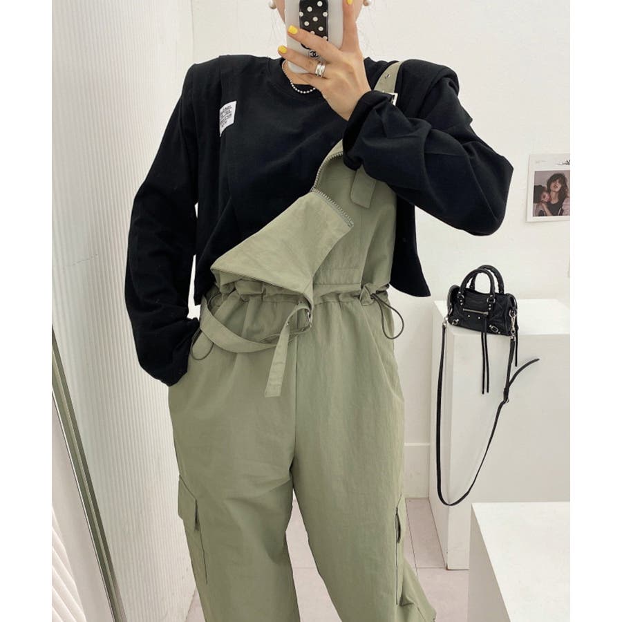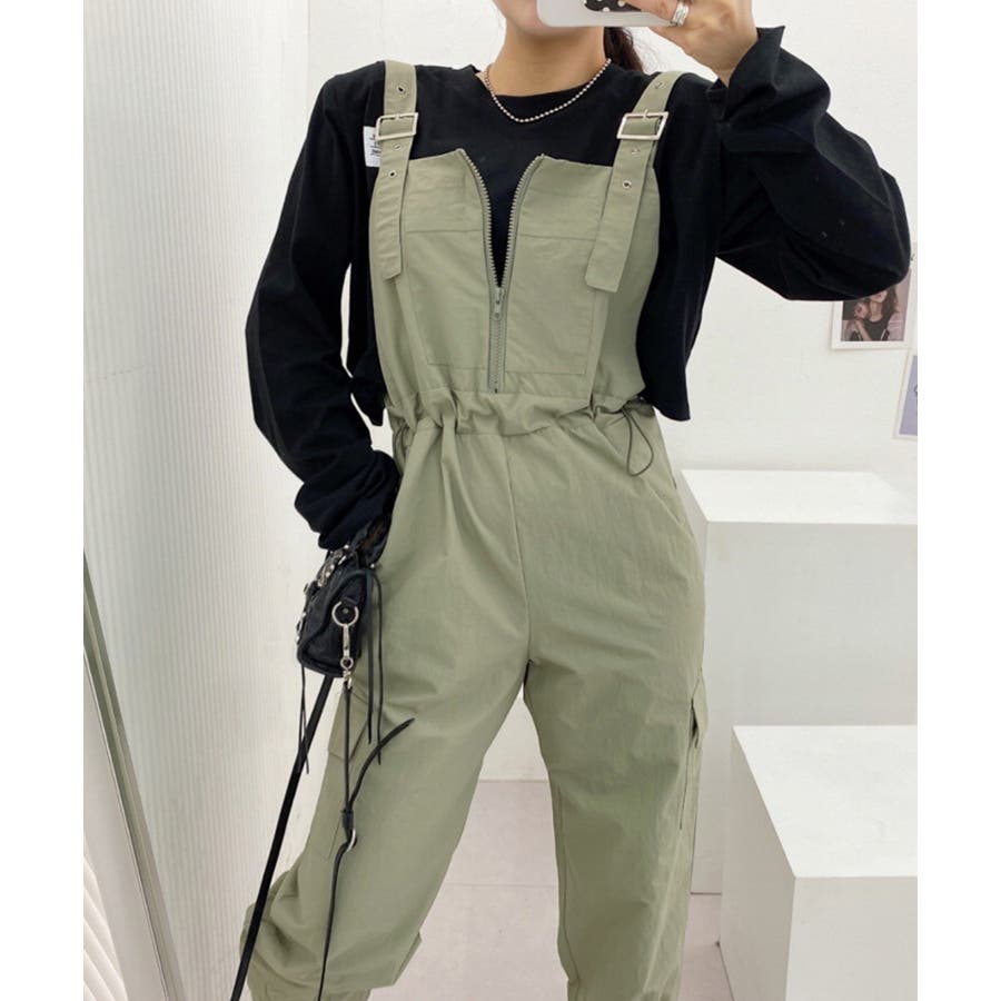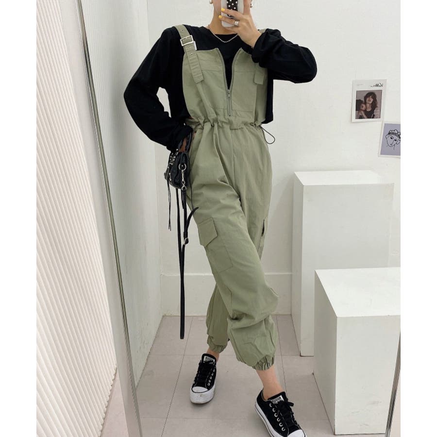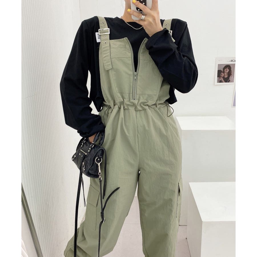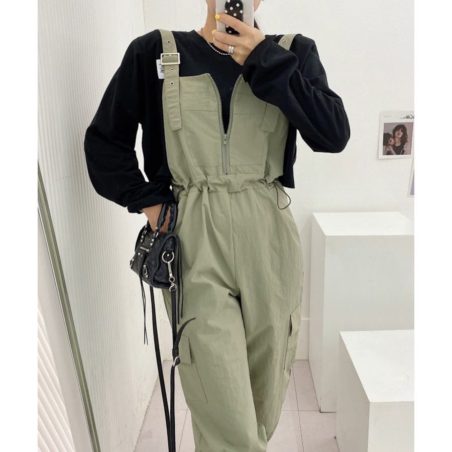 胸元のジッパーがカジュアルでかわいいサロペットです!ウエストは紐で調節可能になっているので履きやすく、カジュアルなシルエットなのでTシャツやスニーカーなどとの相性抜群です!パンツ裾にはゴムが入っているのでブーツなどにも合わせやすく、肩紐で長さの調節もできるのでお好みのスタイルで着ていただけます。