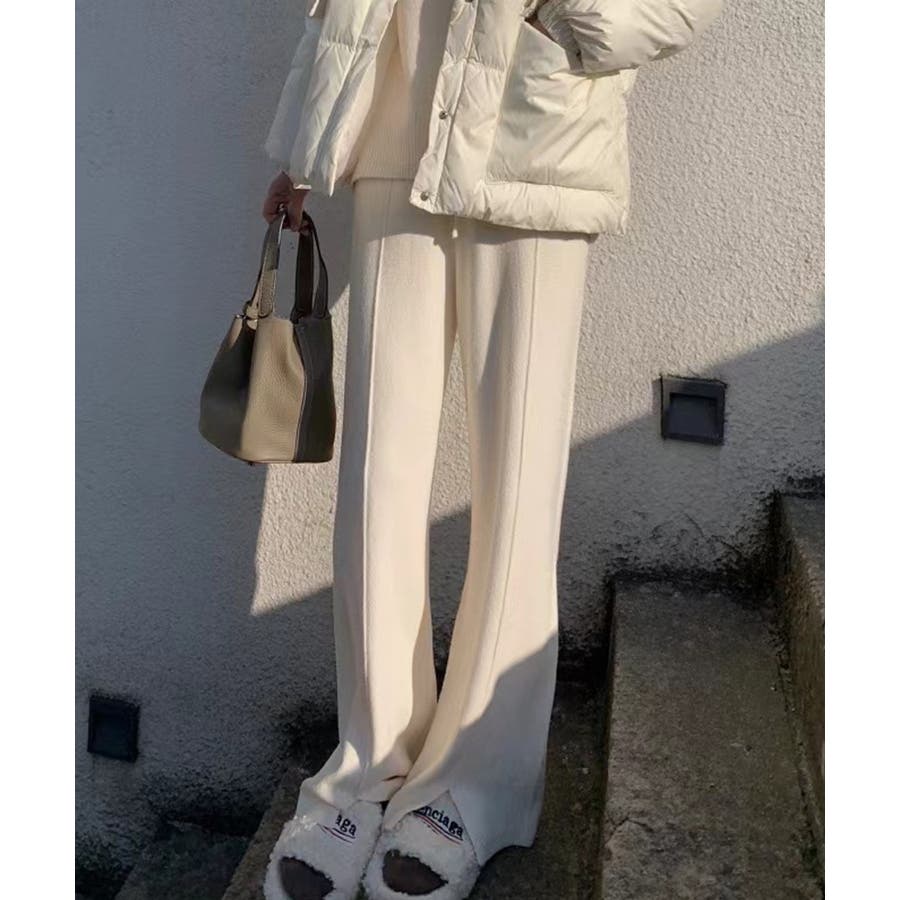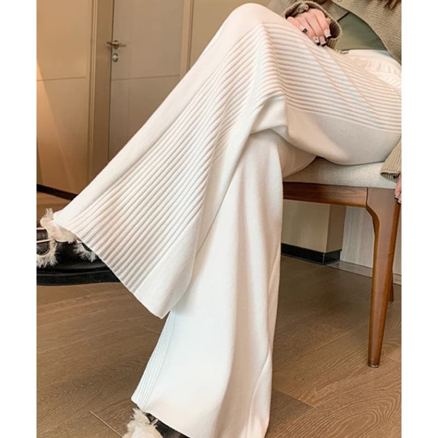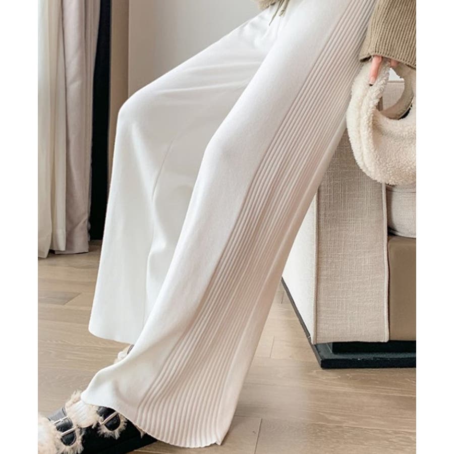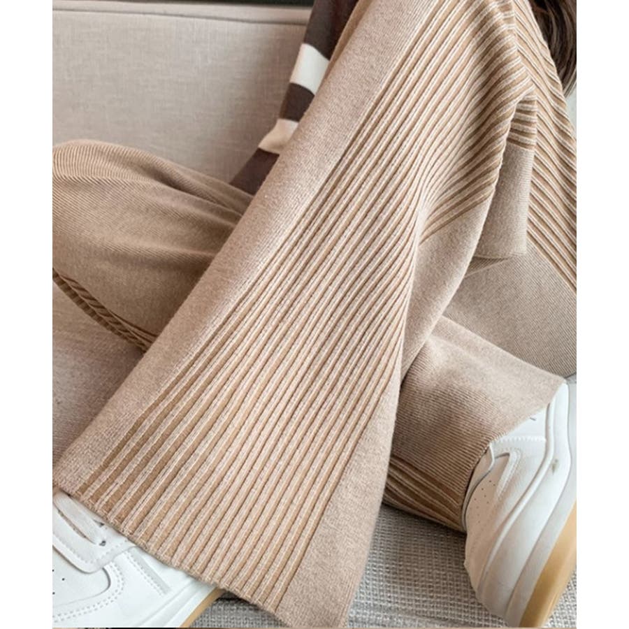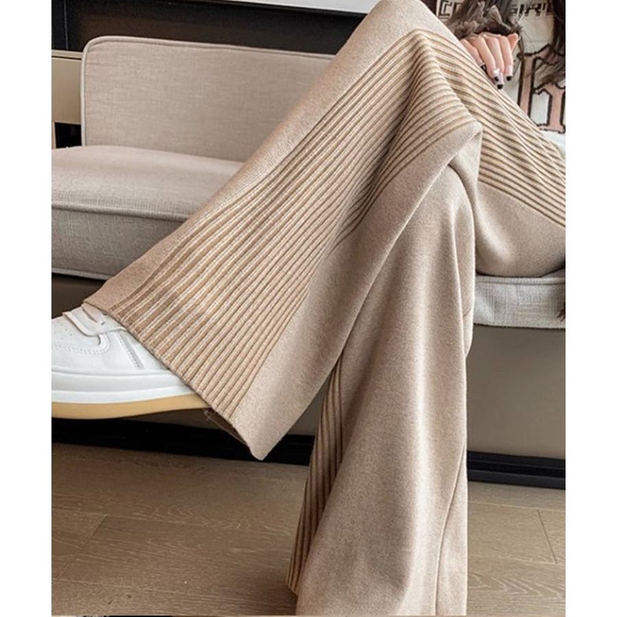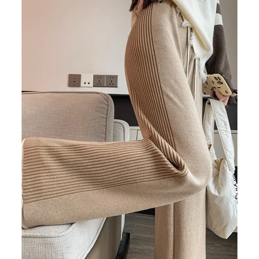 サイドストライプニットパンツ ワイドパンツ