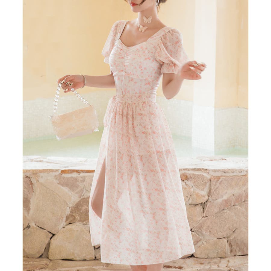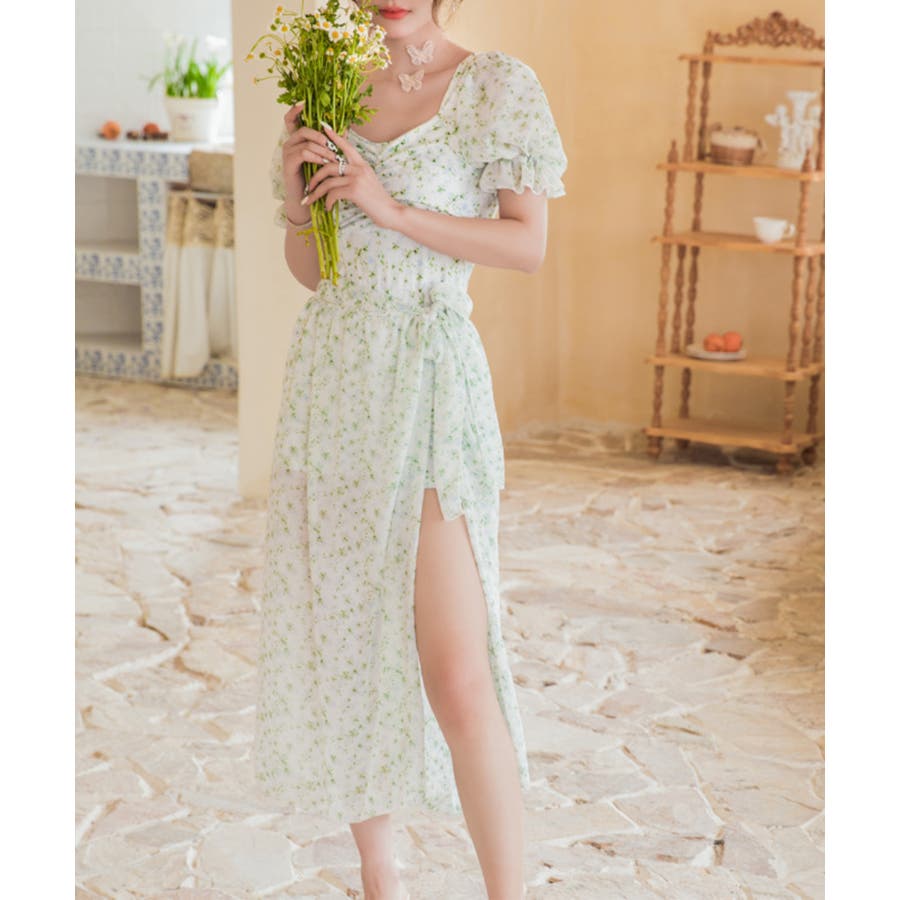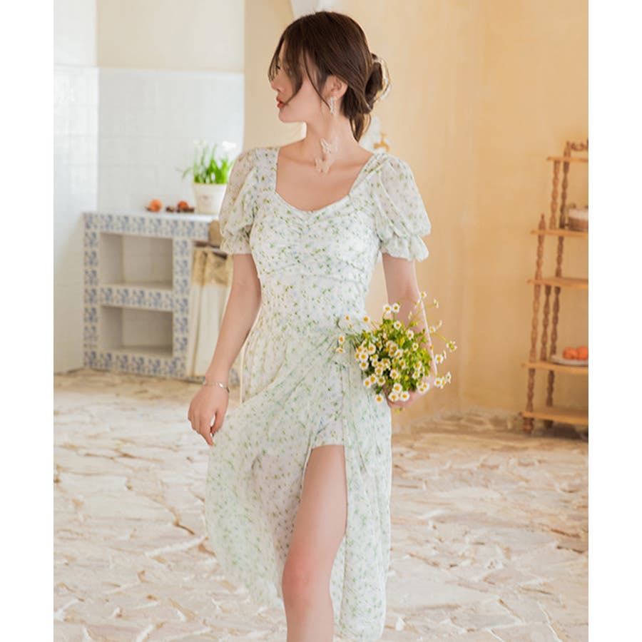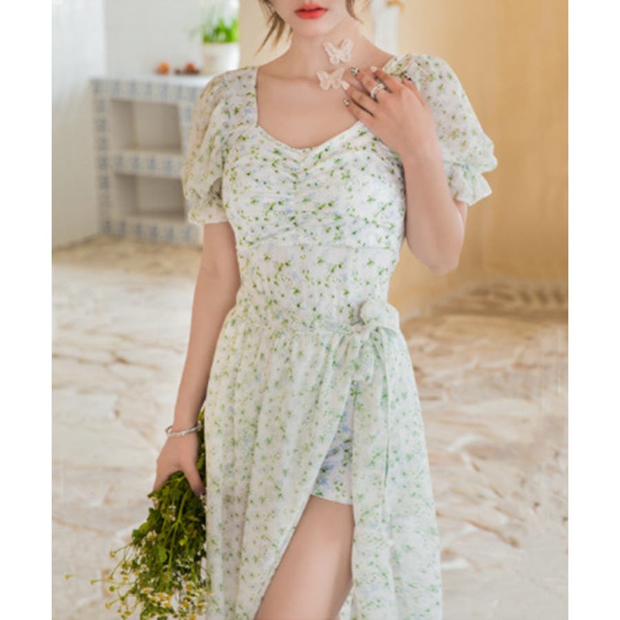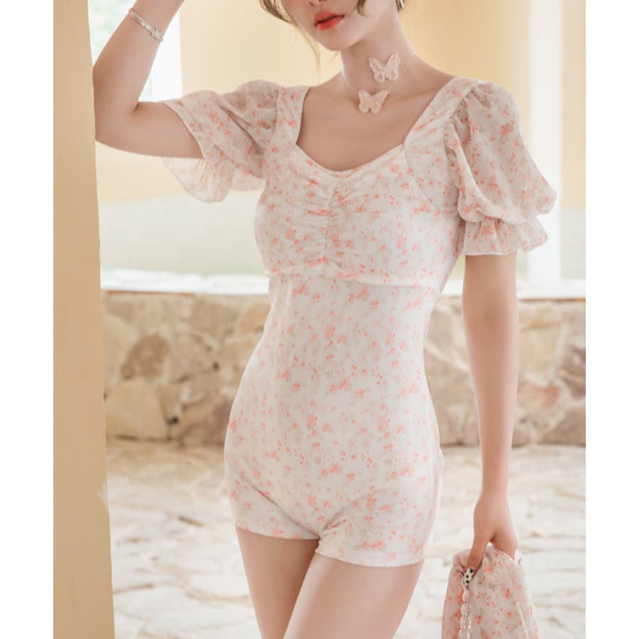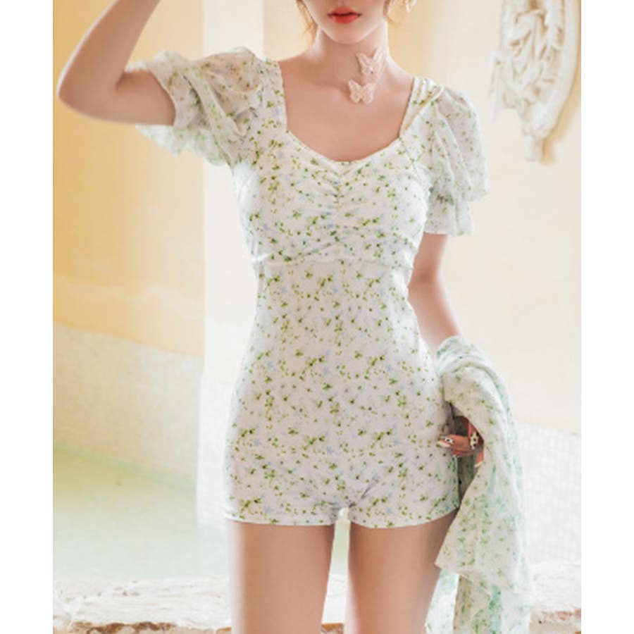 小花柄がキュートな水着。ワンピースのようなデザインはラフに着用できます。気になるお腹周りもカバーできるのは嬉しいポイントです。