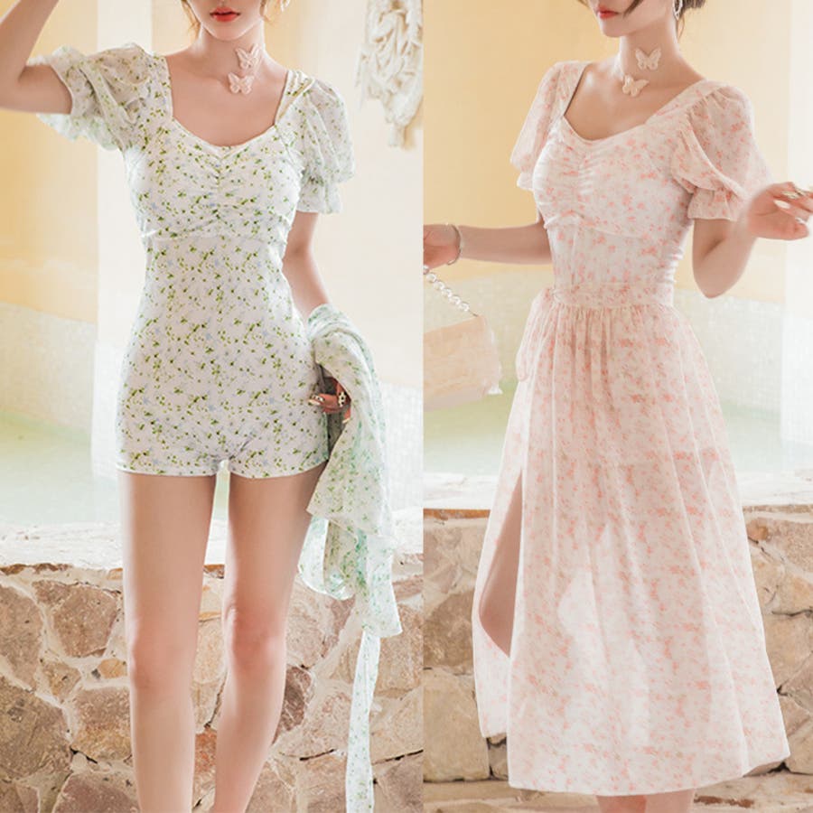 【在庫限り】 小花柄ワンピース水着 水着セット