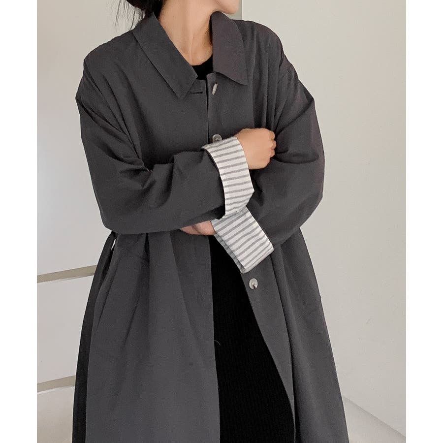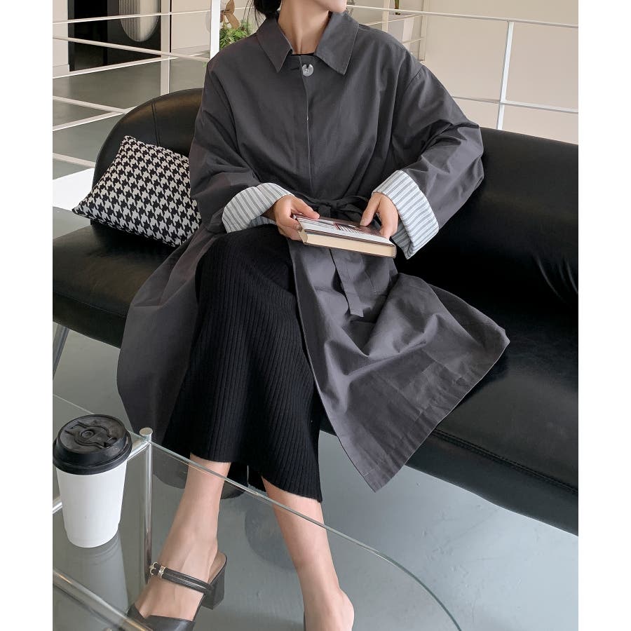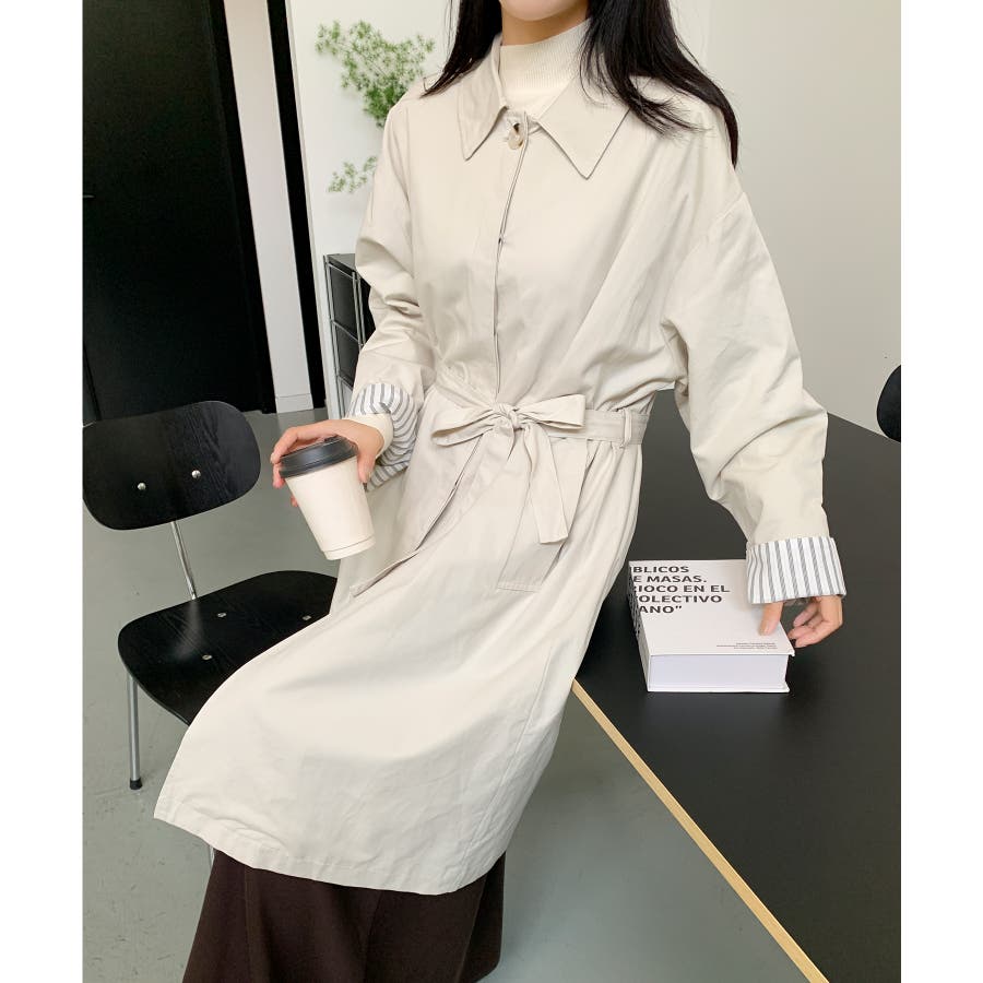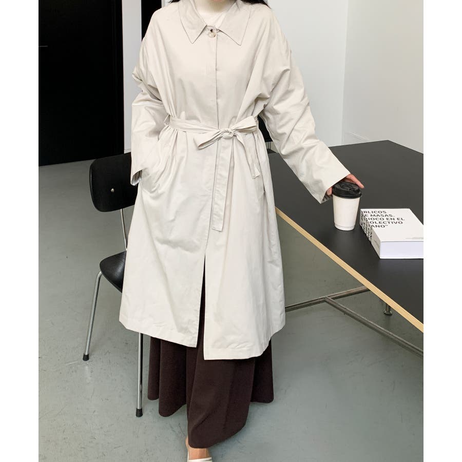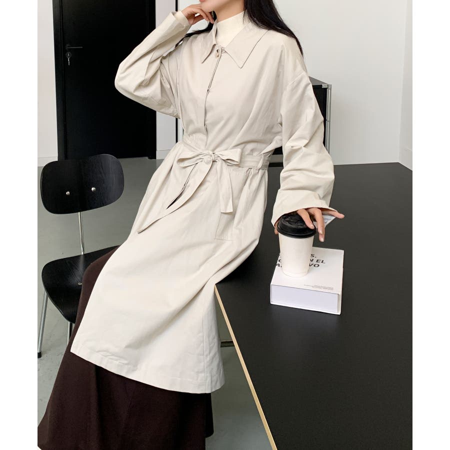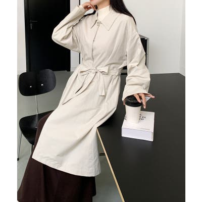 ストンと落ちる美しいラインに共布ベルトでウエストマークして女性らしさアップ。