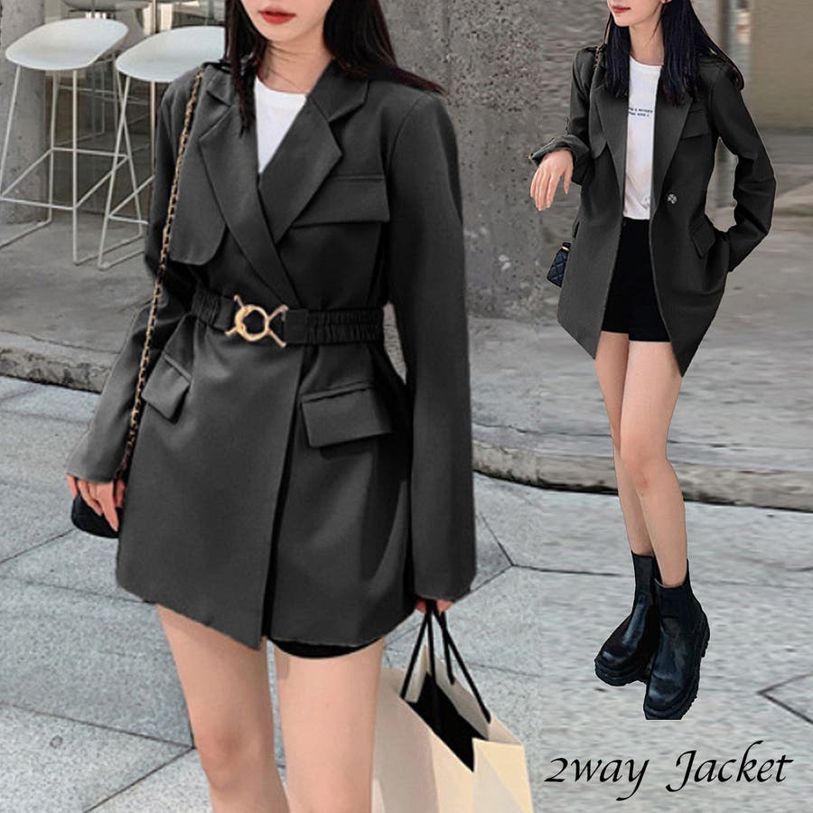 シンプルテーラードジャケット ベルト付き 韓国ファッション