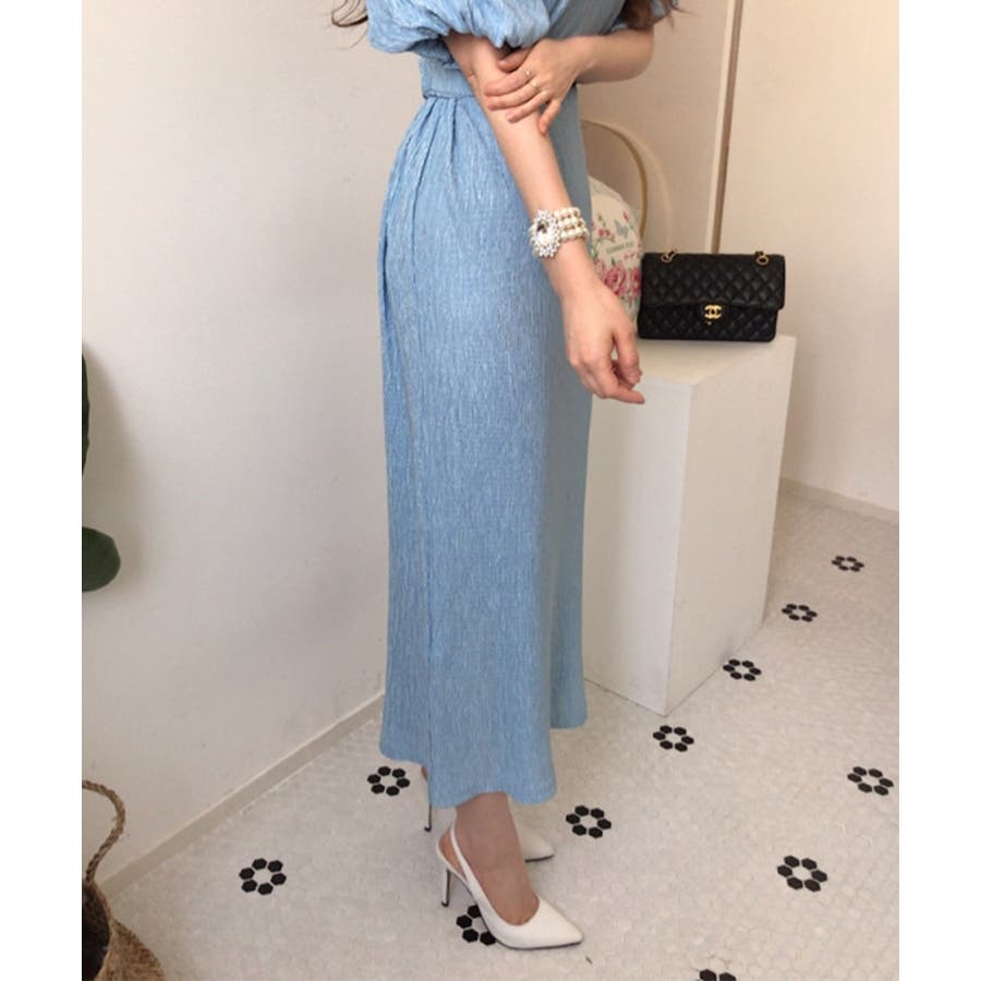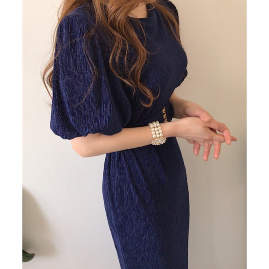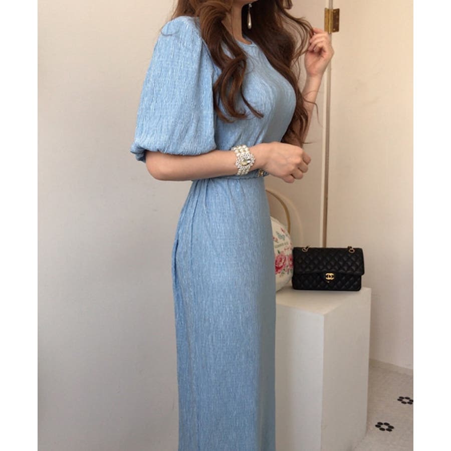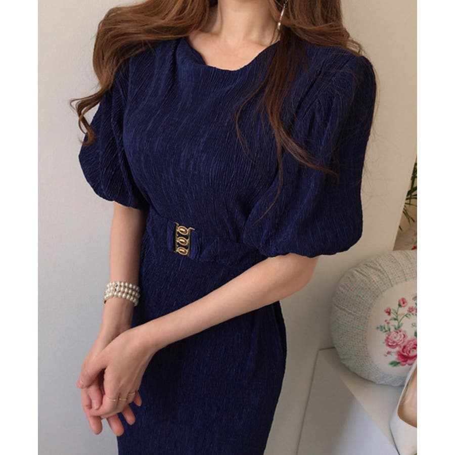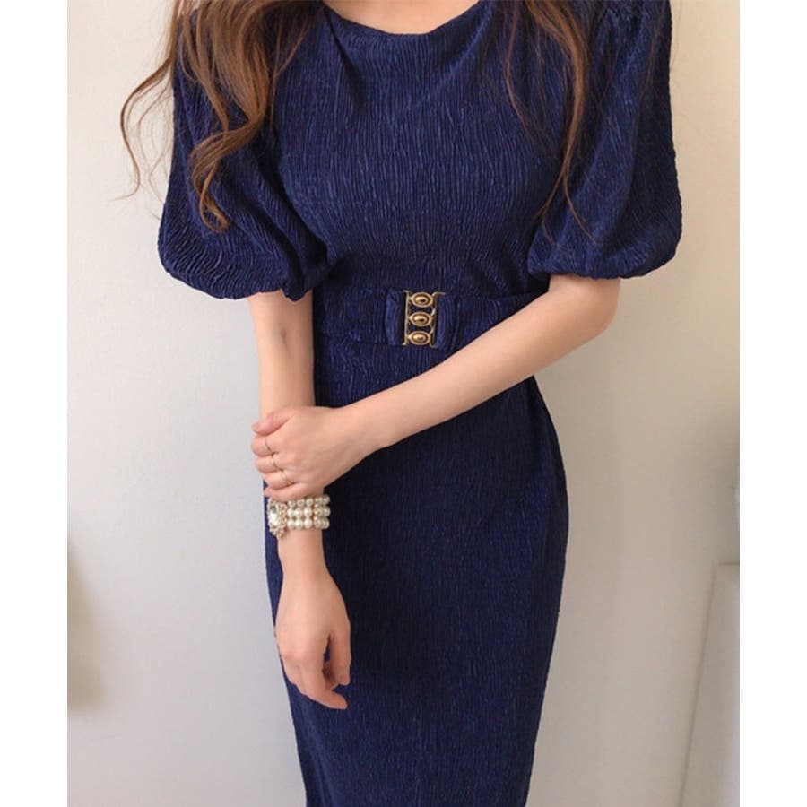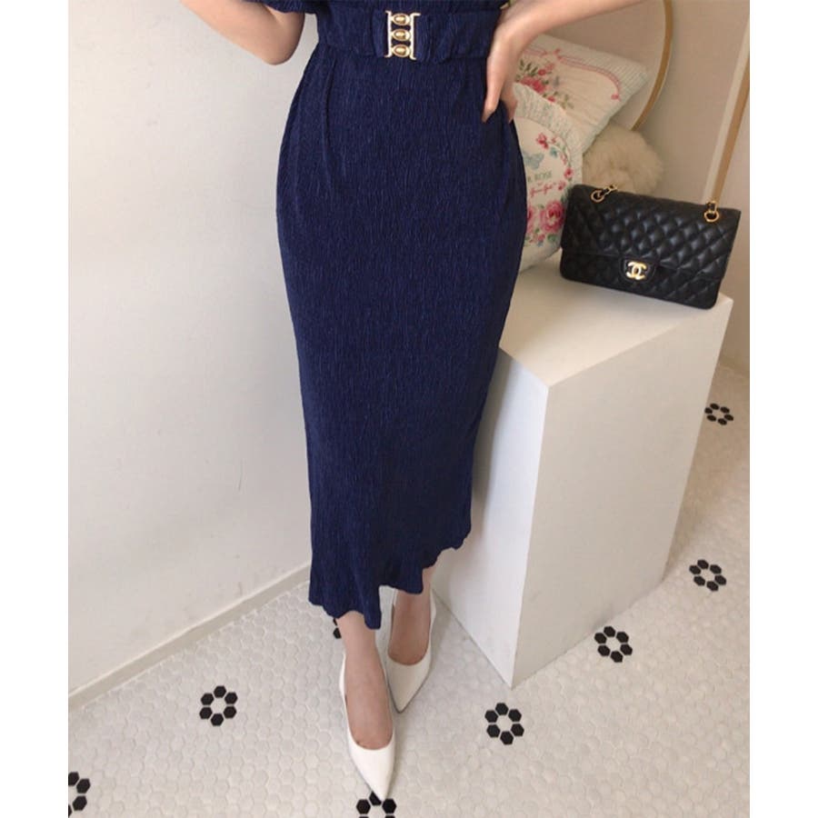タイトベルト付きロングワンピース 韓国ファッション ワンピース