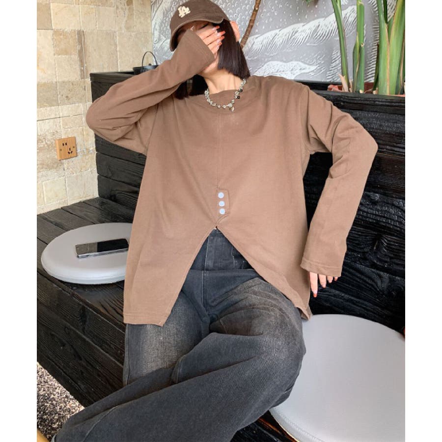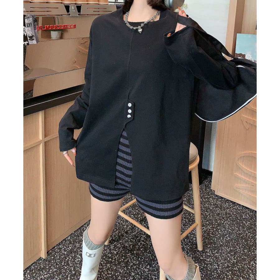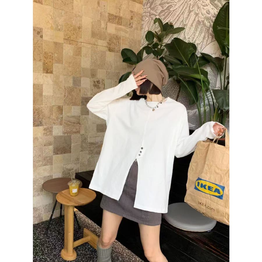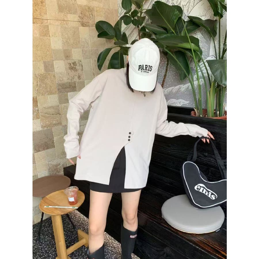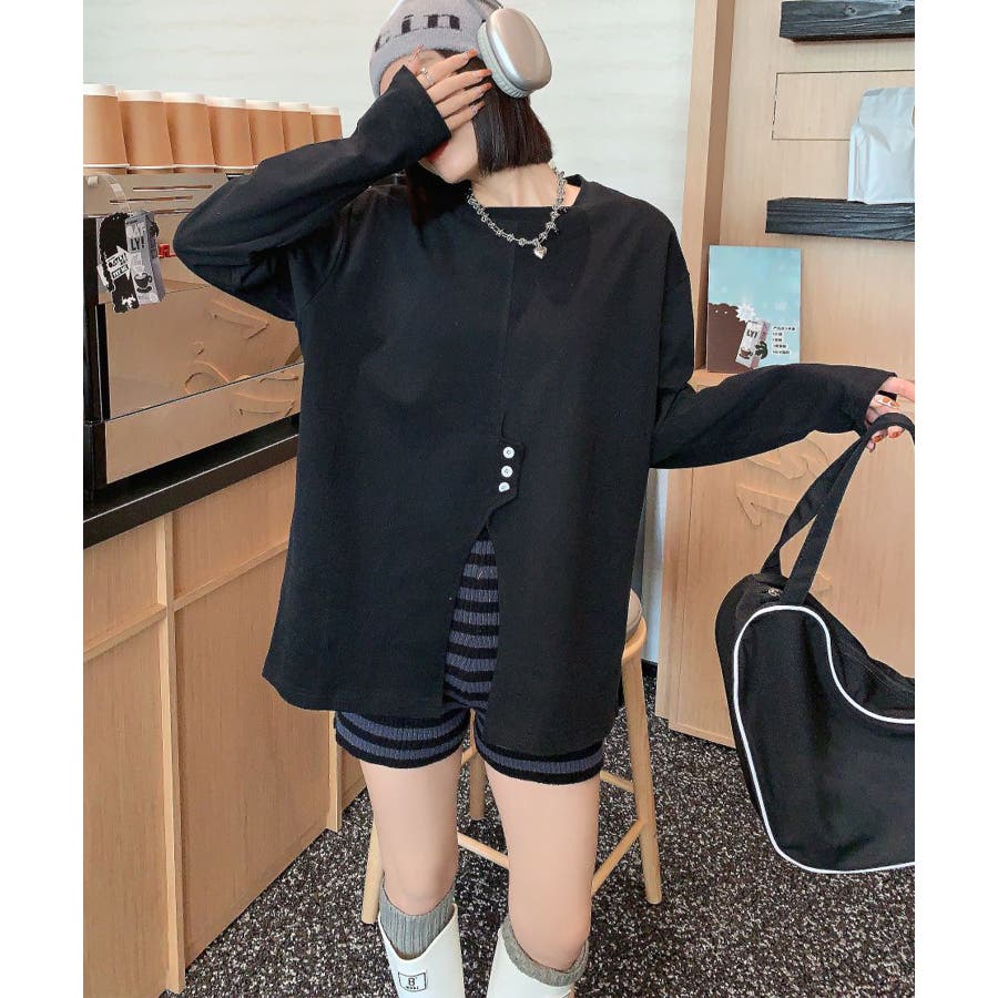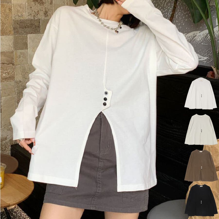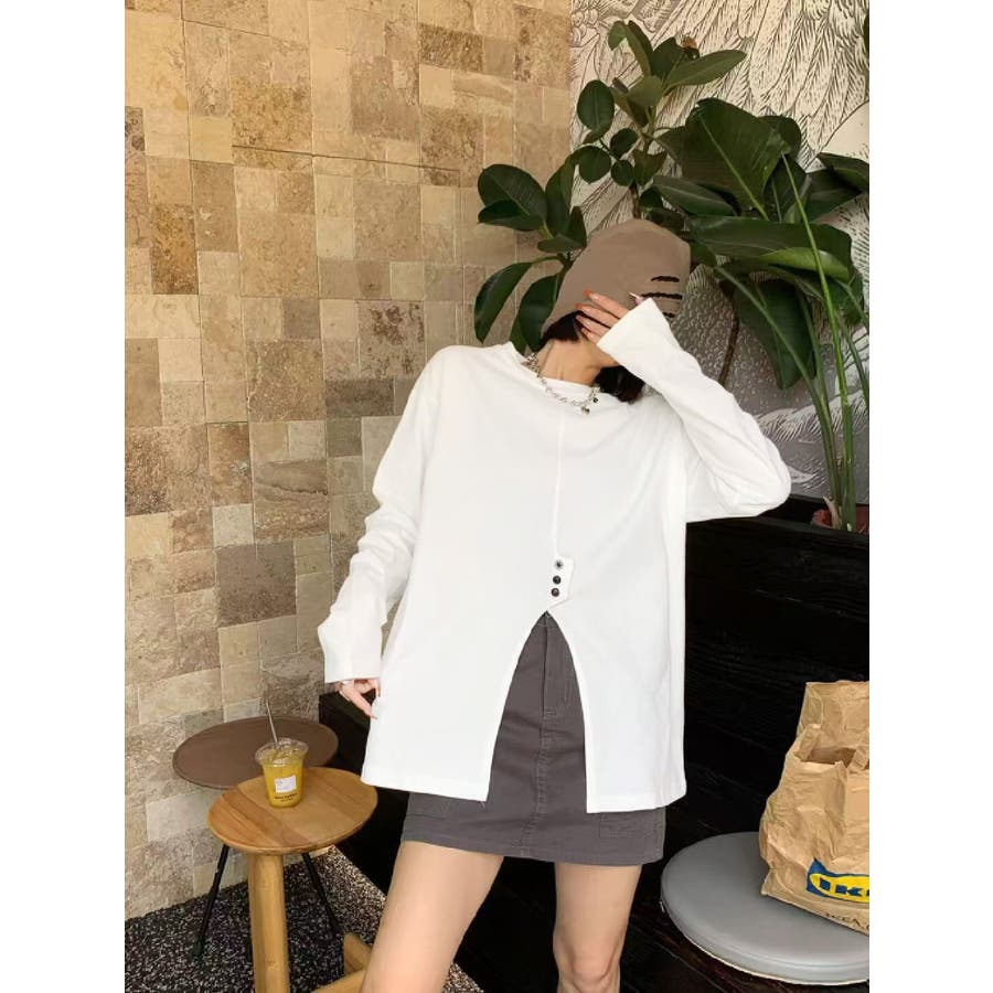 フロントスリットデザインTシャツ ロンT カットソー
