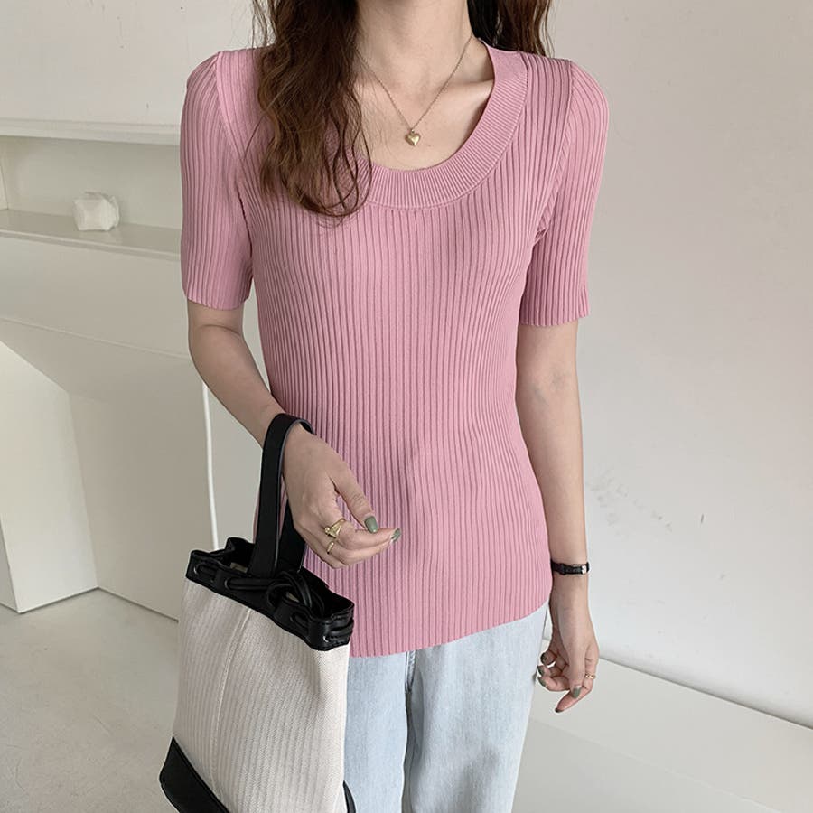 ラウンドネックシンプルカットソー 韓国ファッション ハイウエスト