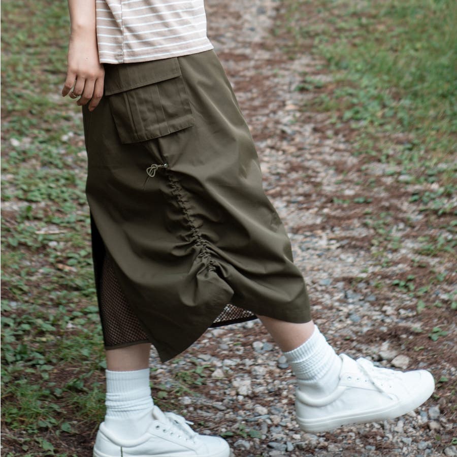 ●前後どちらでも着れちゃう2wayのデザイン●脇のギャザーストリングスで動きやすくスタイルチェンジ!●中のメッシュは通気性抜群で、スカート裾からレイヤーで見えるのがかわいい!●ポケットは脇ポケットとマチありのフラップポケットがついているので収納も◎●ウエストはゴムと紐がついているので楽チン&サイズ調節可能です。【S’more Apparel】 キャンプする時だっておしゃれしたい! [機能性]×[ファッショナブル]に拘った 女性も着やすい柔らかい雰囲気、スタイリングを楽しめるアイテムを展開。ユニセックスなので、リンクコーデも楽しめちゃう!キャンプ初心者の方、キャンプウェアに初めて手を出す方、サラッと着られて、おしゃれに普段使いもしたい方に向けた、手の届きやすいウェアをお届け♪