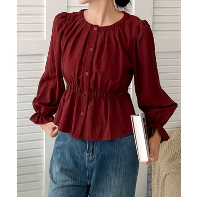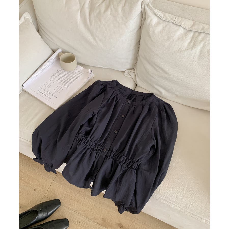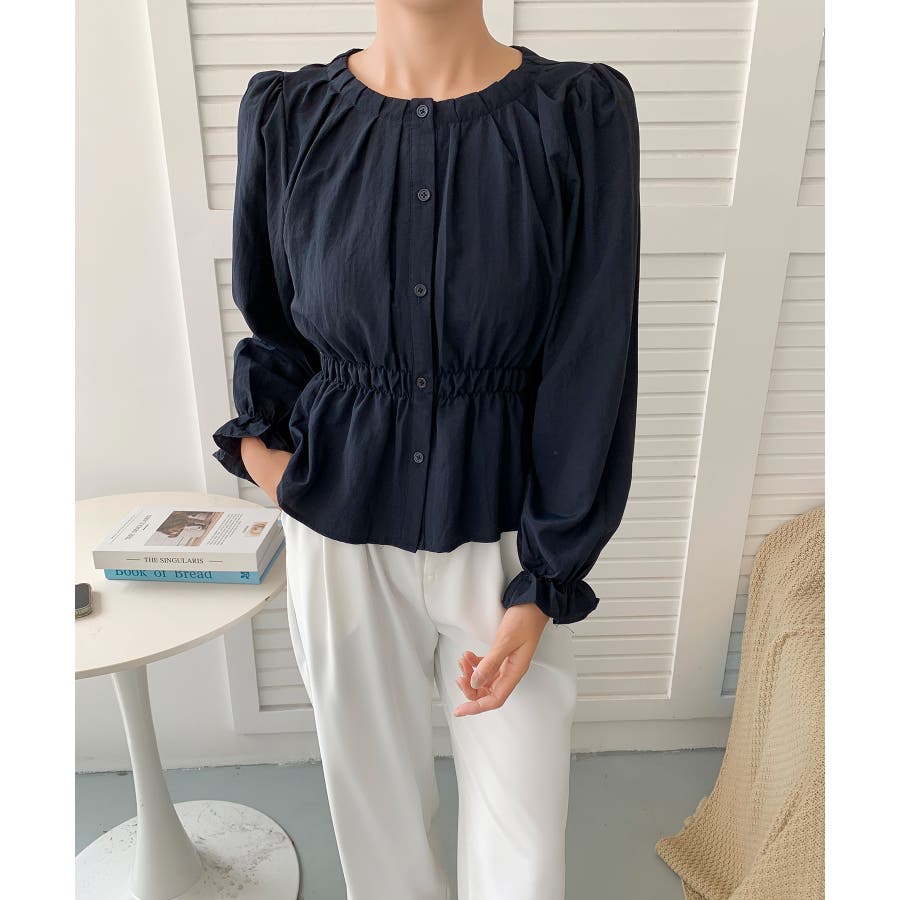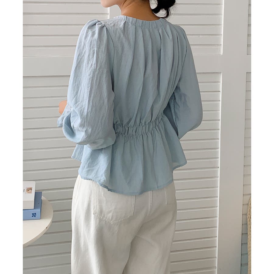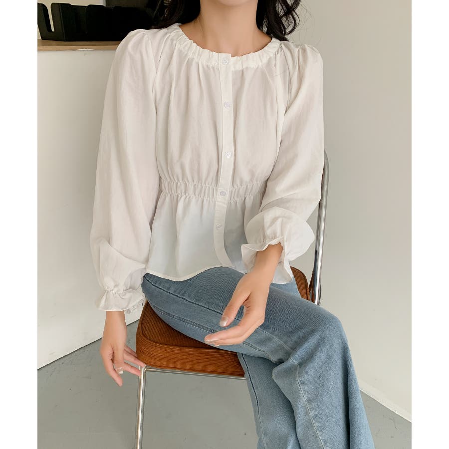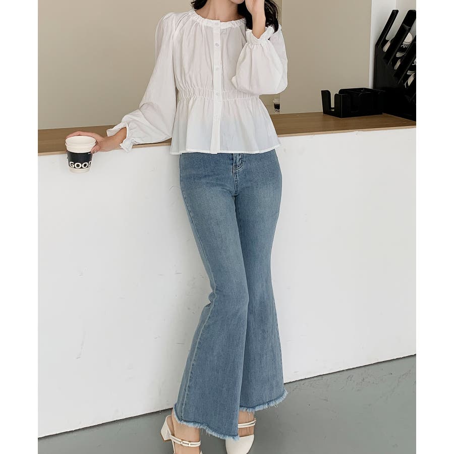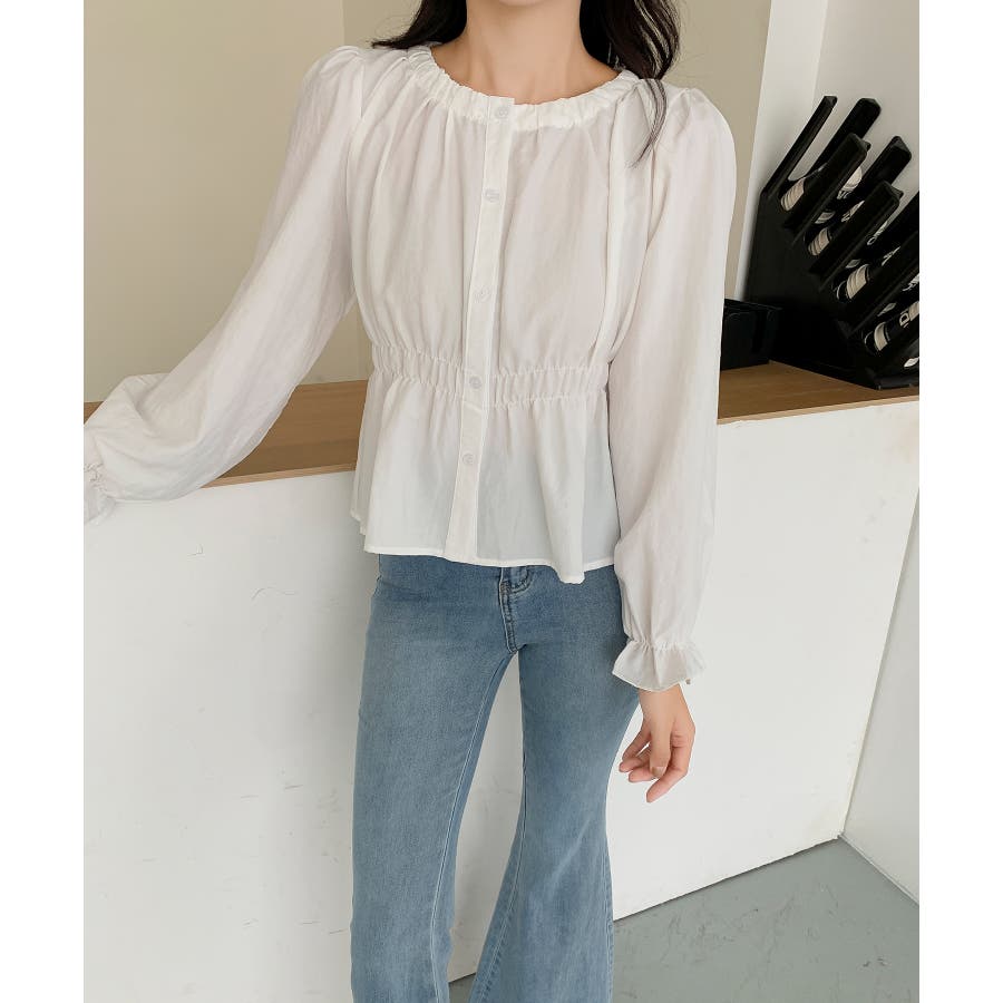 【BANICO】ウエストギャザー フリル袖 シャツブラウス
