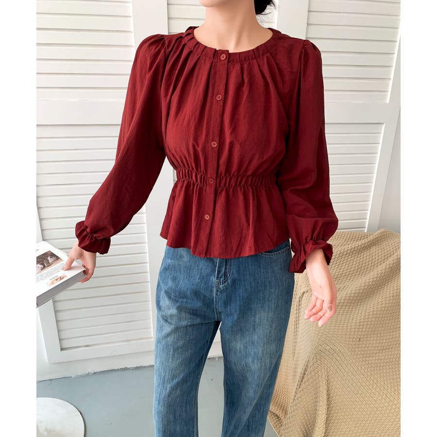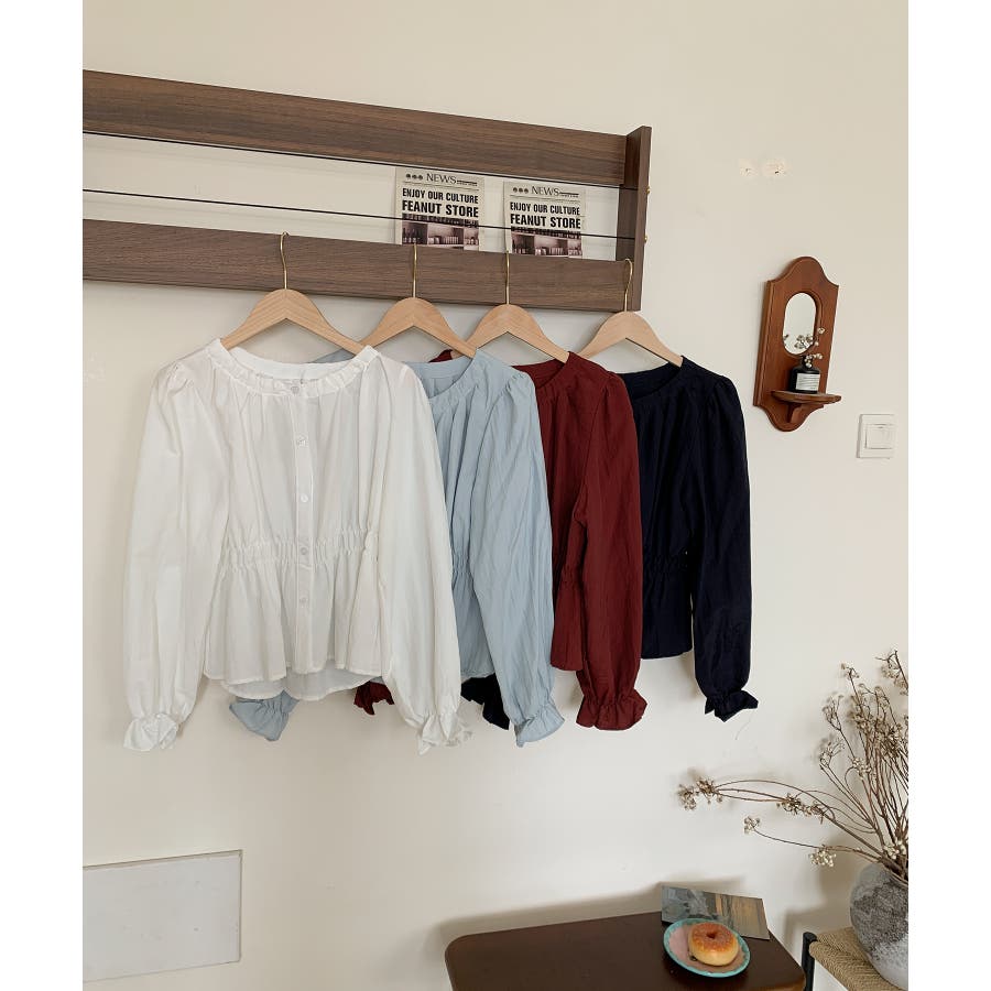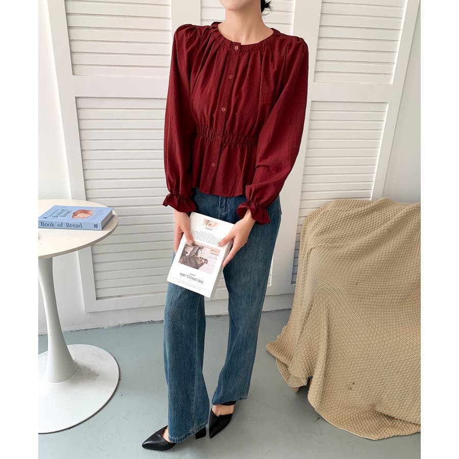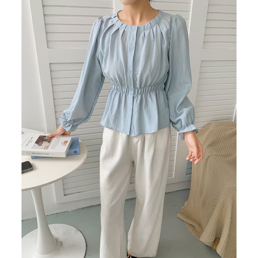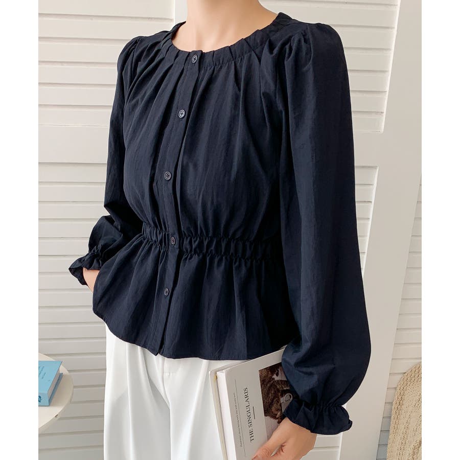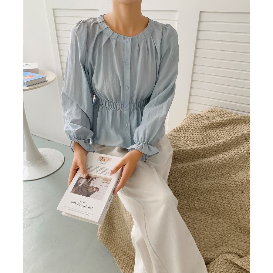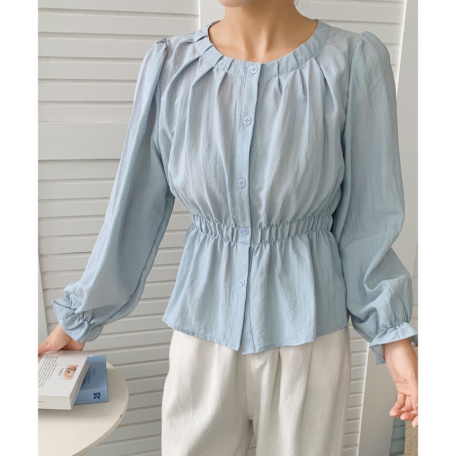【BANICO】ウエストギャザー フリル袖 シャツブラウス