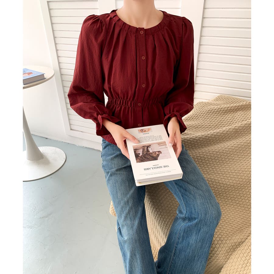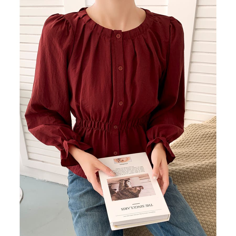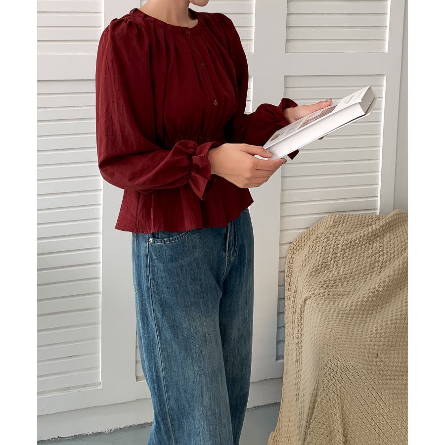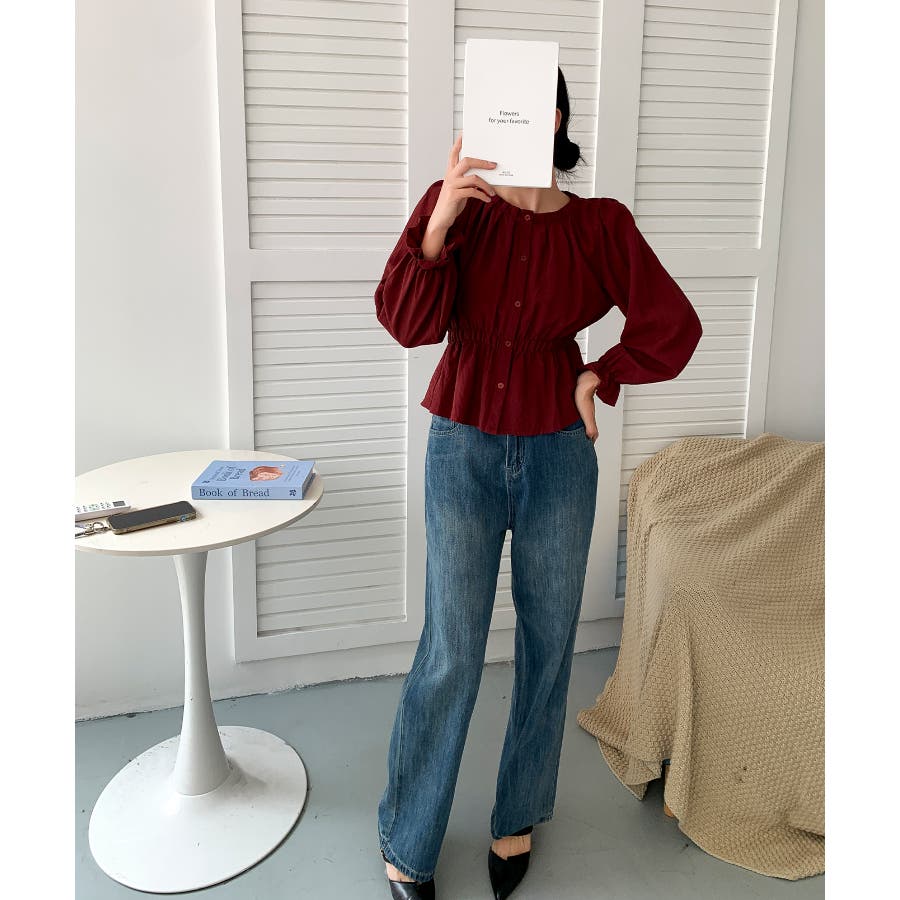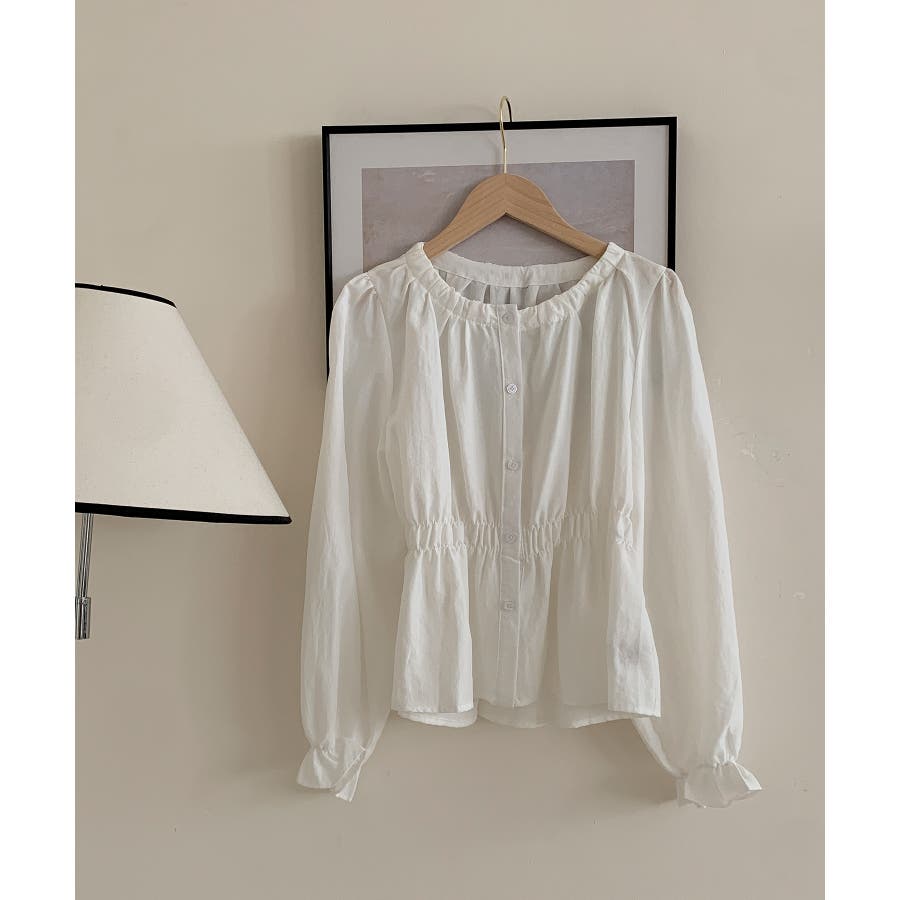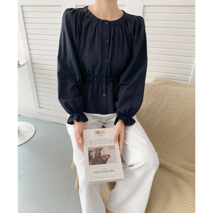 【BANICO】ウエストギャザー フリル袖 シャツブラウス