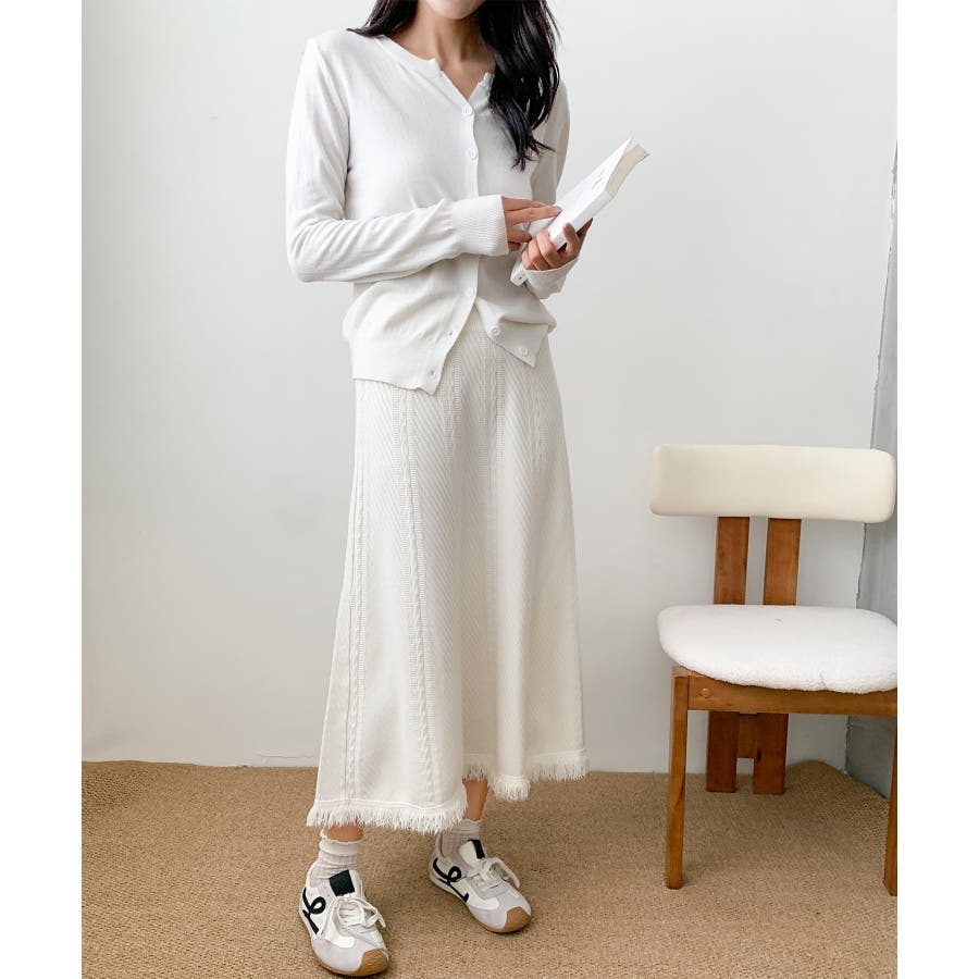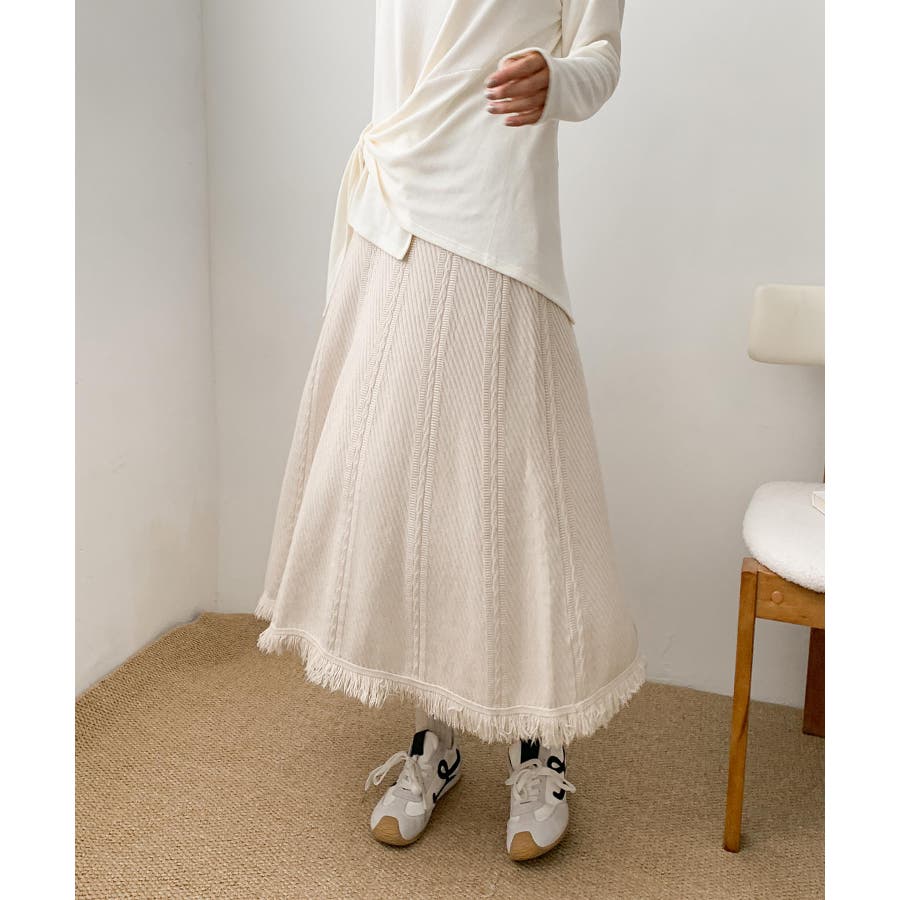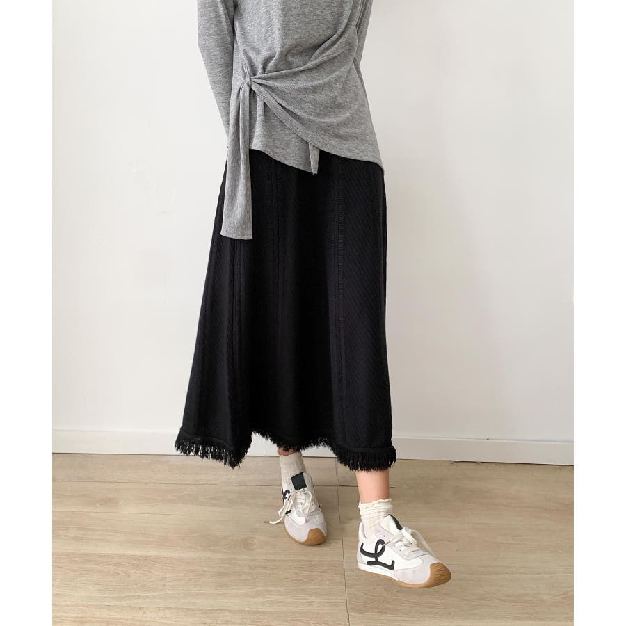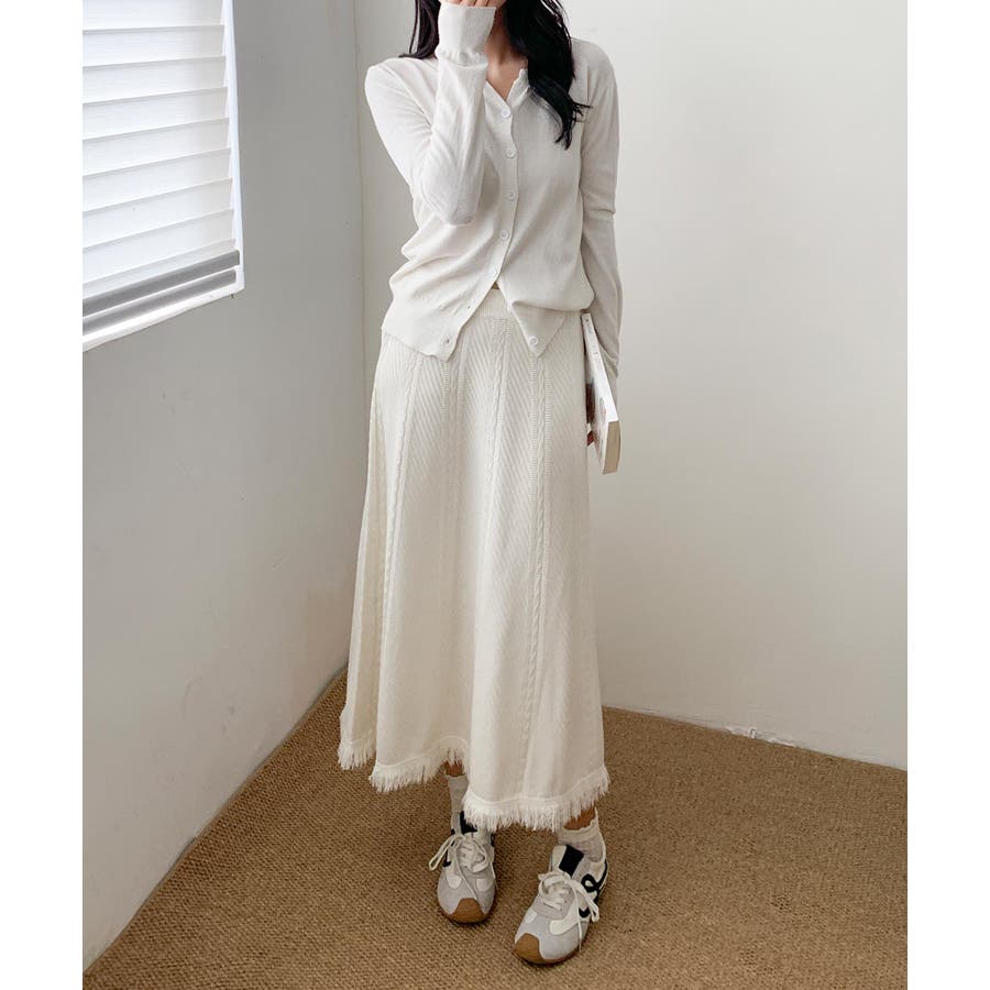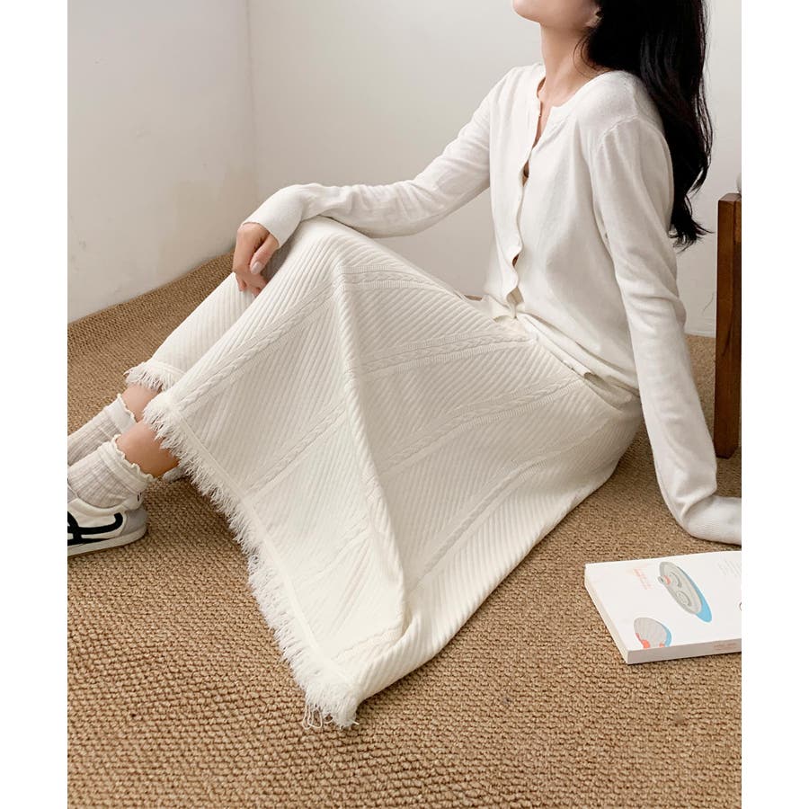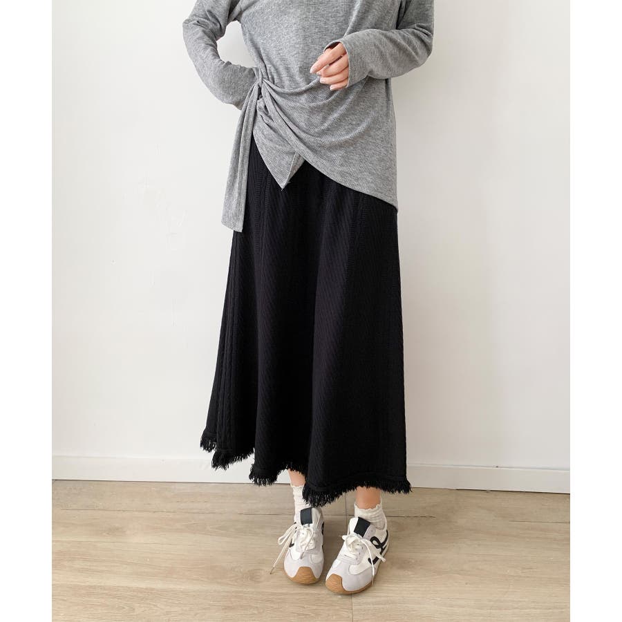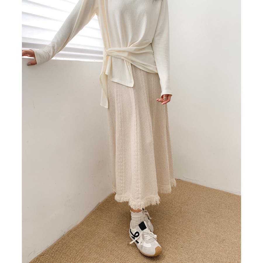 シンプルながら表情豊かな編み地が、コーディネートに奥行きをプラス。