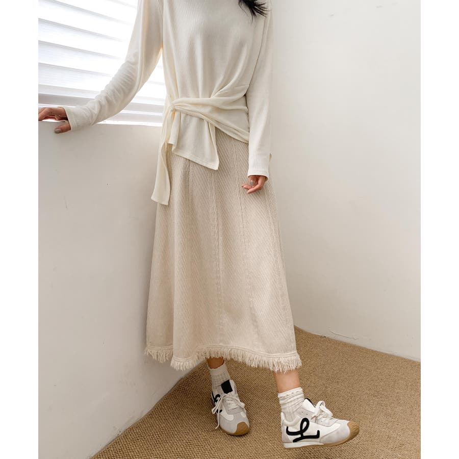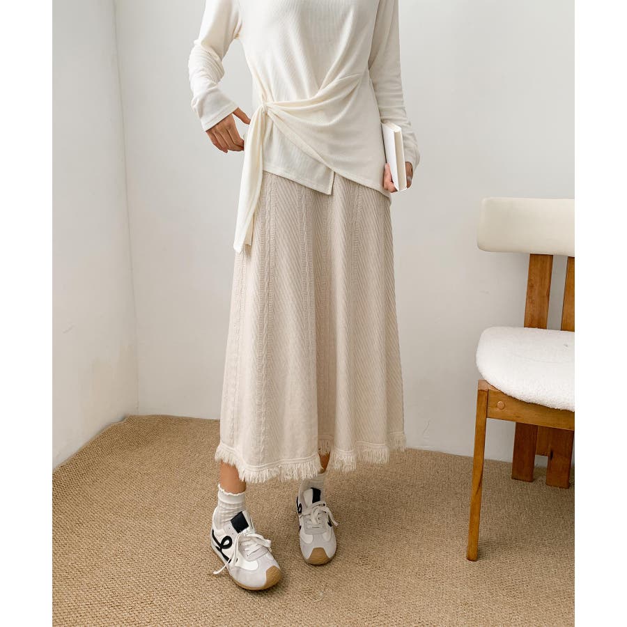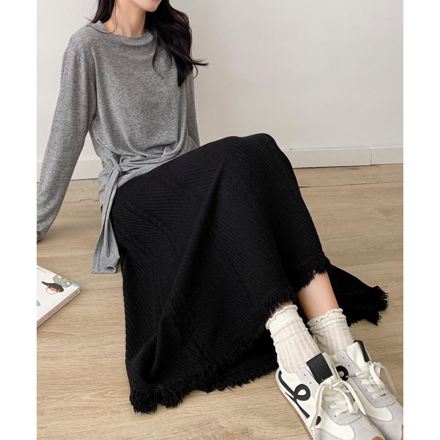 女性らしい柔らかなシルエットを描きつつ、ほどよい落ち感で体型を拾いすぎず安心して着られます。