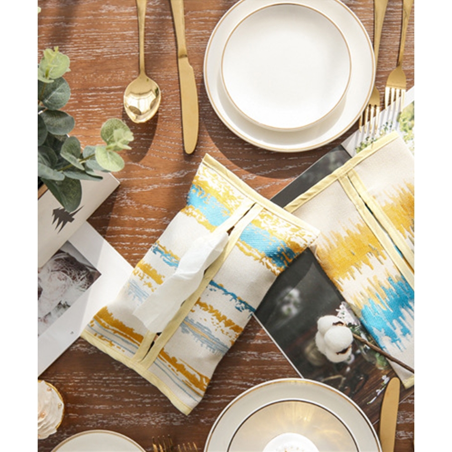 爽やかなターコイズと豪華なゴールドの組み合わせのティッシュケース。生活感の出るティッシュですが、ケースに入れるだけで生活感を消してくれます。