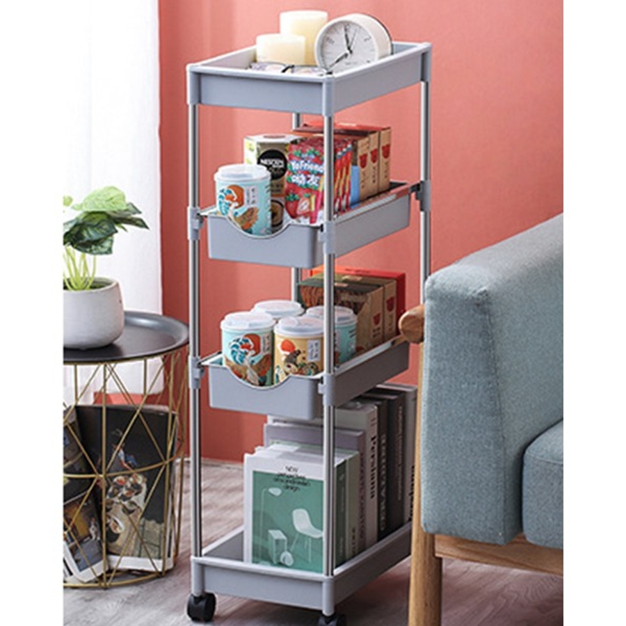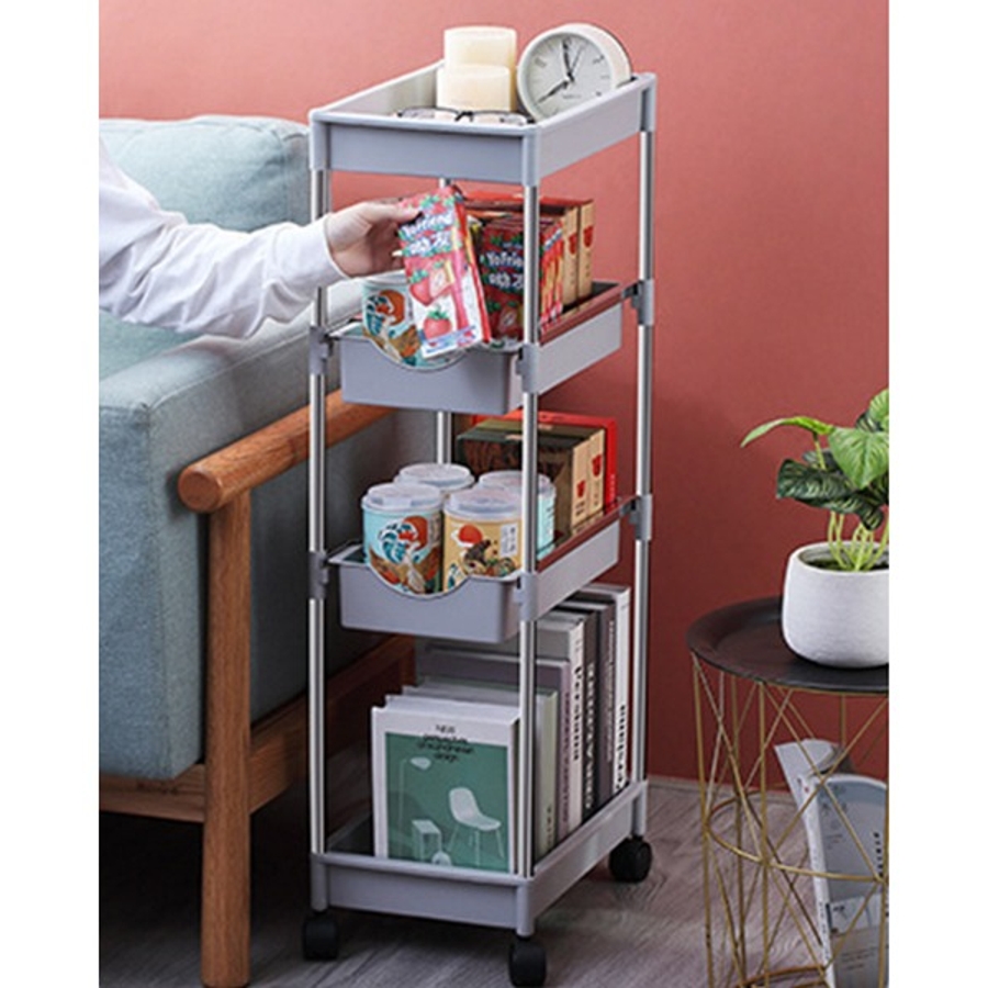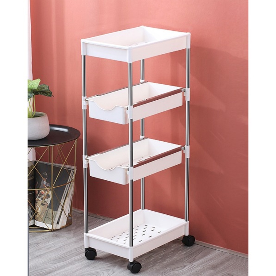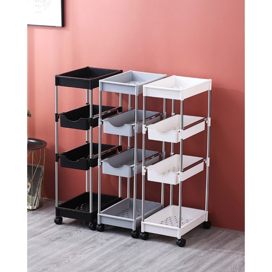 可動式4段引き出し収納ラックカート 可動 キッチンワゴン