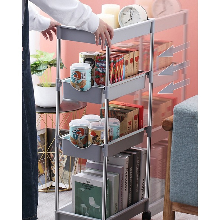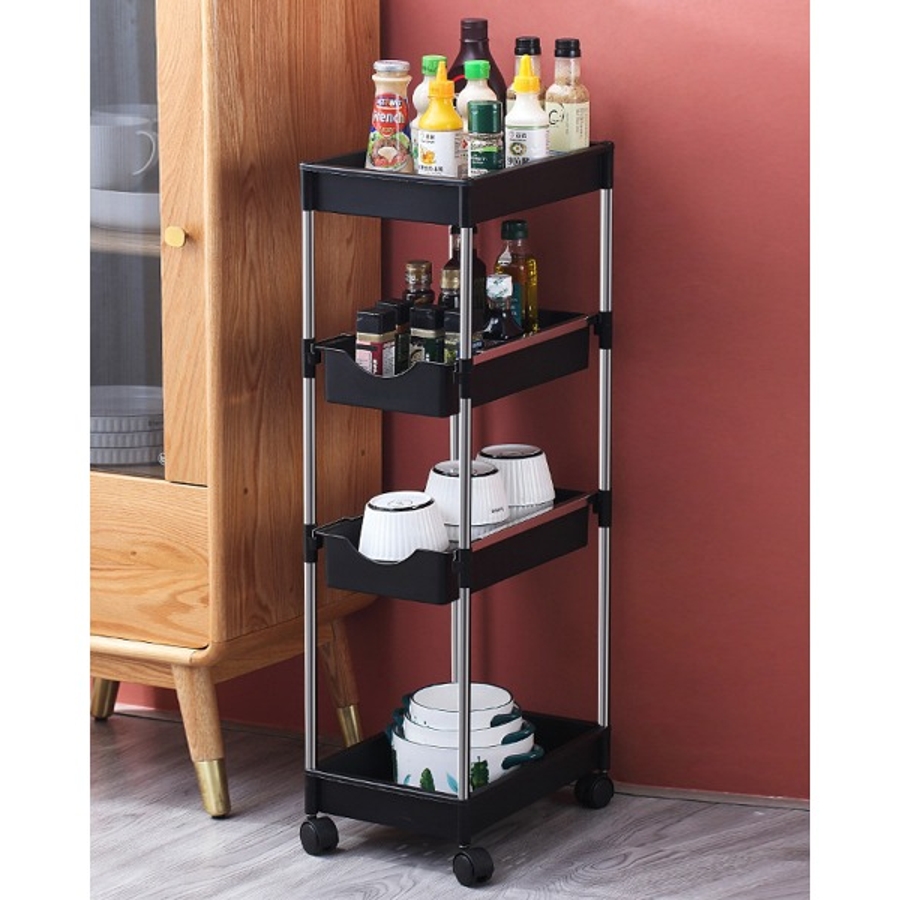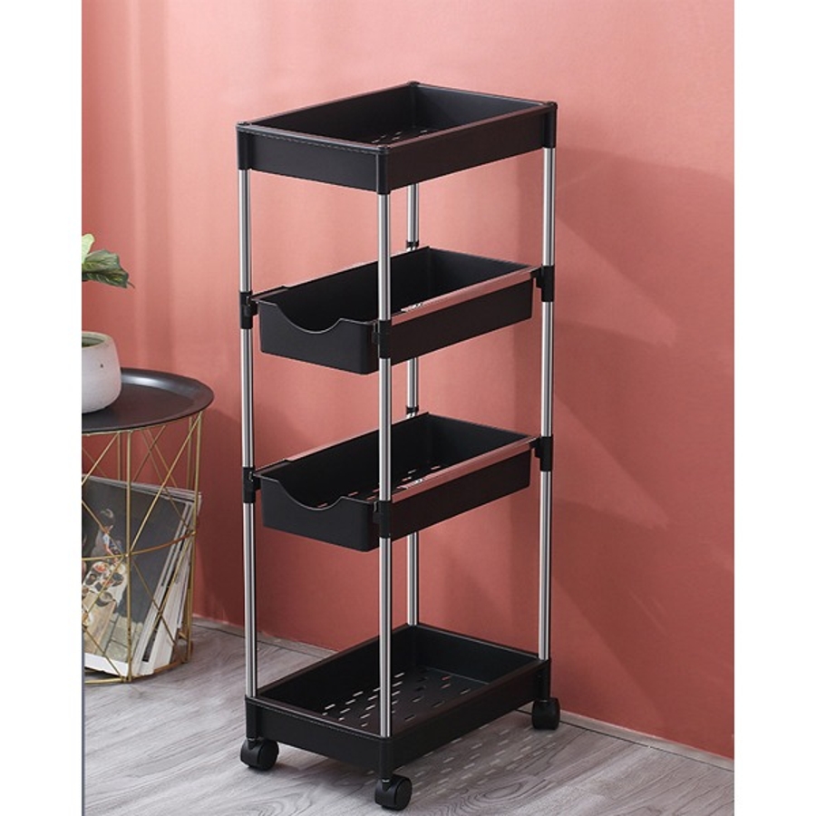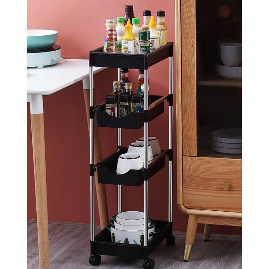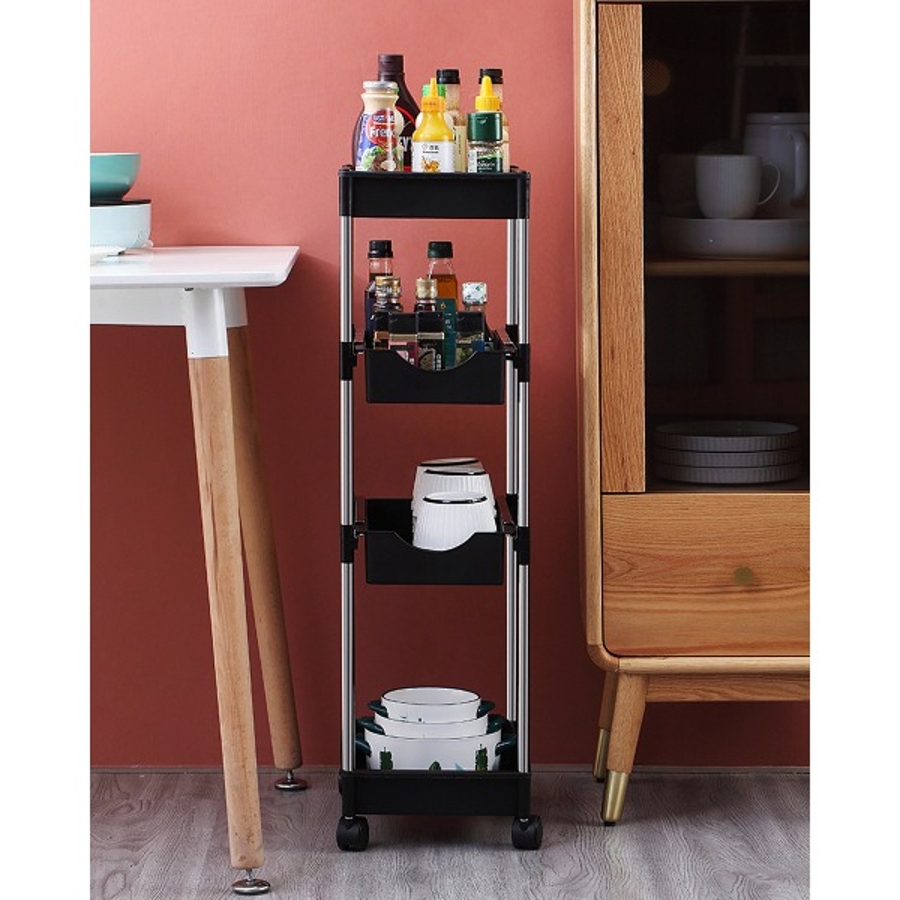 可動式4段引き出し収納ラックカート 可動 キッチンワゴン