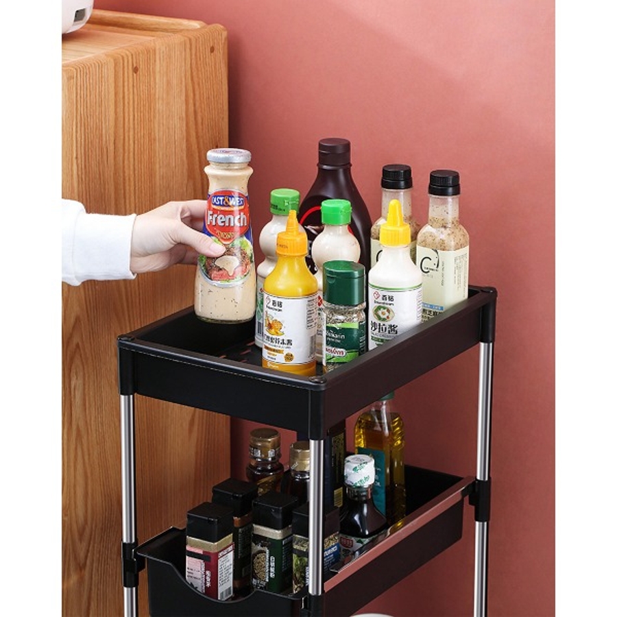 オープンタイプのワゴン。用途に合わせてキッチン、リビング、ランドリーなどに最適!幅広なのでクローゼットの中にいれても◎キッチン収納やトイレ収納、洗面台収納としても◎ スライドトレーは調味料類が倒れにくい構造になっています。簡単に出し入れできるスライド式です。取り出しにくい奥側スペースのストレスを解消できますね。キャスター付きキッチンワゴン、リビングワゴン、ランドリーワゴンとして使用できます☆