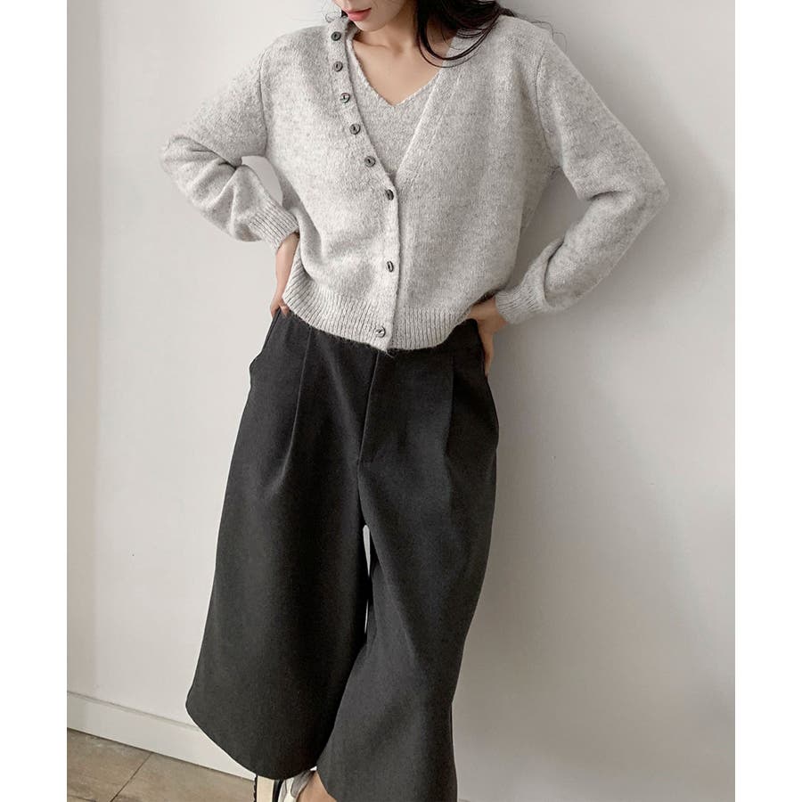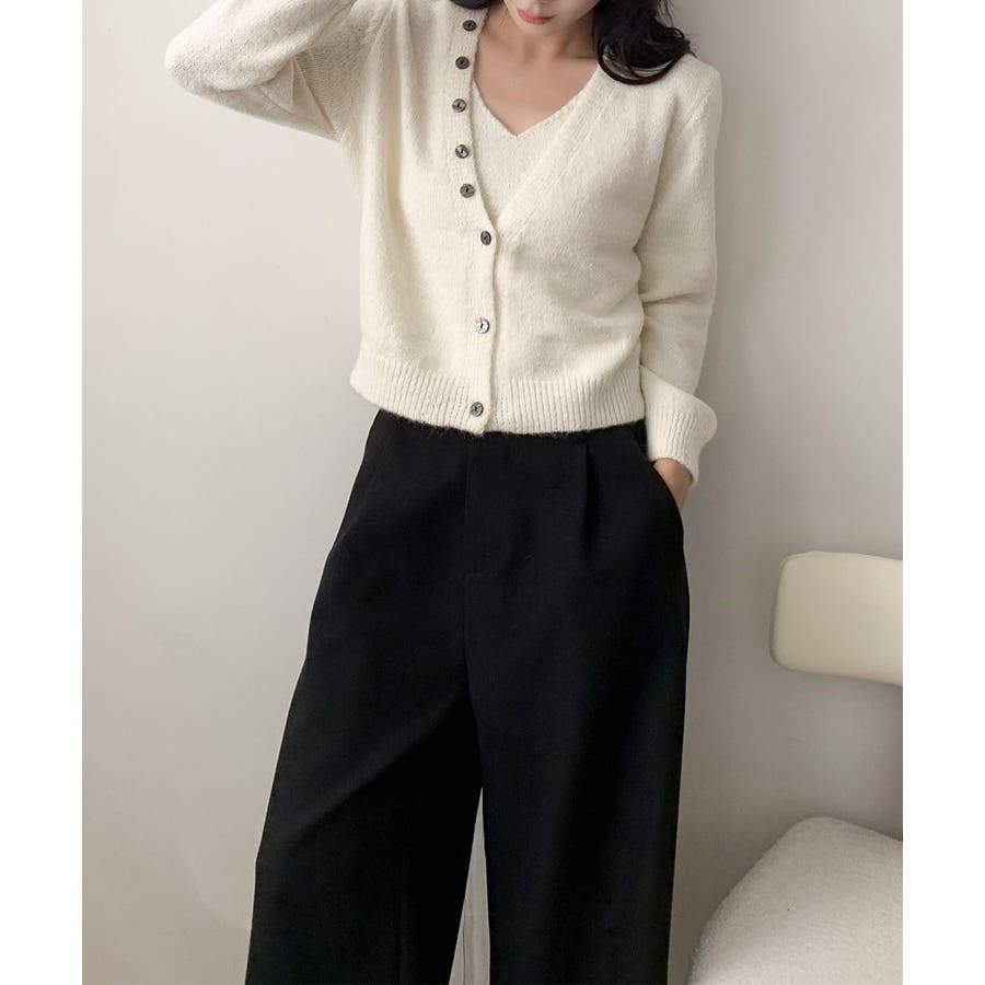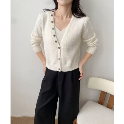 インナーのキャミはフィット感があり、カーディガンとのレイヤードでバランス良く着こなせます。