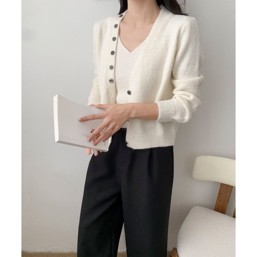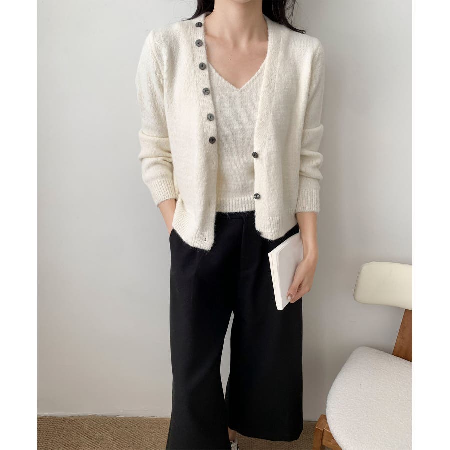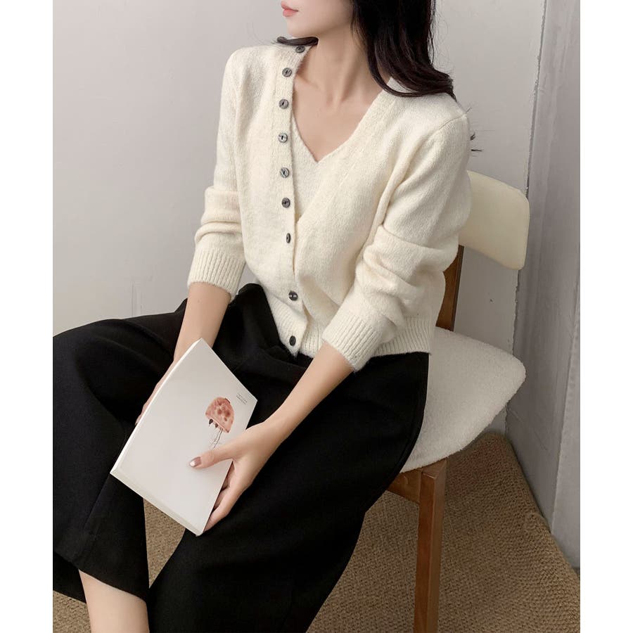 キャミソール付きふんわりニットカーディガンセット アンサンブル