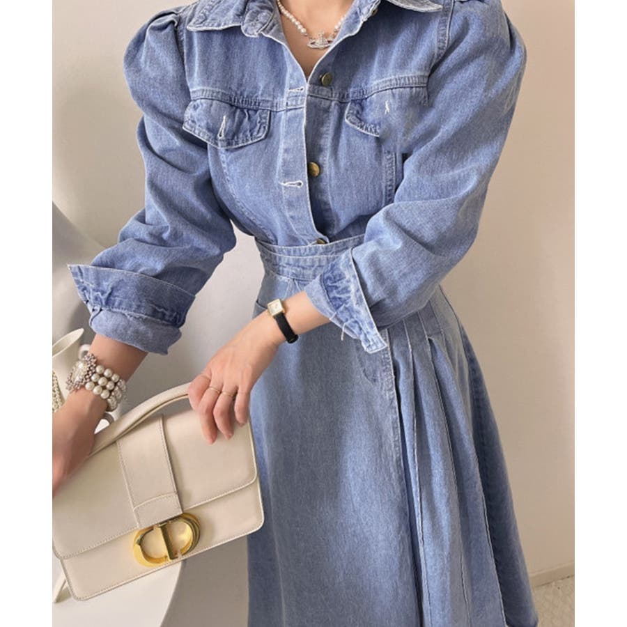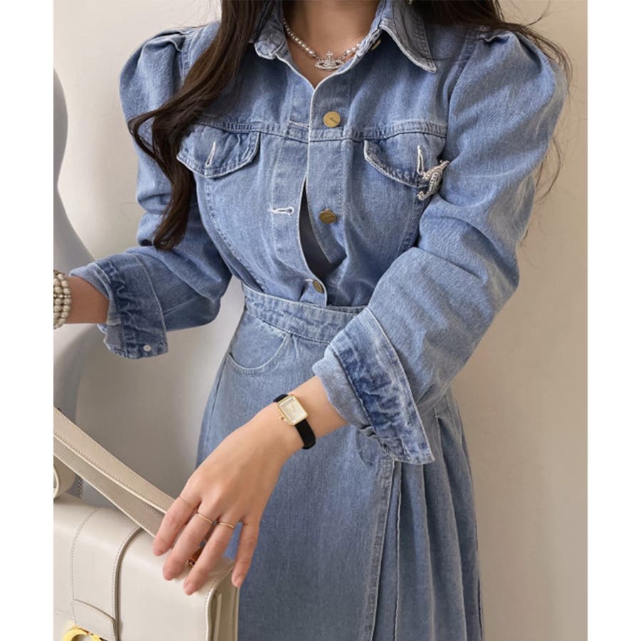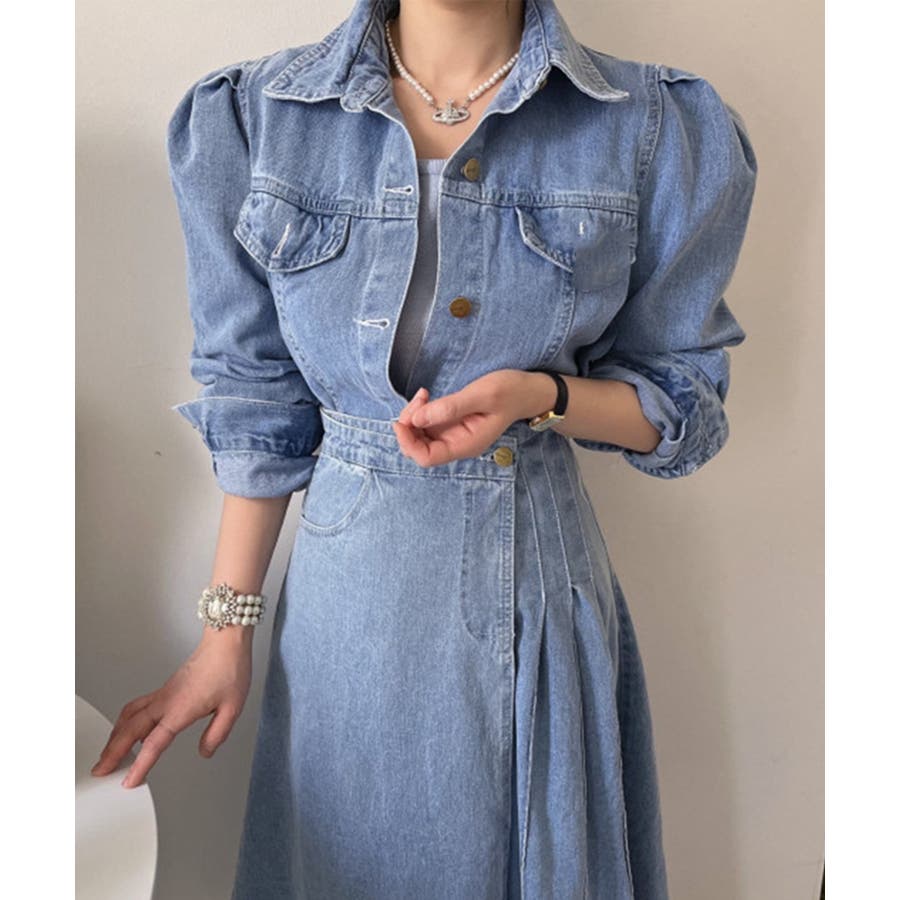 パフスリーブデニムジャケット韓国ファッション ハイウエスト セクシー