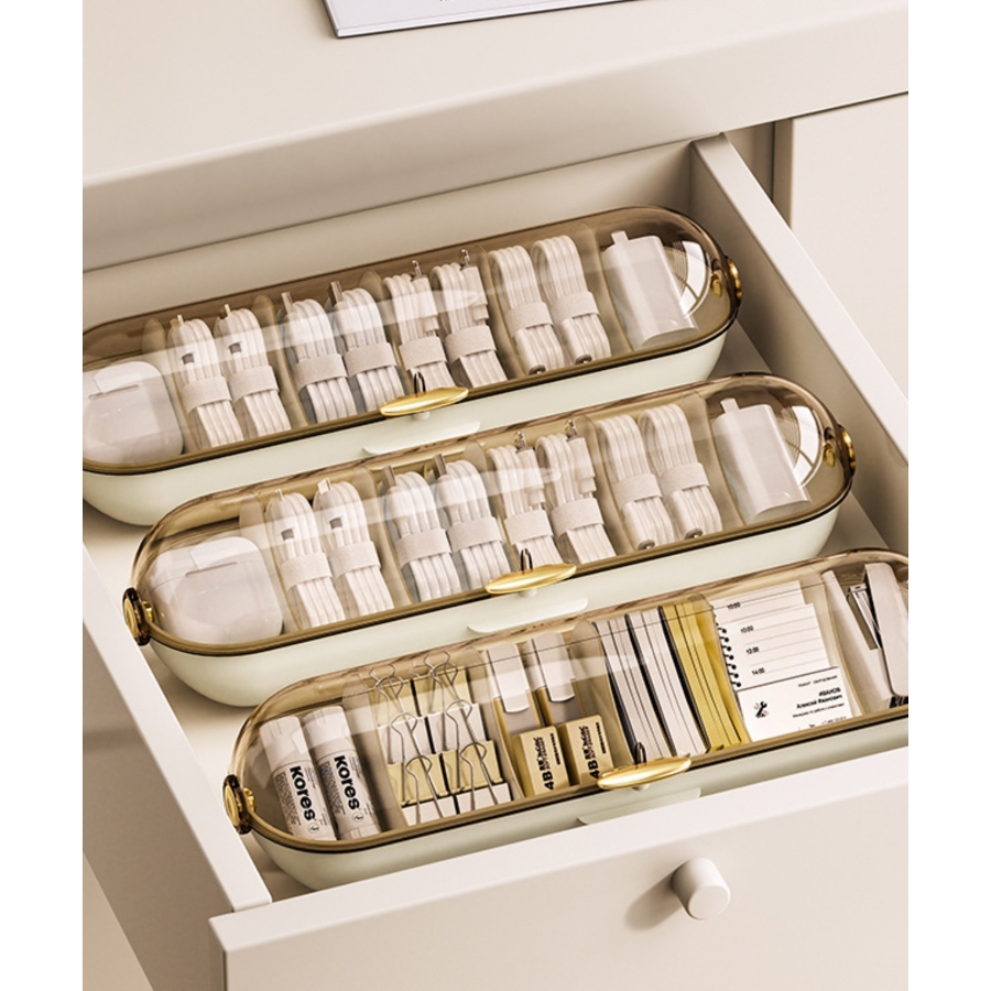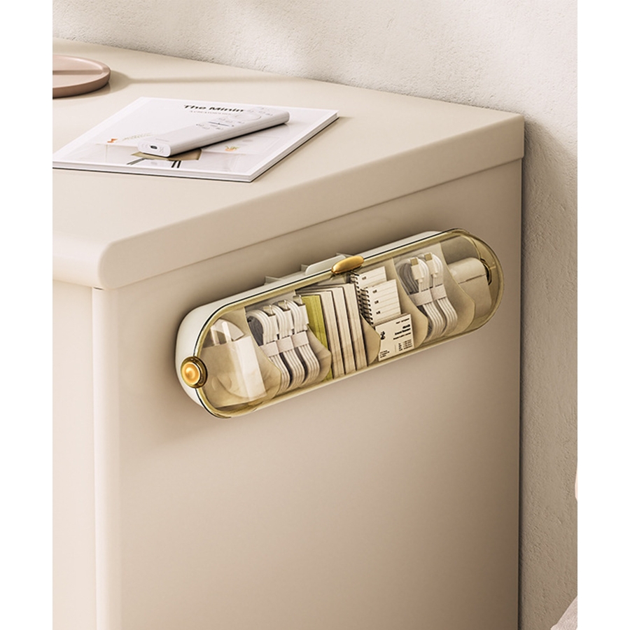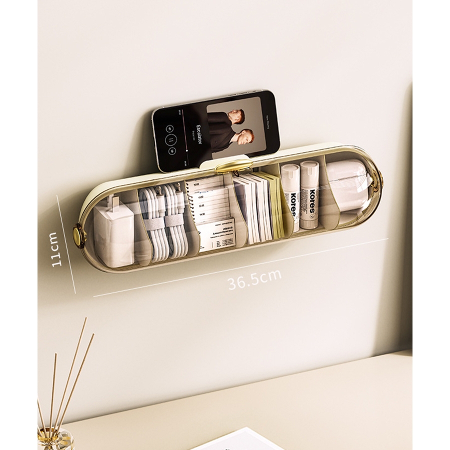 収納ボックスには仕切りがついているため、小物の整理整頓に最適です。文房具やハンドクリームなどの小物を仕切りで分けて収納することで、取り出しやすく管理しやすくなります。また、仕切りは取り外し可能なため、自分好みのレイアウトで収納できます。壁掛け式なので、床面積を占有せず、壁面の有効活用ができます。キッチンやリビング、玄関など、様々な場所に取り付けて使うことができます。耐久性にも優れており、長く使い続けることができます。お部屋のインテリアに合わせてお選びいただけます。