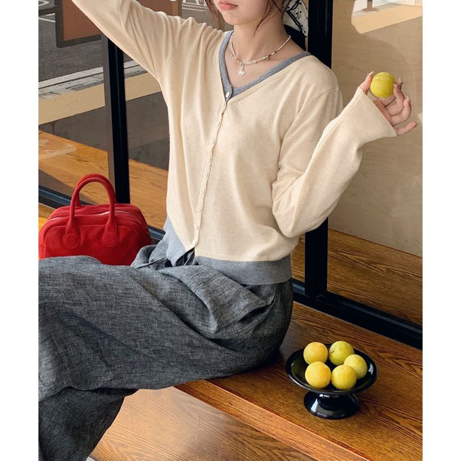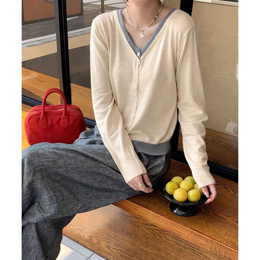 バイカラーVネックニットカーディガン