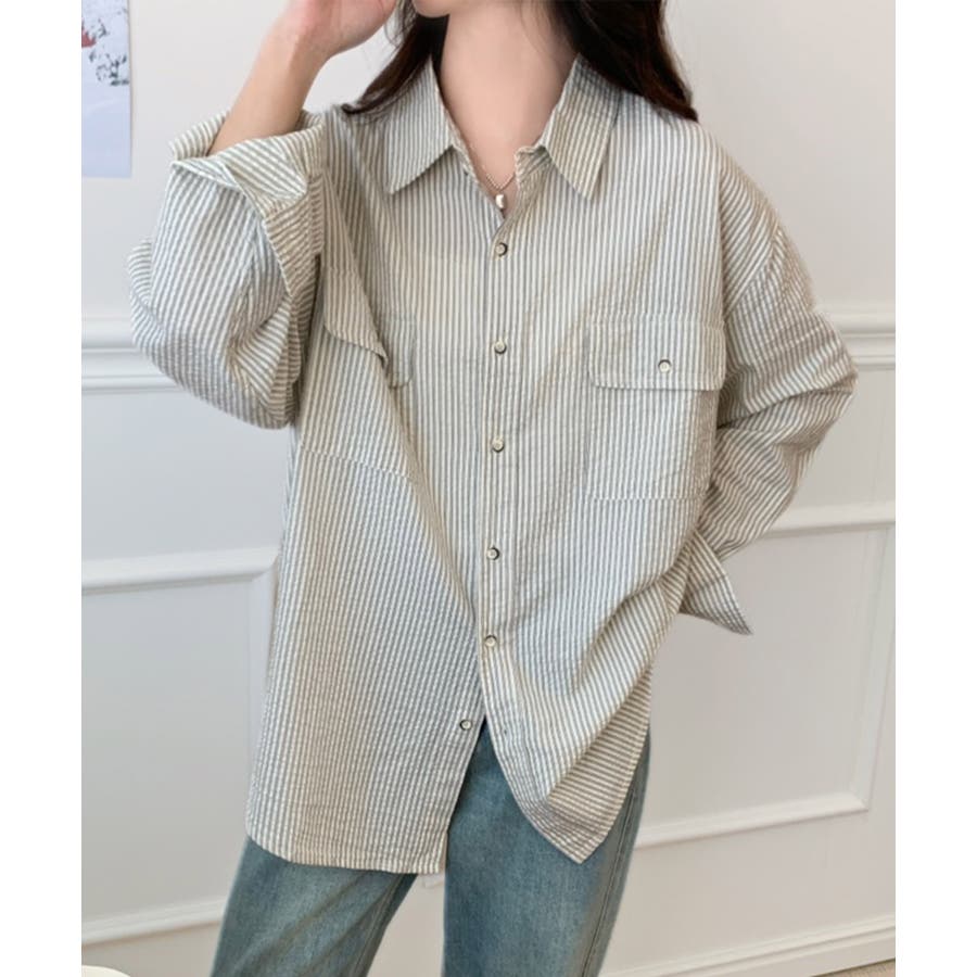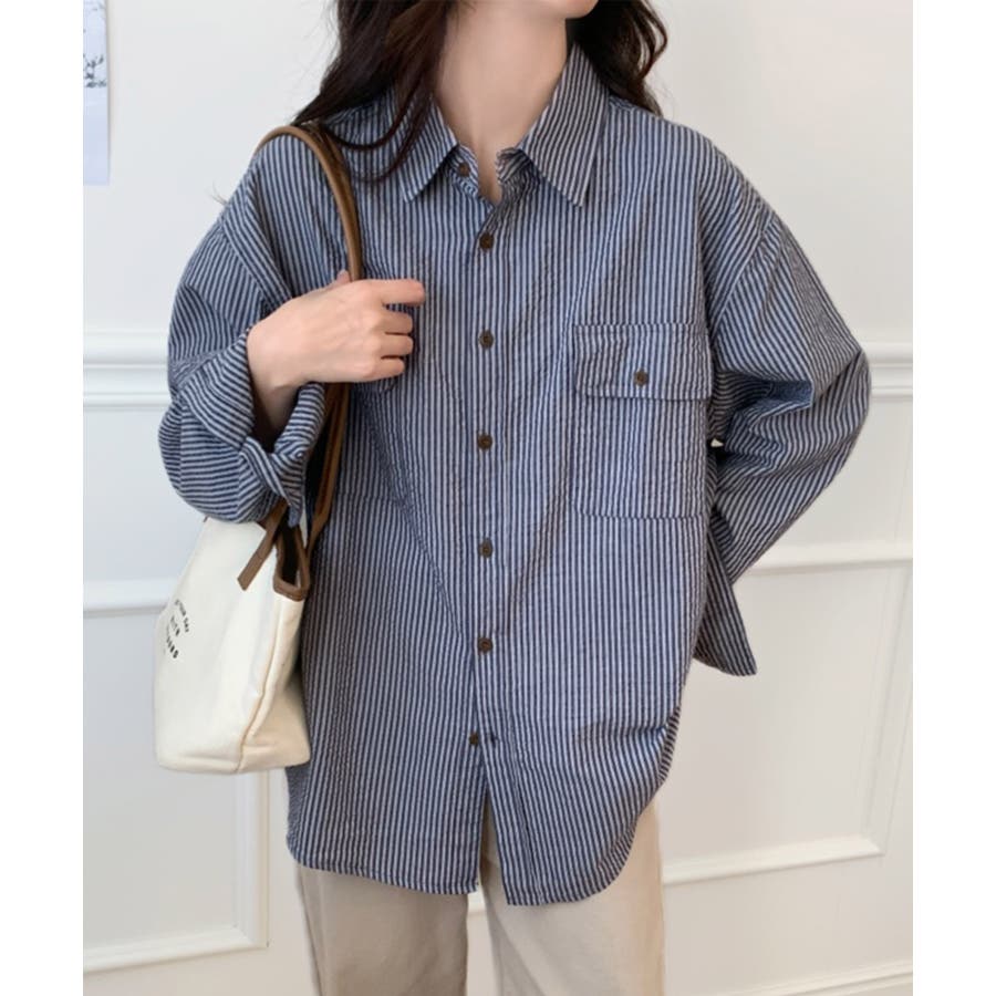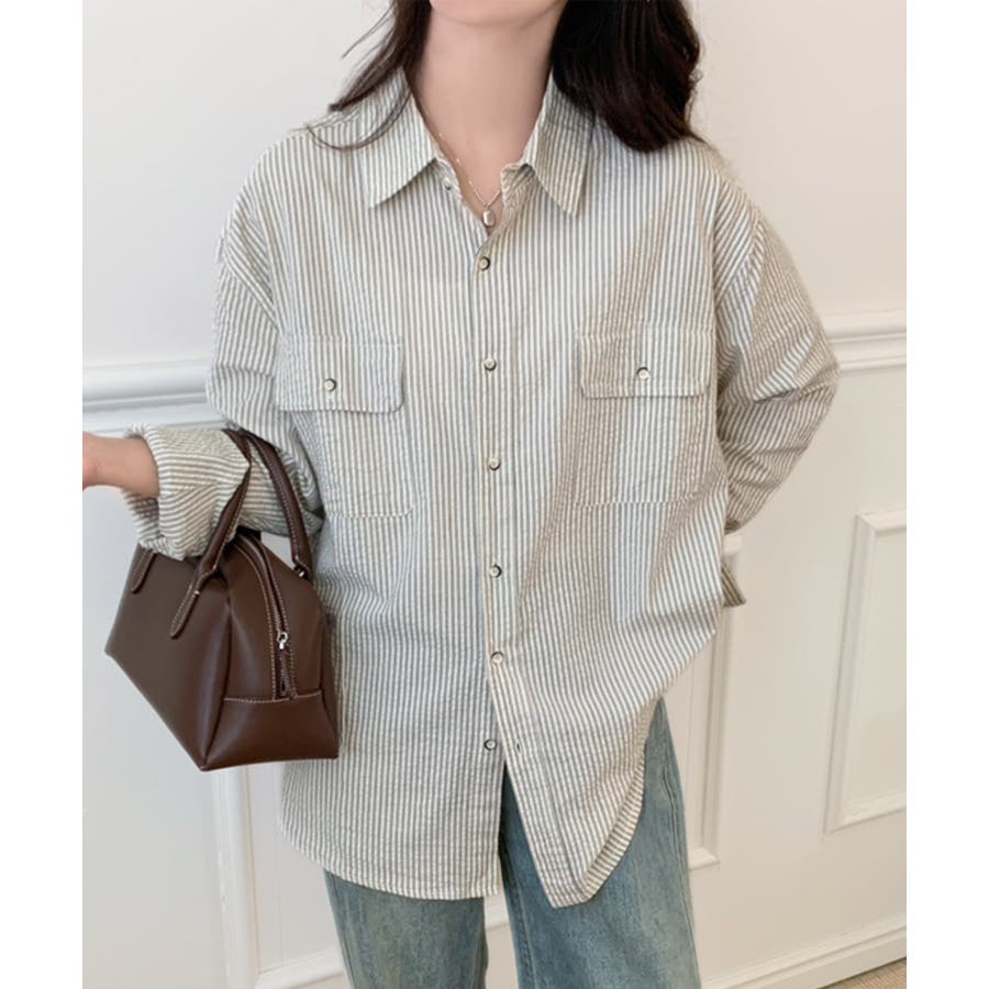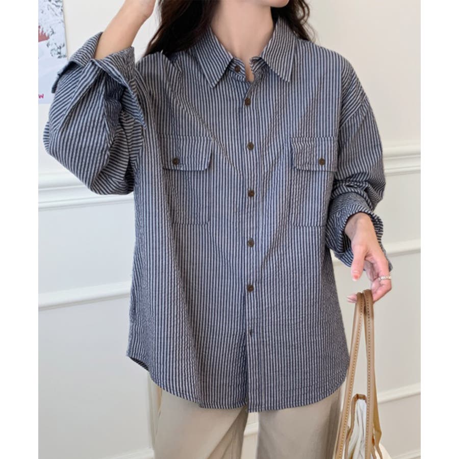 クラシックなストライプ柄とフロントのダブルポケットデザインが特徴のシャツ。綿100%で柔らかな肌触りと通気性に優れており、程よい厚みで春秋におすすめな一枚です。ゆったりとしたシルエットがリラックス感を与えつつ、ストライプ柄が全体をすっきりと引き締めてみせてくれます。フロントのポケットがカジュアルな雰囲気をプラスし、シンプルながらもおしゃれな印象に。デニムやチノパンと合わせてカジュアルなスタイルに、またはスラックスやタイトスカートと組み合わせてスマートなカジュアルスタイルにも。通勤や日常使いにも使える万能なアイテムです。