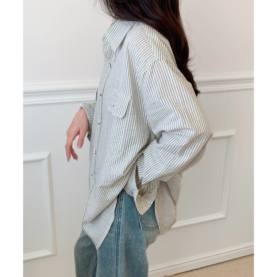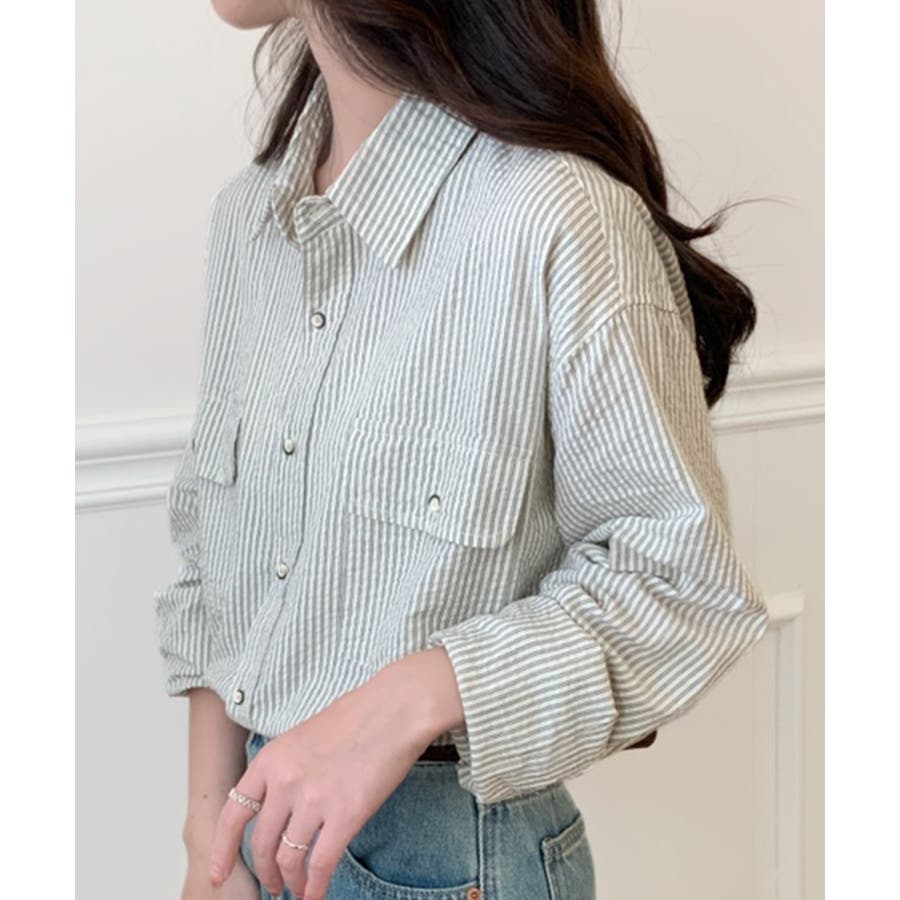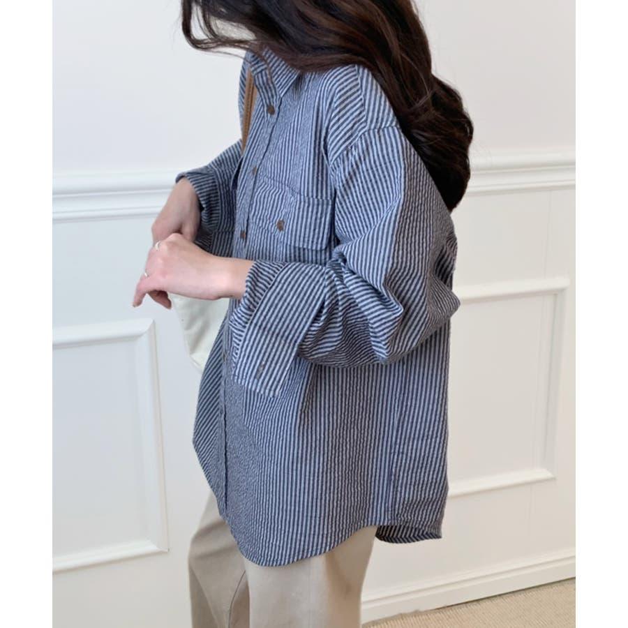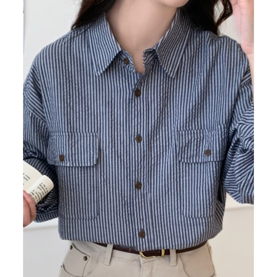 クラシックなストライプ柄とフロントのダブルポケットデザインが特徴のシャツ。綿100%で柔らかな肌触りと通気性に優れており、程よい厚みで春秋におすすめな一枚です。ゆったりとしたシルエットがリラックス感を与えつつ、ストライプ柄が全体をすっきりと引き締めてみせてくれます。フロントのポケットがカジュアルな雰囲気をプラスし、シンプルながらもおしゃれな印象に。デニムやチノパンと合わせてカジュアルなスタイルに、またはスラックスやタイトスカートと組み合わせてスマートなカジュアルスタイルにも。通勤や日常使いにも使える万能なアイテムです。