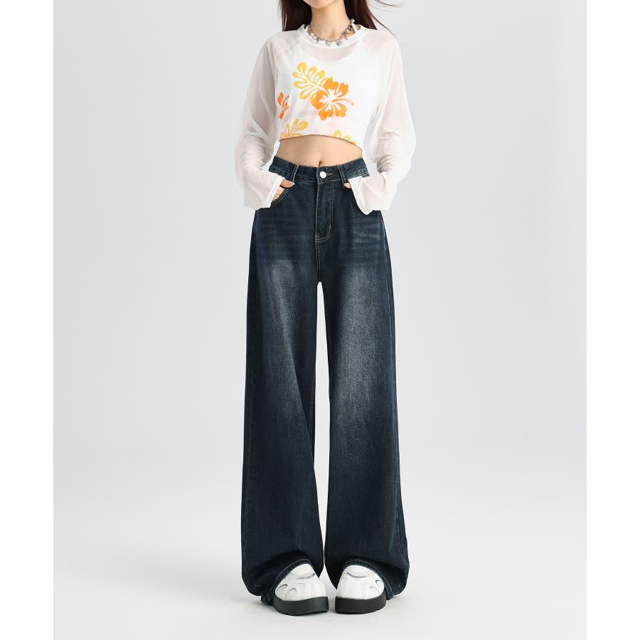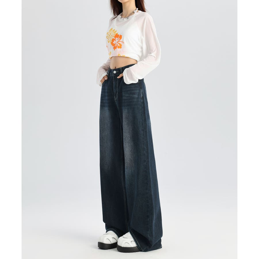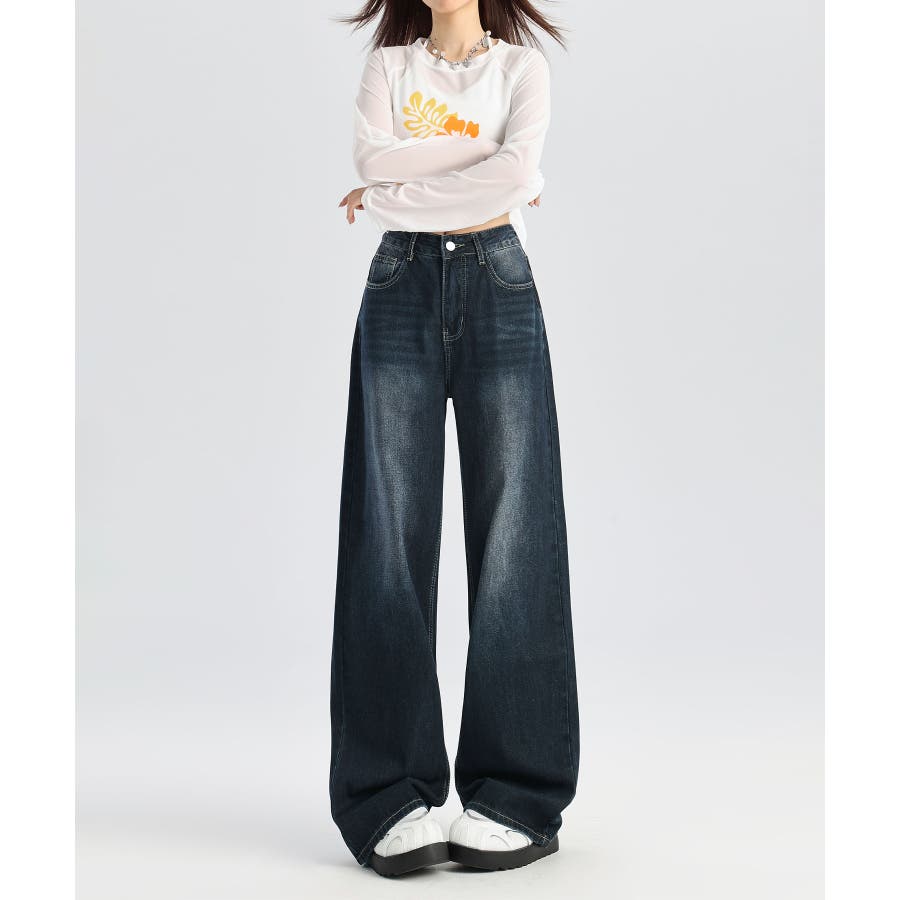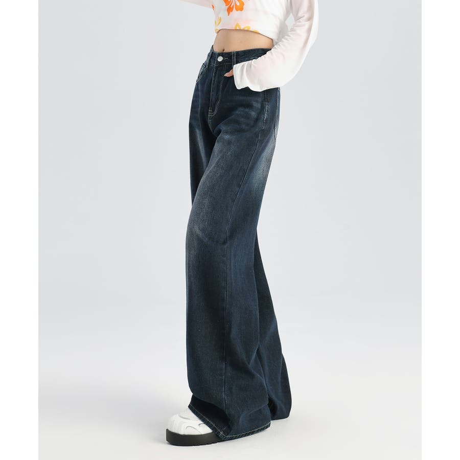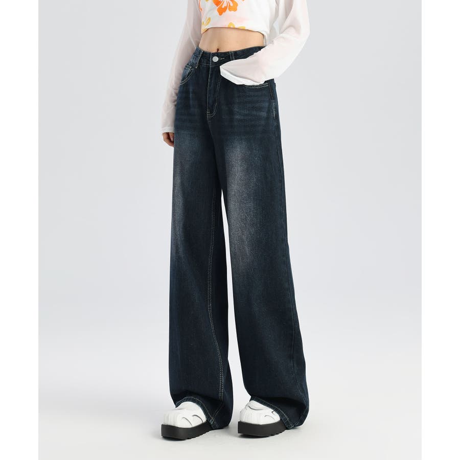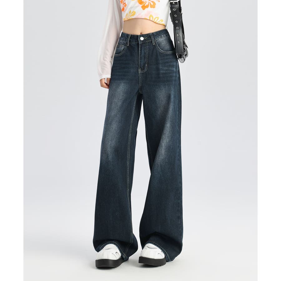 ビンテージ感漂うウォッシュ加工が魅力のワイドデニムパンツ。