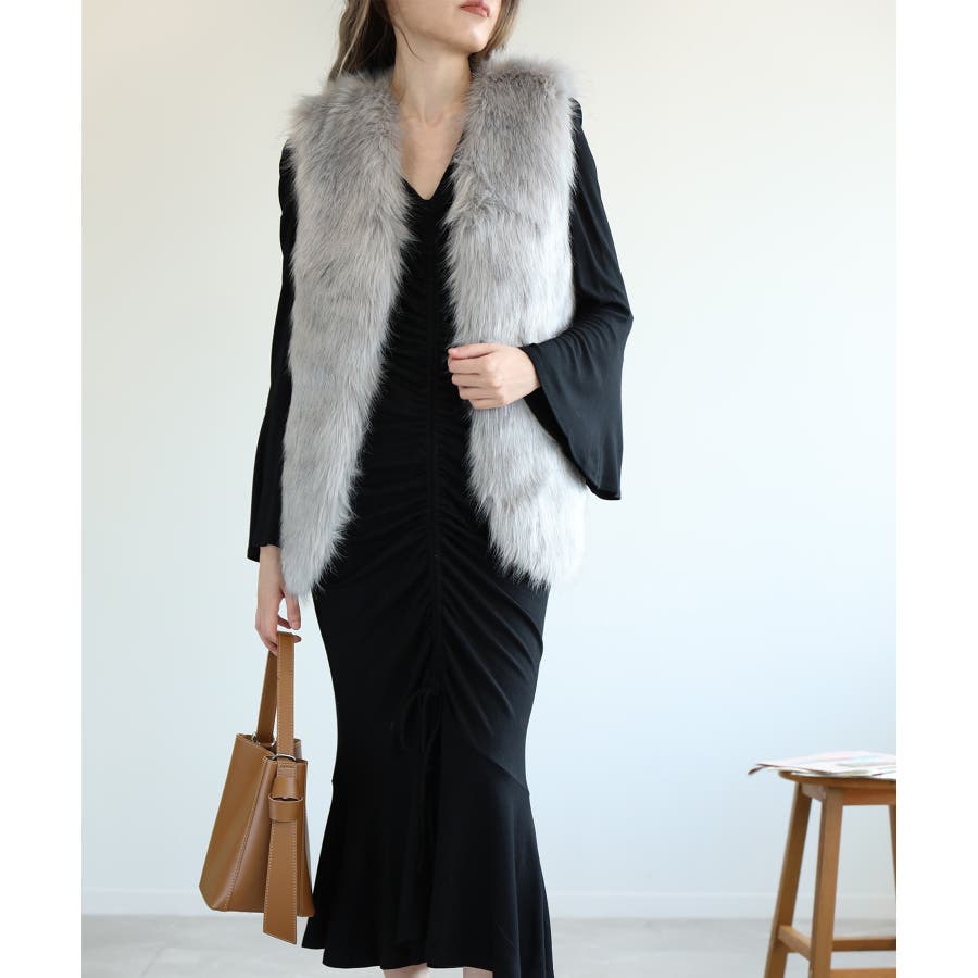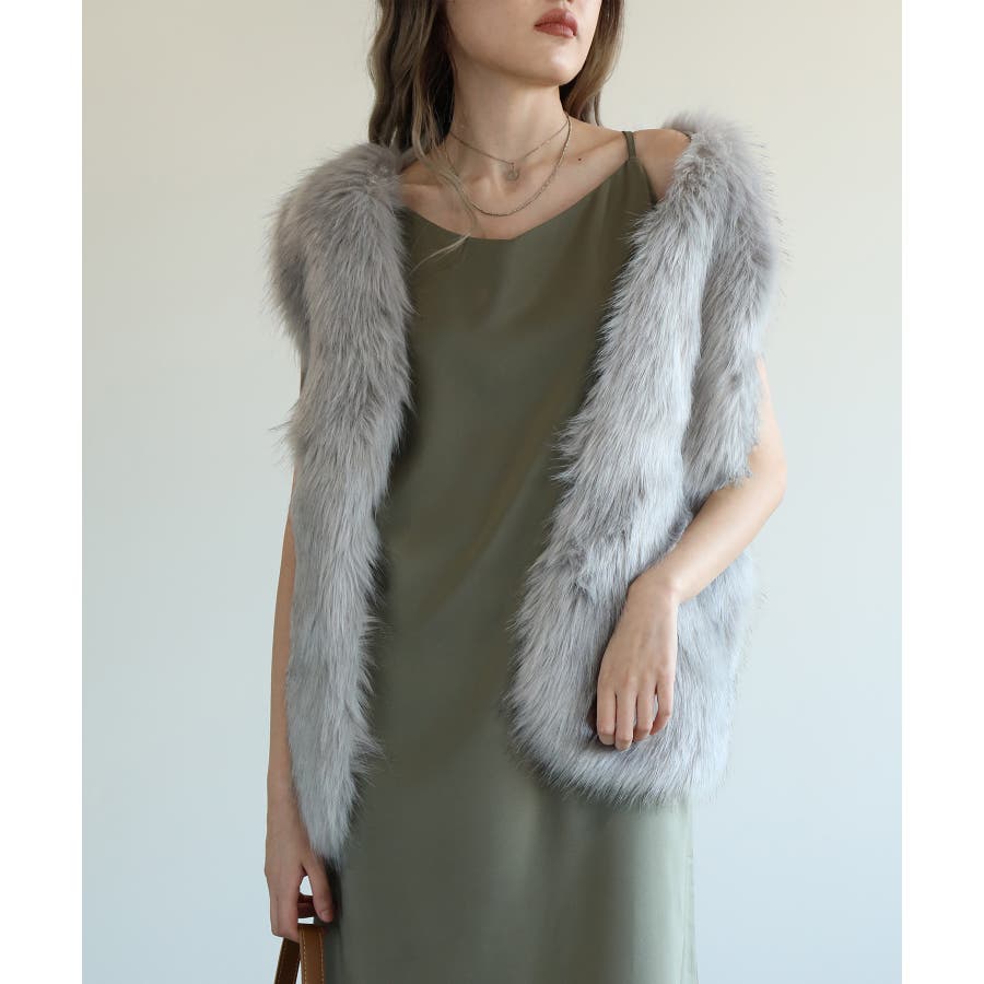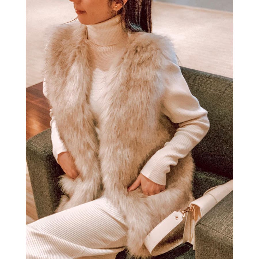 【Jasmine】サラサラフェイクファーボリュームベスト 韓国ファッション ツイ…