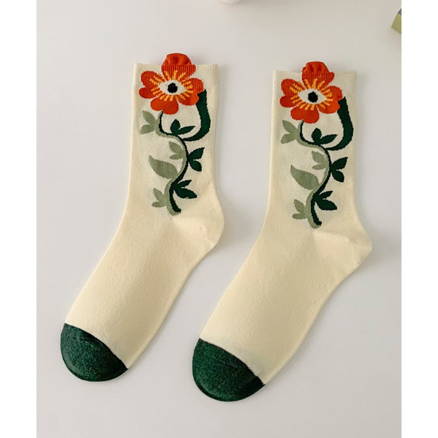 ベージュを購入しました。お花の輪郭線がそのまま靴下になっていてとても可愛いです。珍しいデザインなので、どんどん履いておしゃれを楽しみたいと思います。