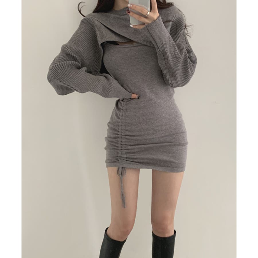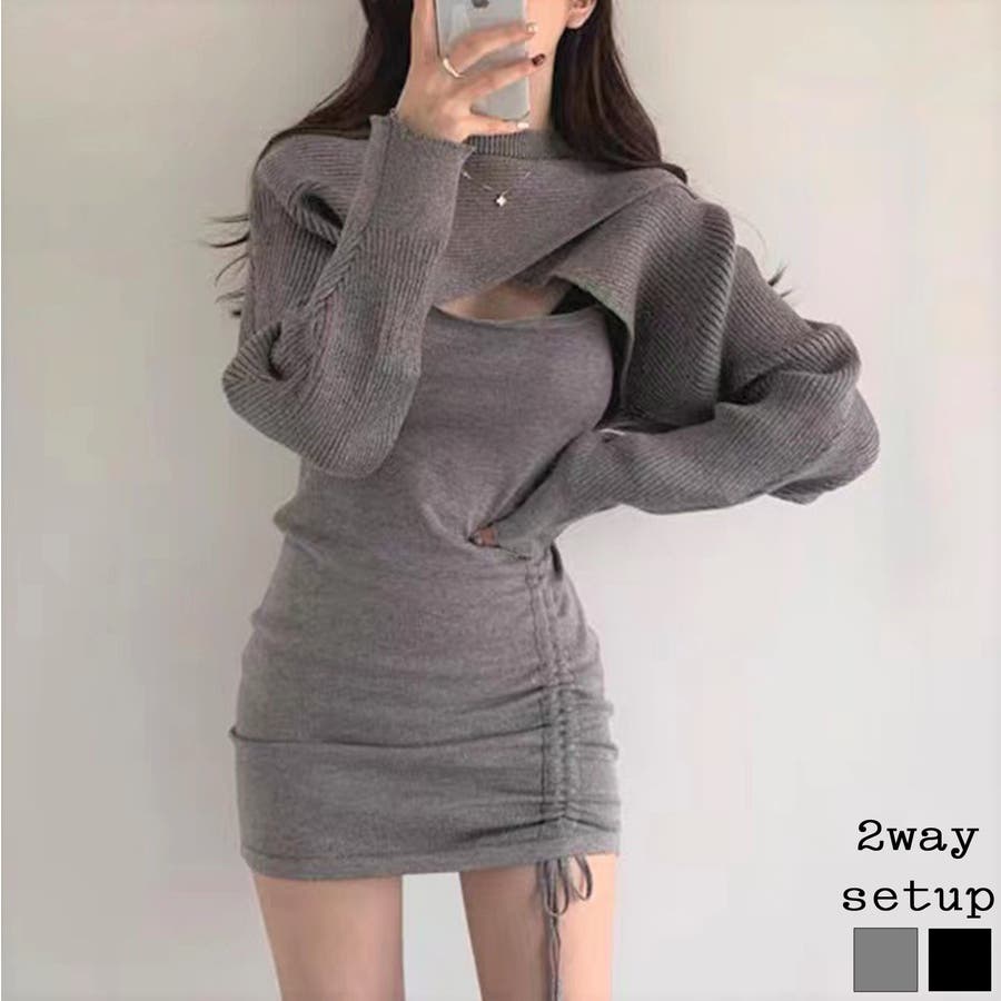 2way セットアップデコルテオープンミニワンピースセットアップ 韓国ファッション