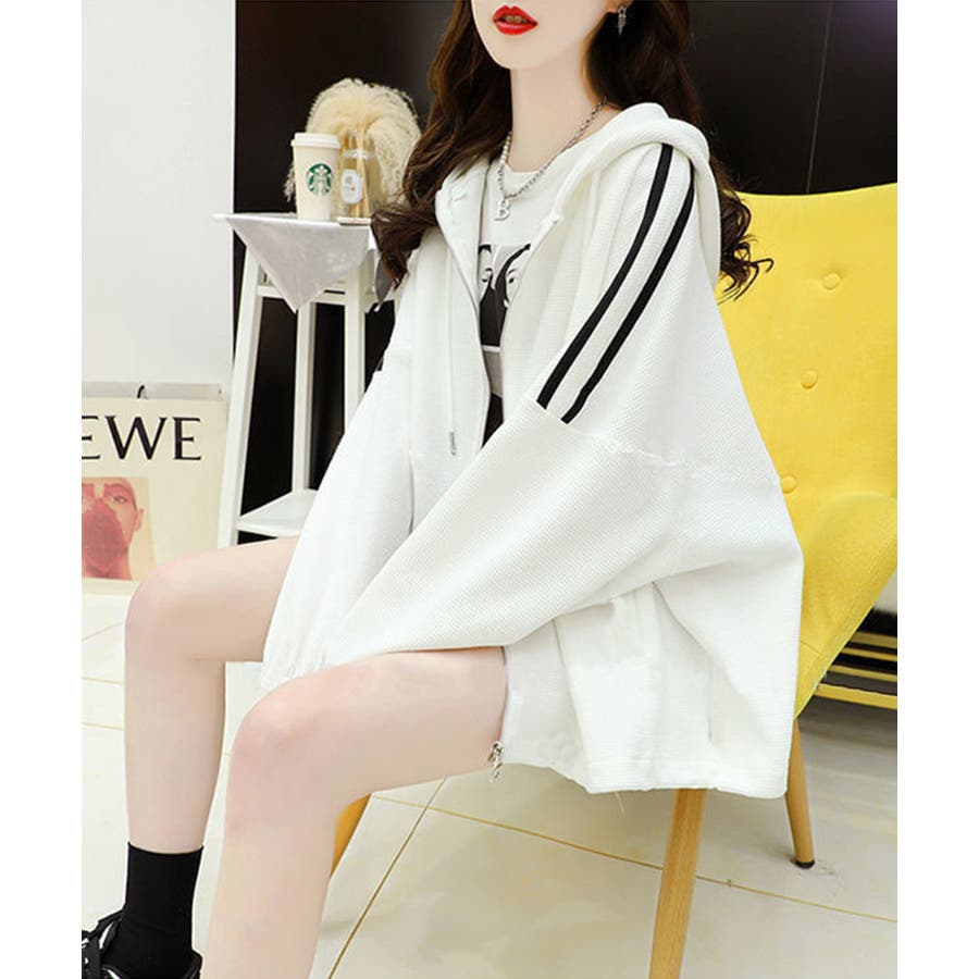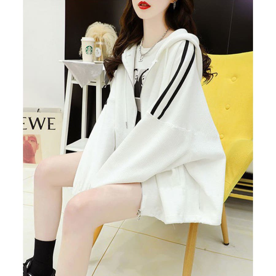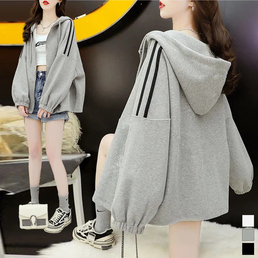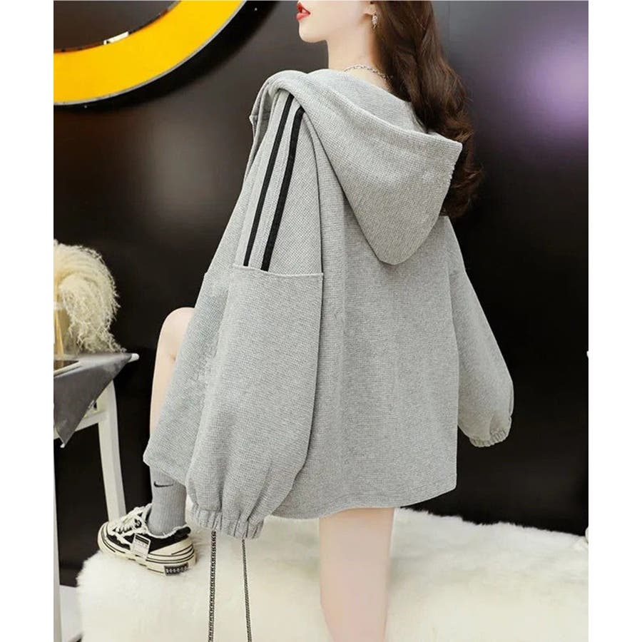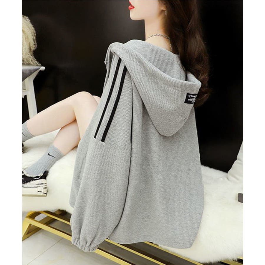 ワッフルオーバーサイズパーカー 韓国ファッション ワンピース