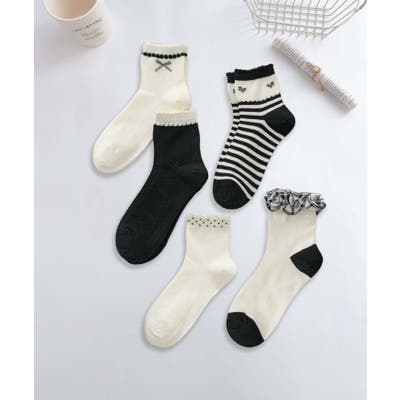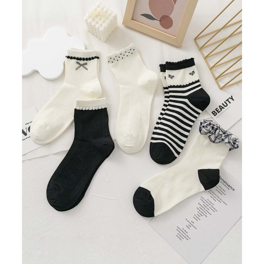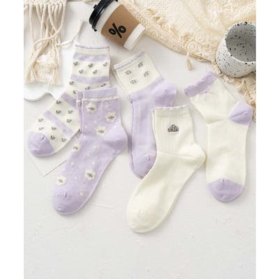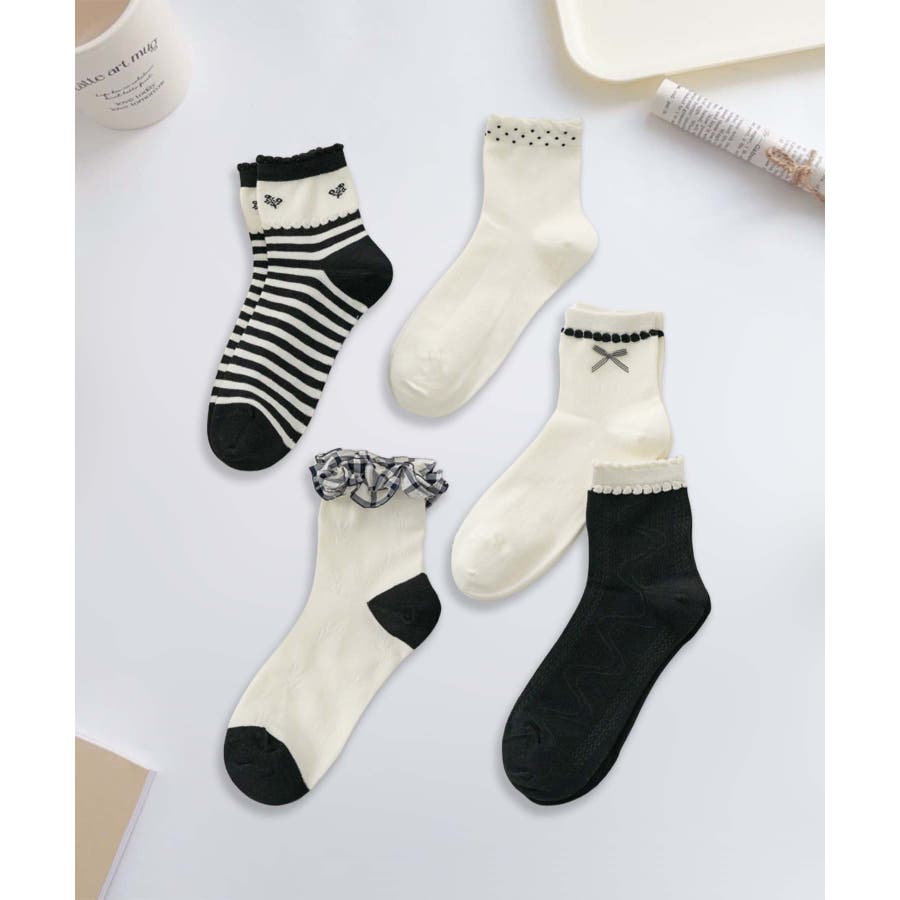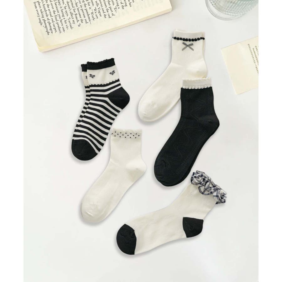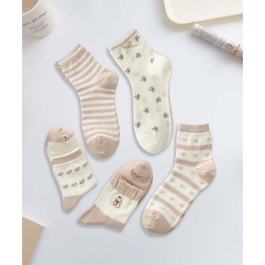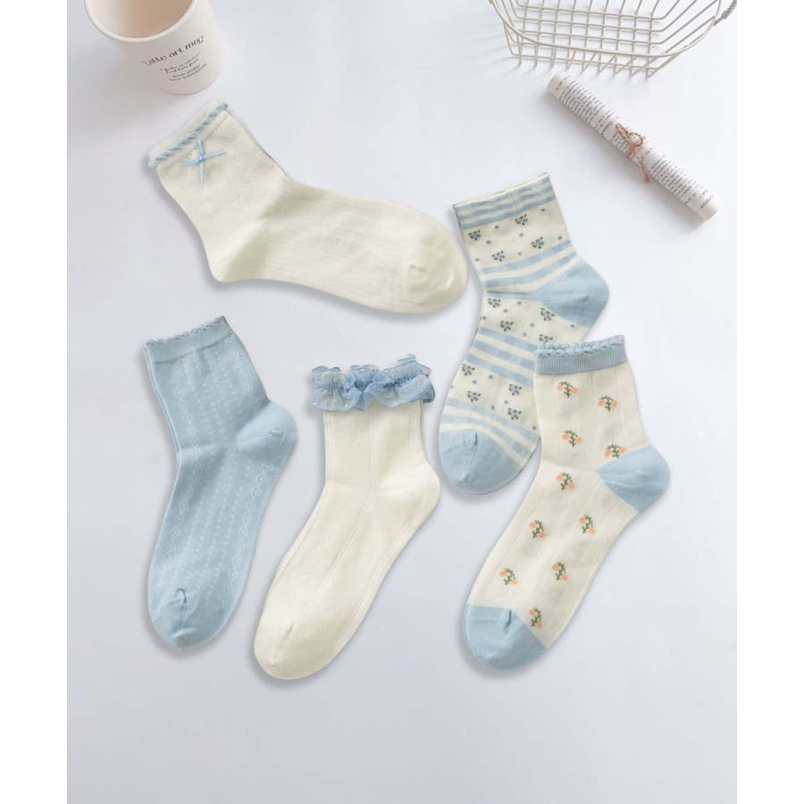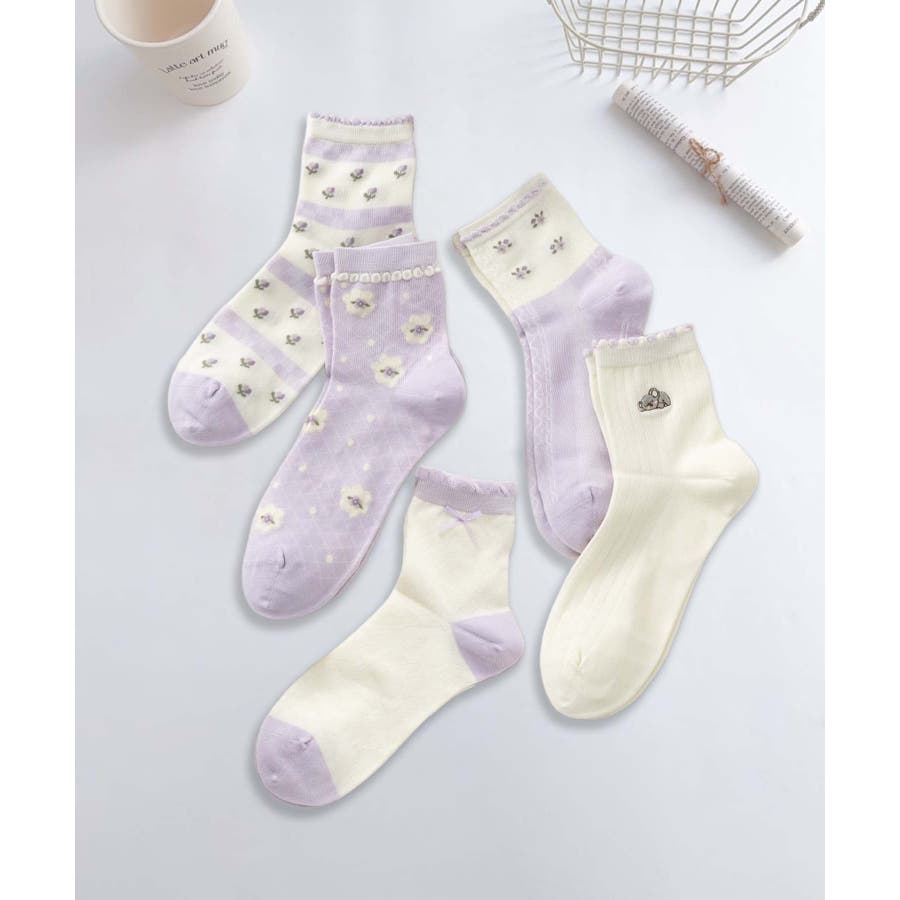 5足セット【MOSOX】ガーリー刺繍デザインコットン混ソックス