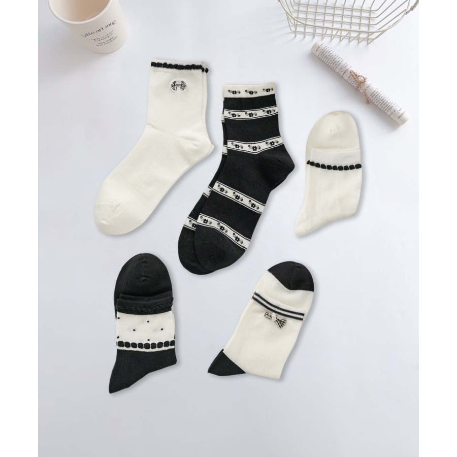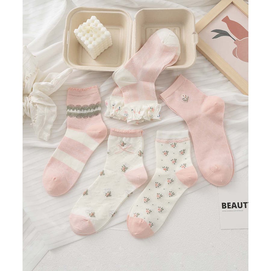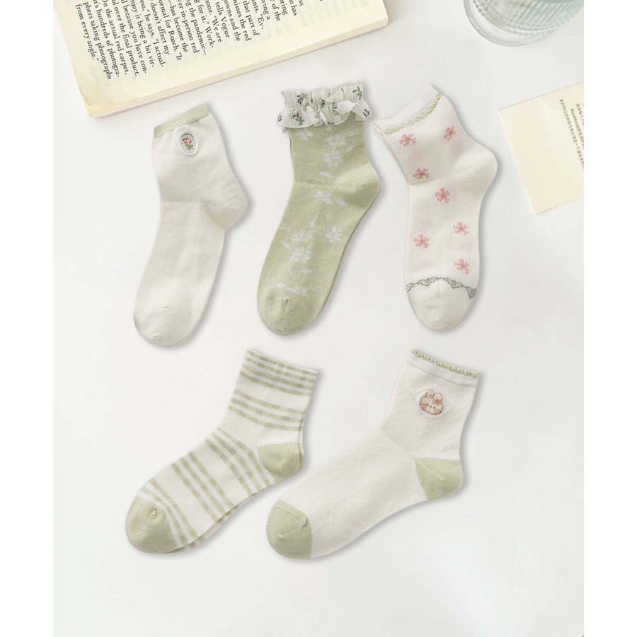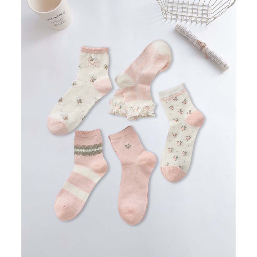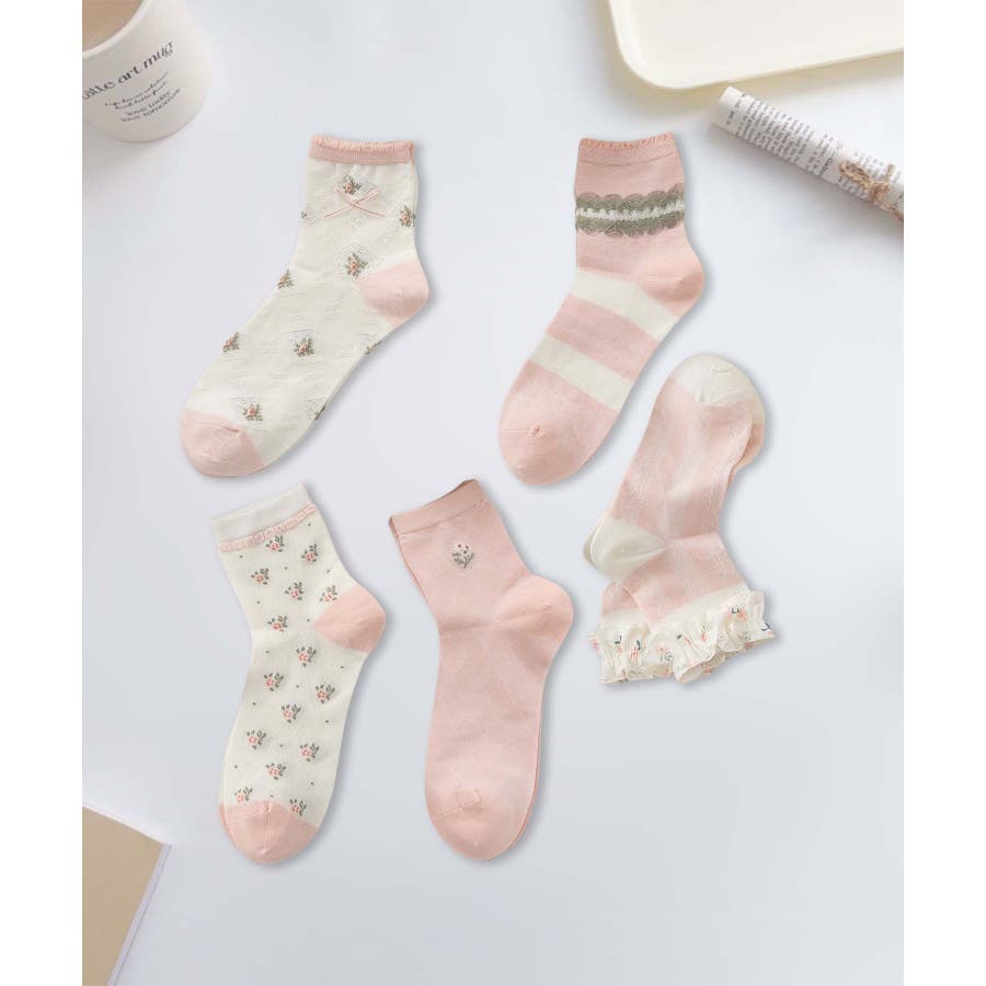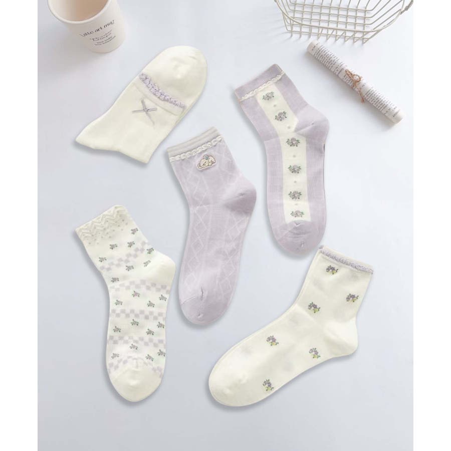5足セット12タイプ【MOSOX】ガーリーデザインレーヨン混ソックス
