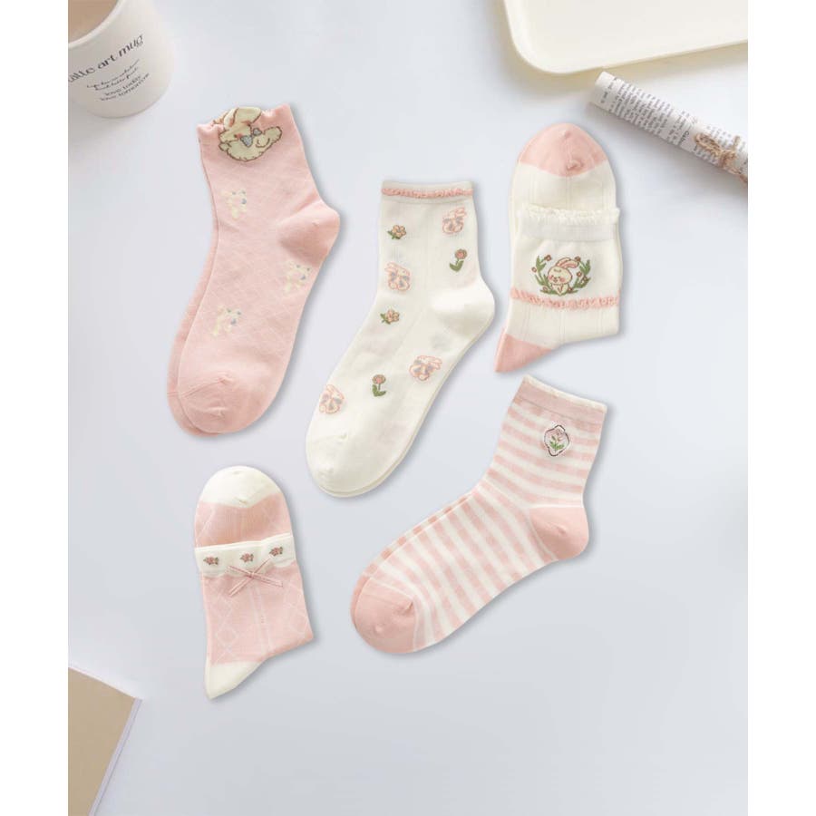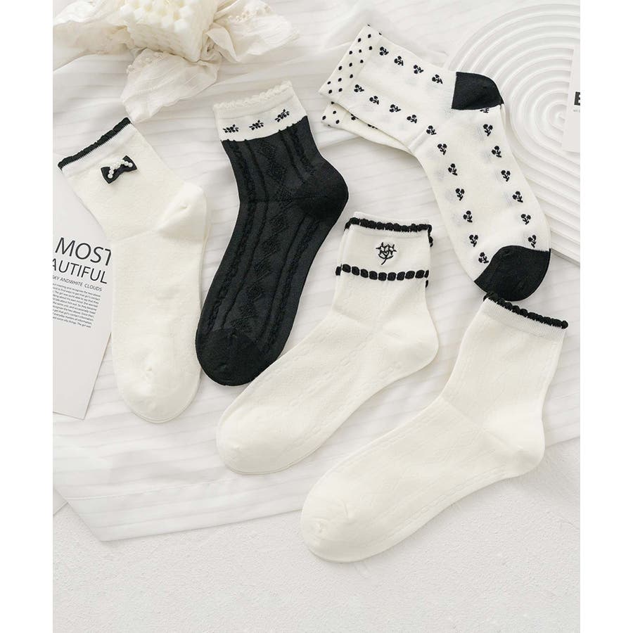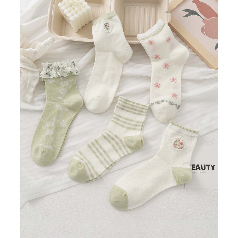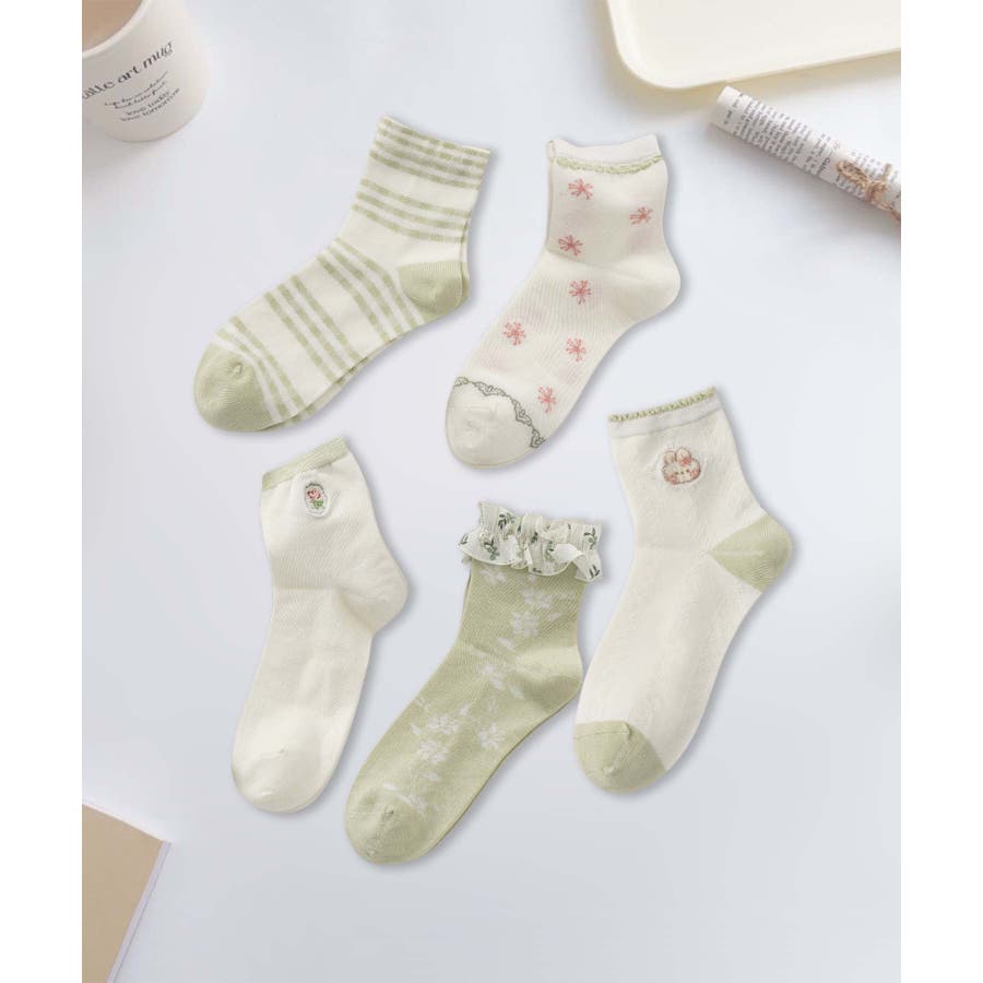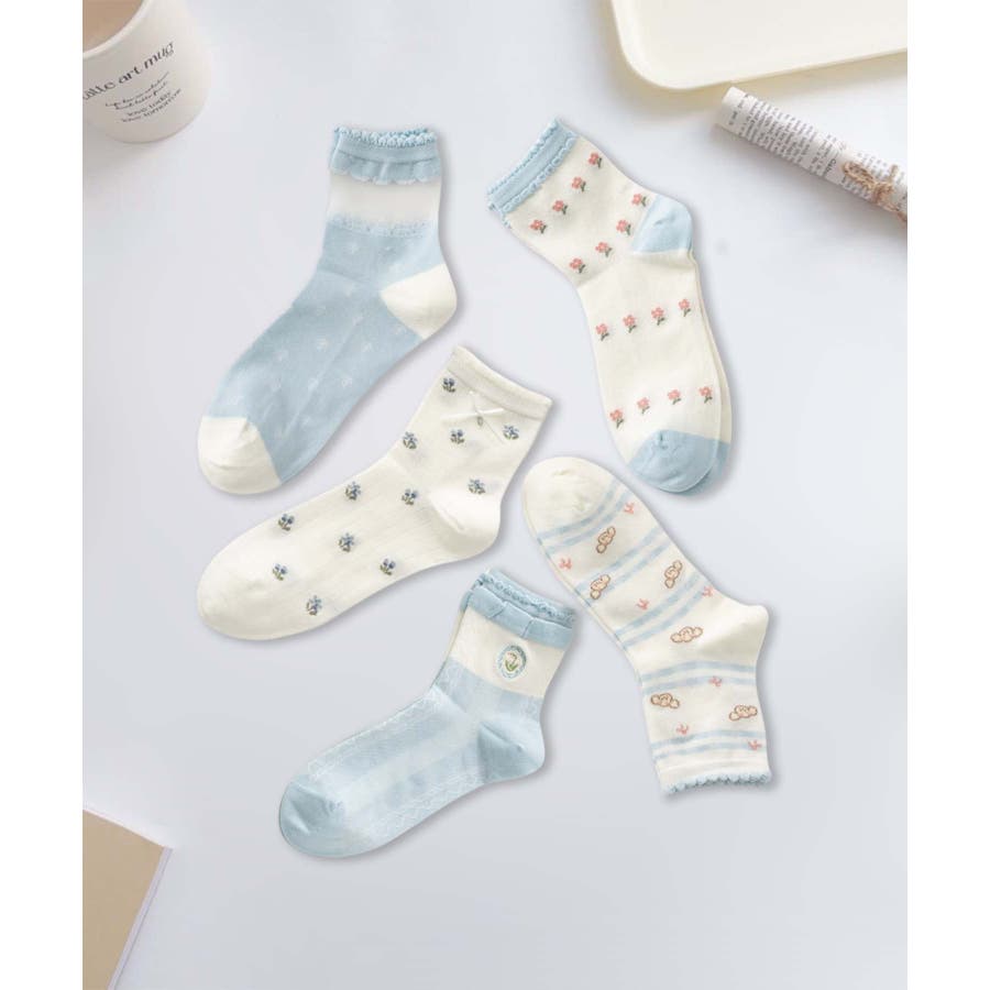 5足セット12タイプ【MOSOX】ガーリーデザインレーヨン混ソックス