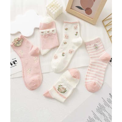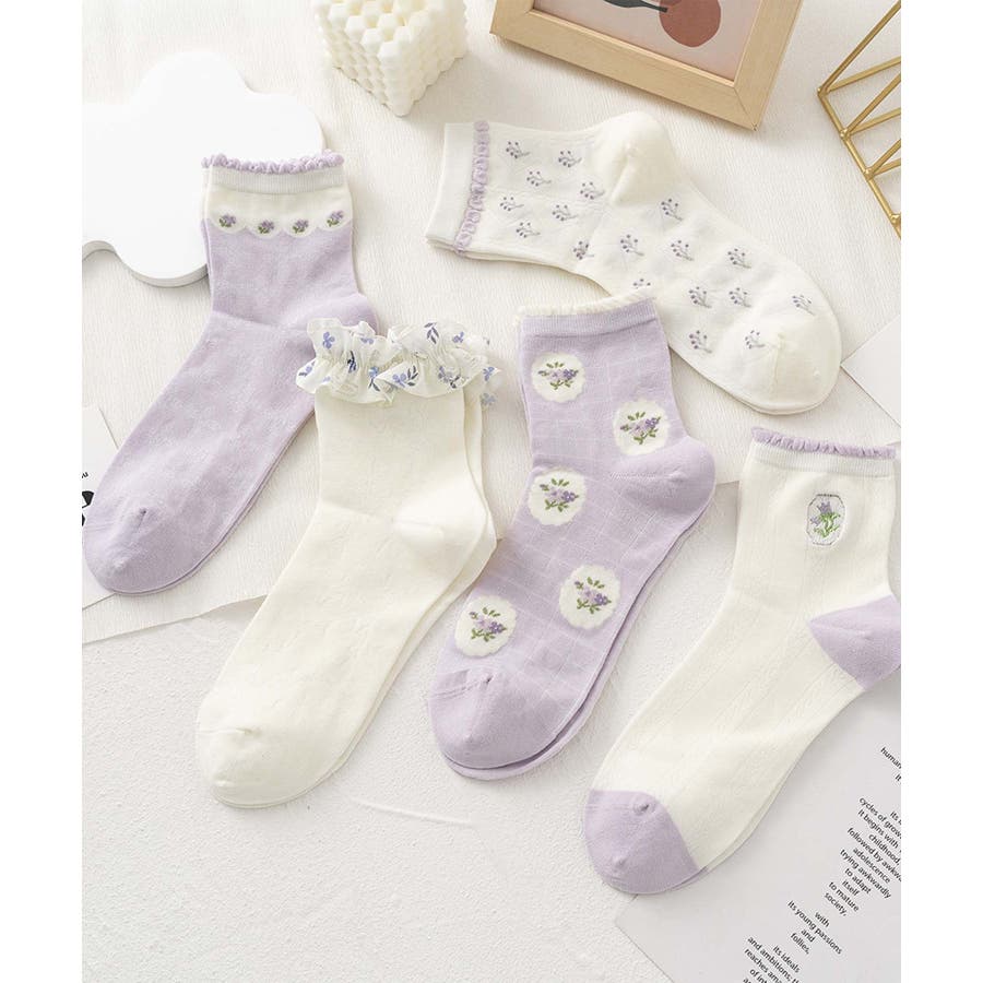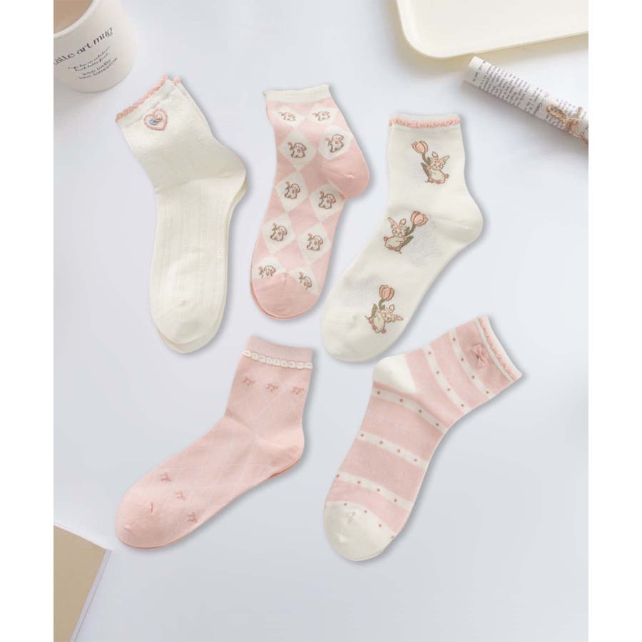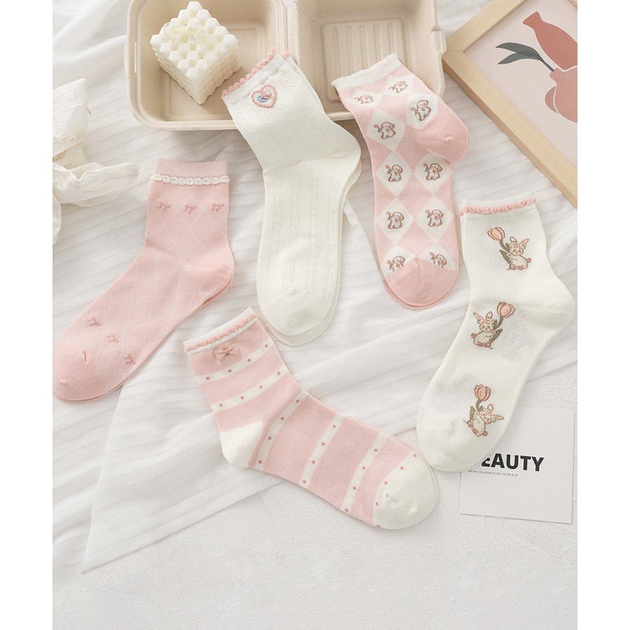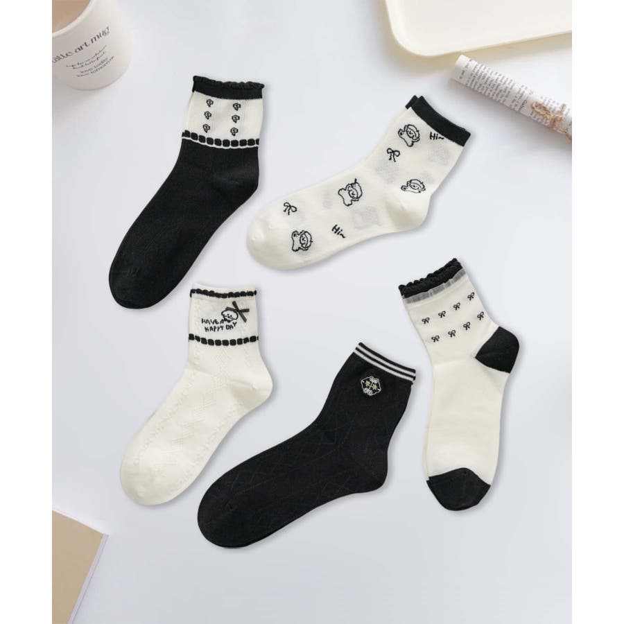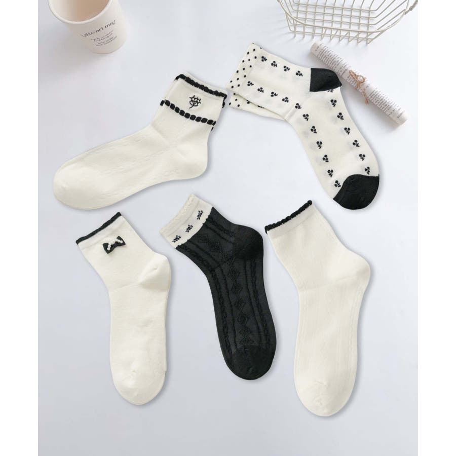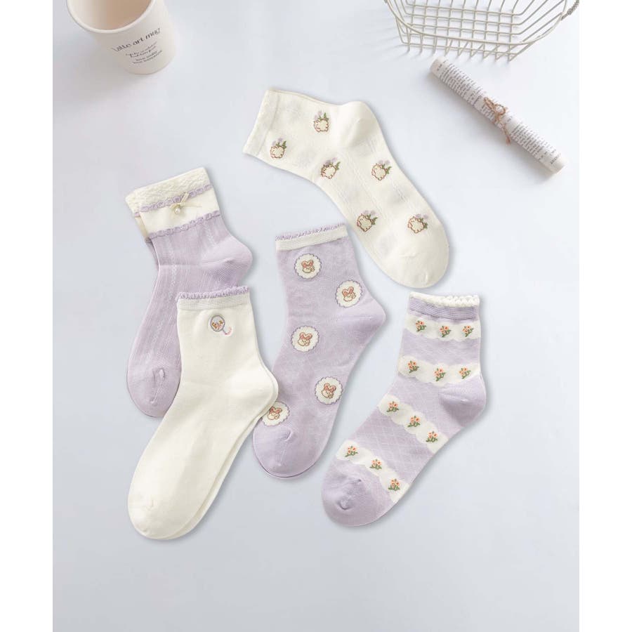 5足セット12タイプ【MOSOX】ガーリーデザインレーヨン混ソックス