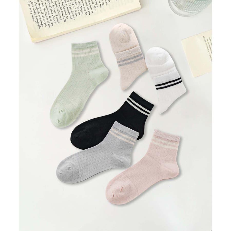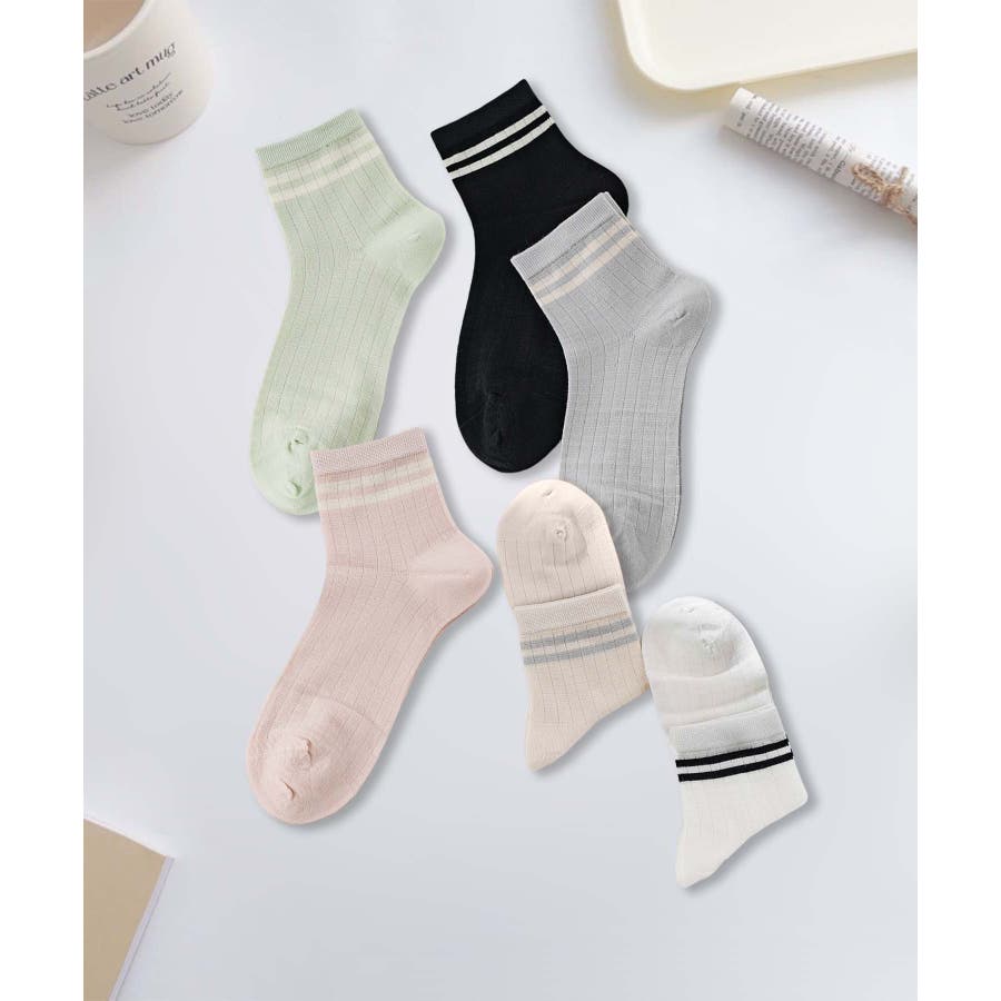 6足セット【MOSOX】ラインデザインレーヨン混ソックス