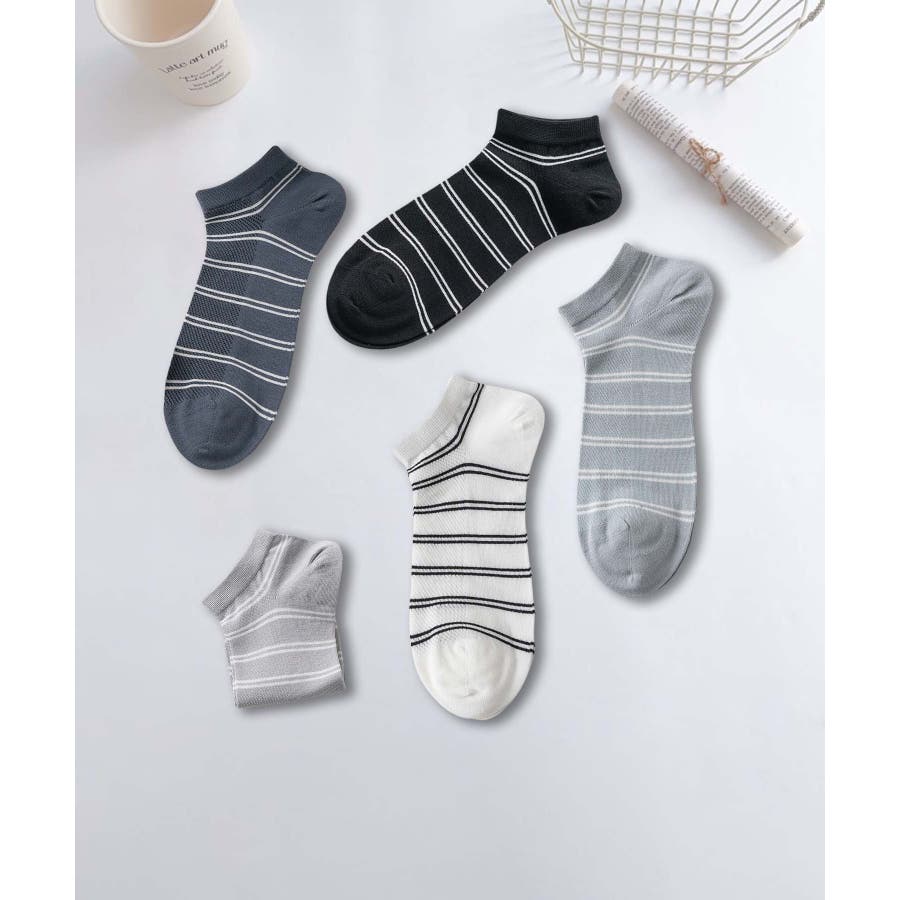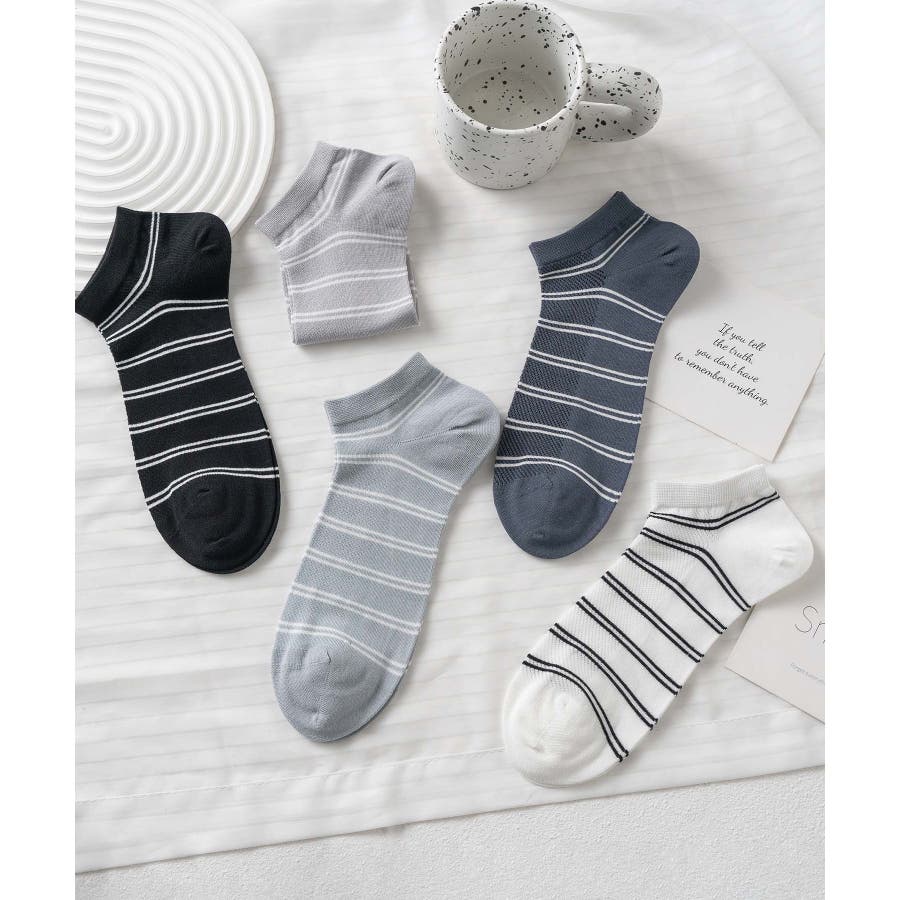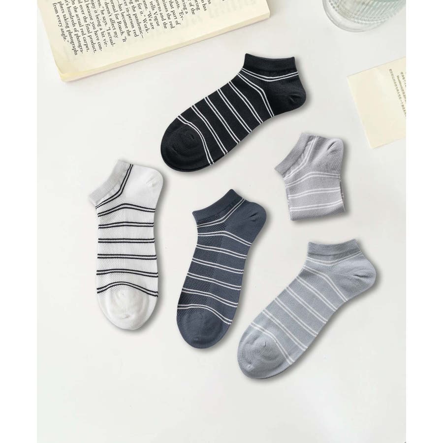 5足セット【MOSOX】ボーダーデザインレーヨン混アンクルソックス