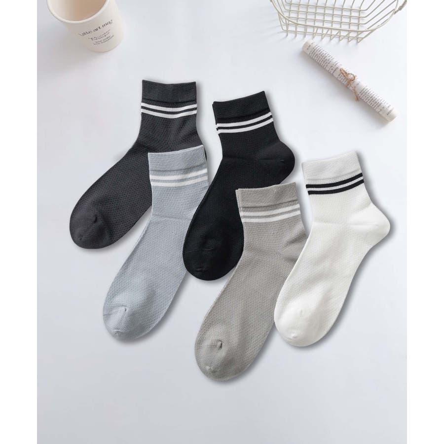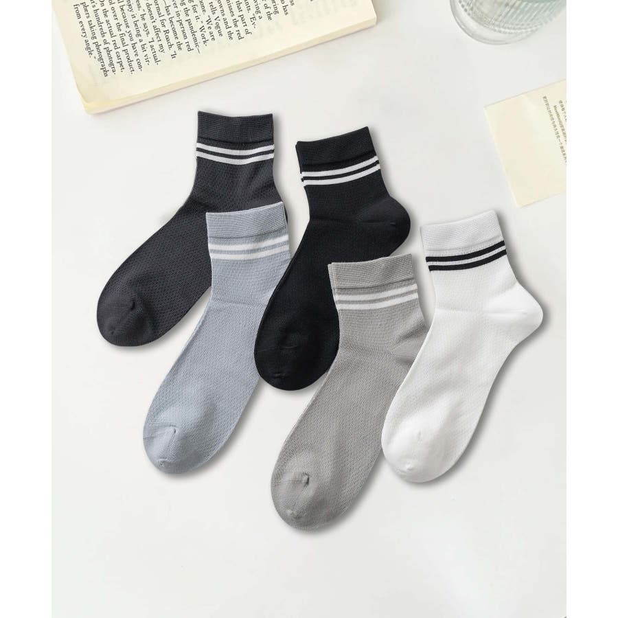 5足セット【MOSOX】ラインデザインレーヨン混ソックス