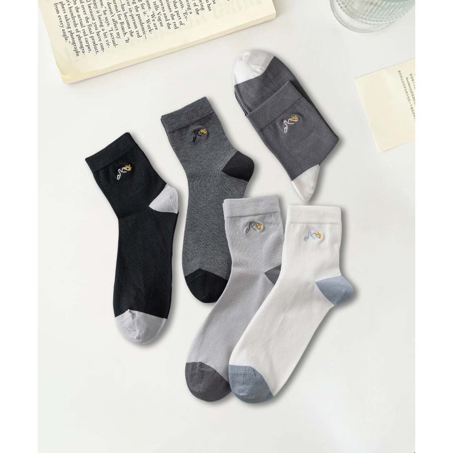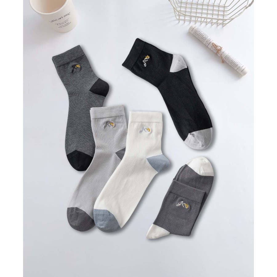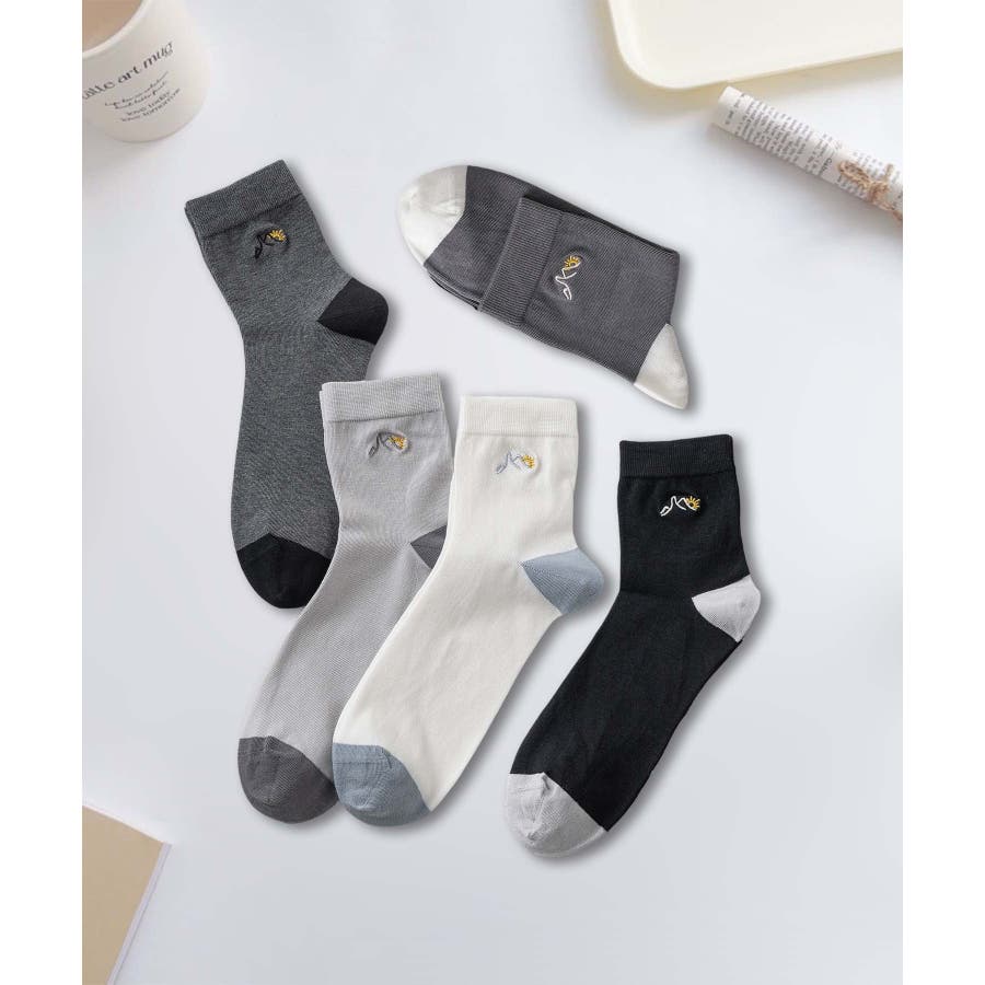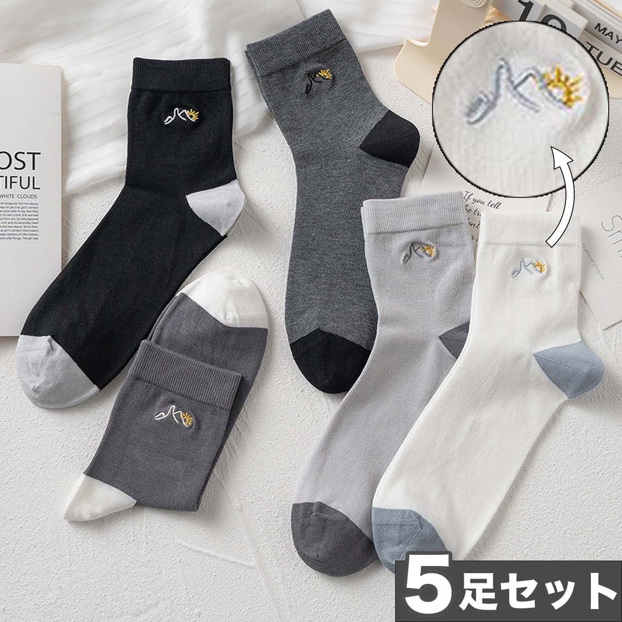 5足セット【MOSOX】ワンポイント刺繍コットンブレンドソックス