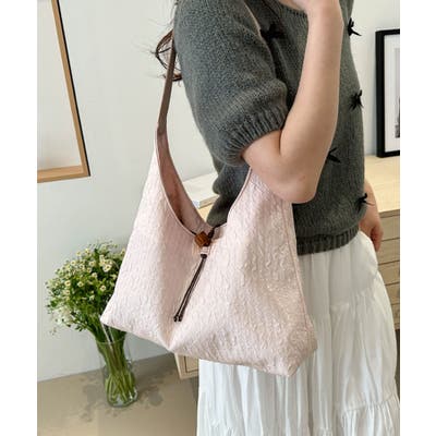 柔らかな質感と丸みのあるフォルムが特徴のワンショルダーバッグ。フロントのウッド調のループディテールがナチュラル感とヴィンテージ風のアクセントをプラスしています。軽やかな素材感で肩にしっとり馴染み、自然なシルエットを描くストラップが身体のラインにフィット。程よいサイズ感で荷物の持ち運びにも便利。装飾を控えたミニマルなデザインだからこそ、スタイリングに抜け感を与えてくれます。シンプルなTシャツやシャツ、ワンピースとの相性も抜群で、日常使いはもちろん、ちょっとした外出やカフェ、休日のお出かけにもおすすめです。