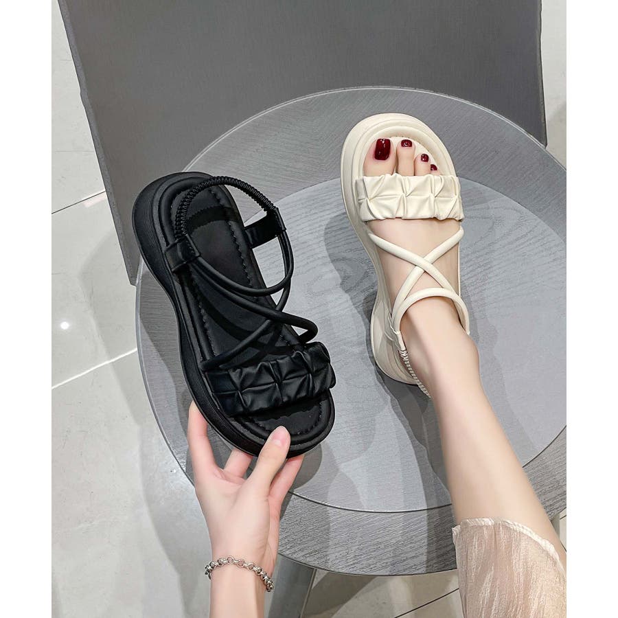 【shoes 365】クロスストラップギャザーデザイン厚底サンダル